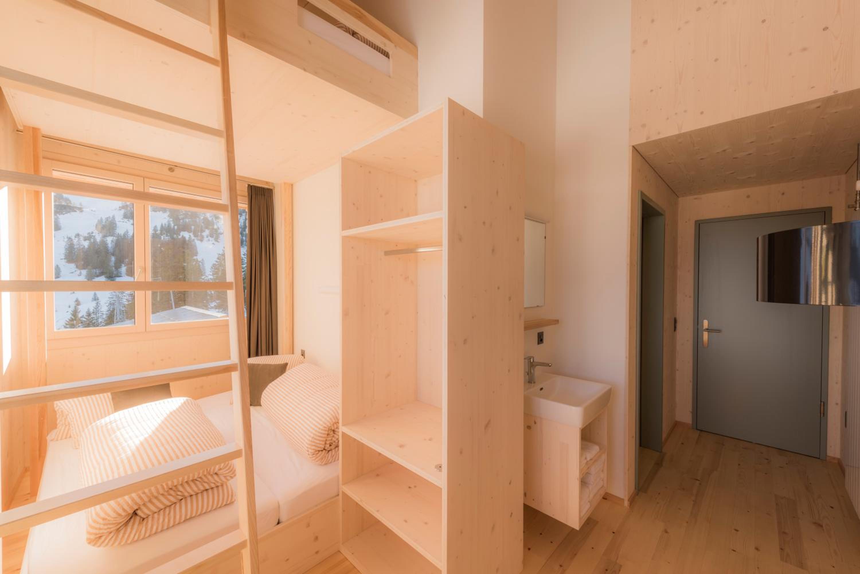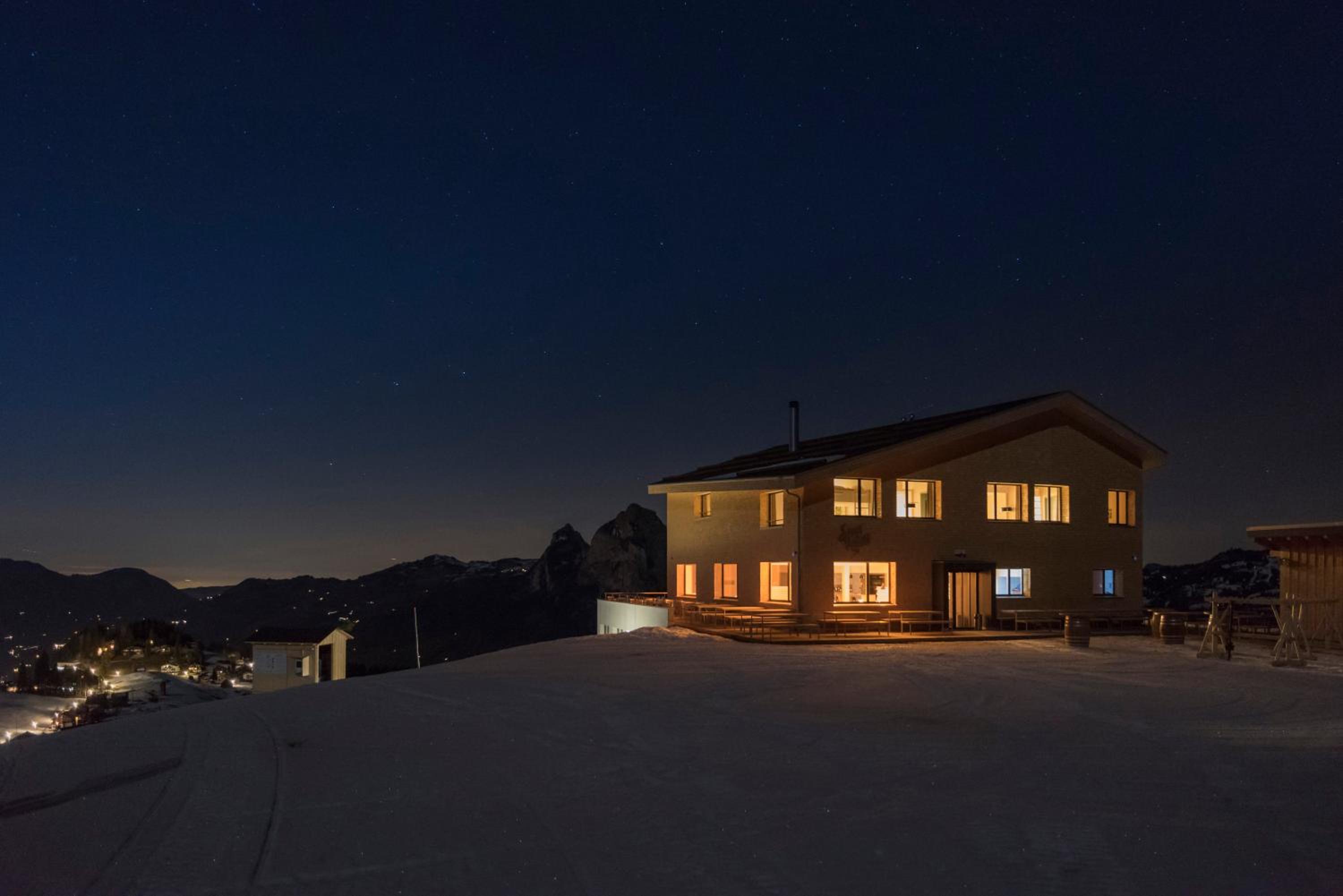Amazing place, on the ski slope just up the hill from town. The views are fantastic (especially at sunset), the rooms are comfortable, the restaurant is good, and the staff are very friendly and helpful. Stoos is the perfect place for a family ski vacation, and the Stoos Hüttä is a great home base. Do keep in mind that it is very helpful if everyone in your party can ski, as the easiest way up is to ride the T-bar. However, there is a taxi that can take you and your luggage from the funicular for about 30 CHF.