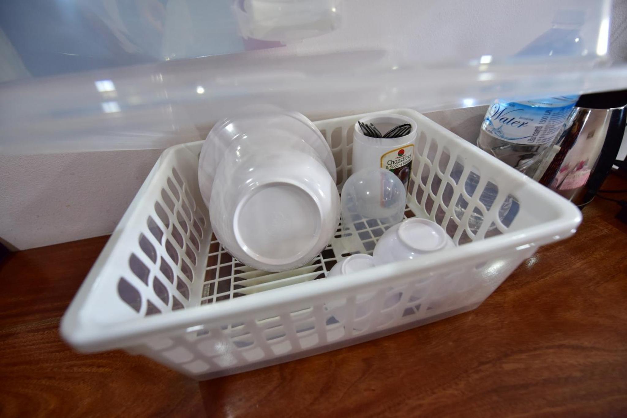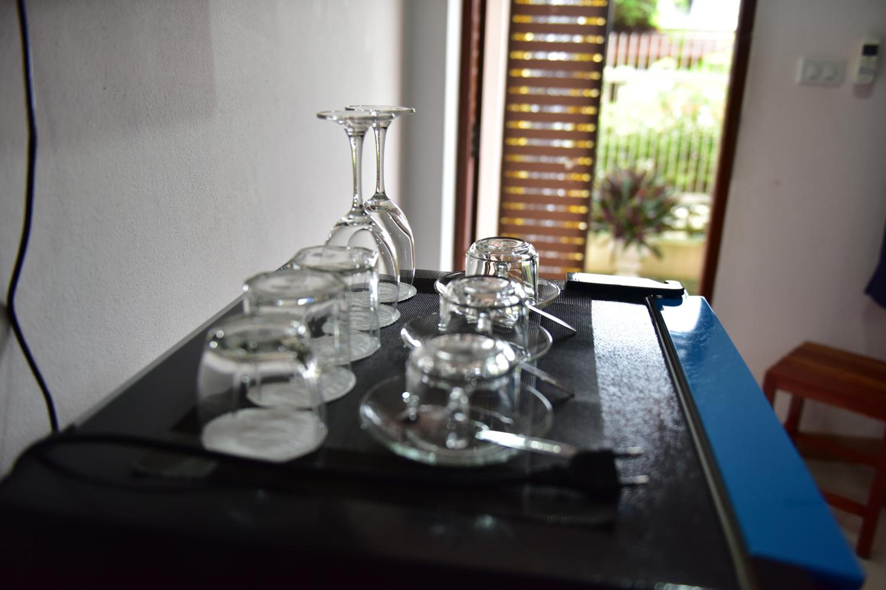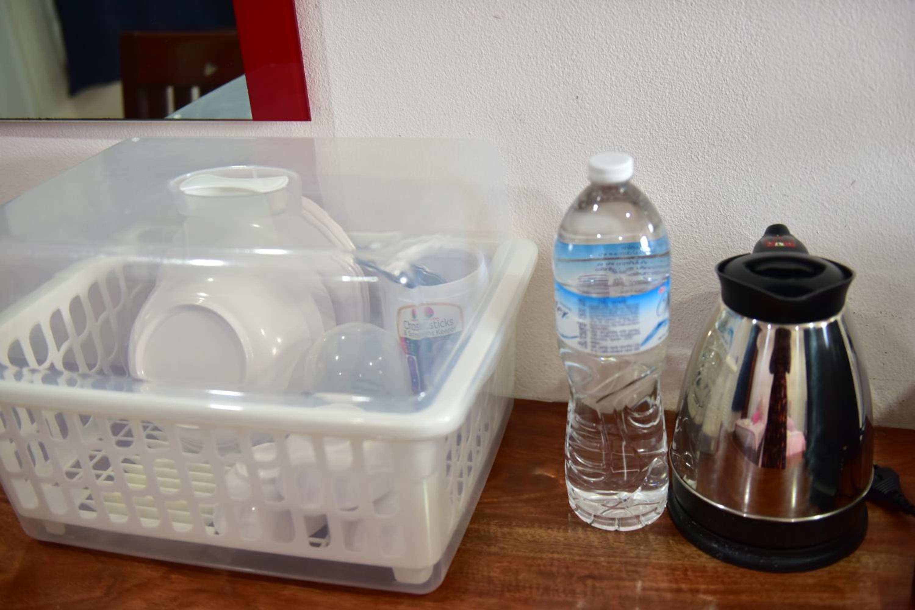 Central location, cleanliness and eating/drinking utensils in the room.
