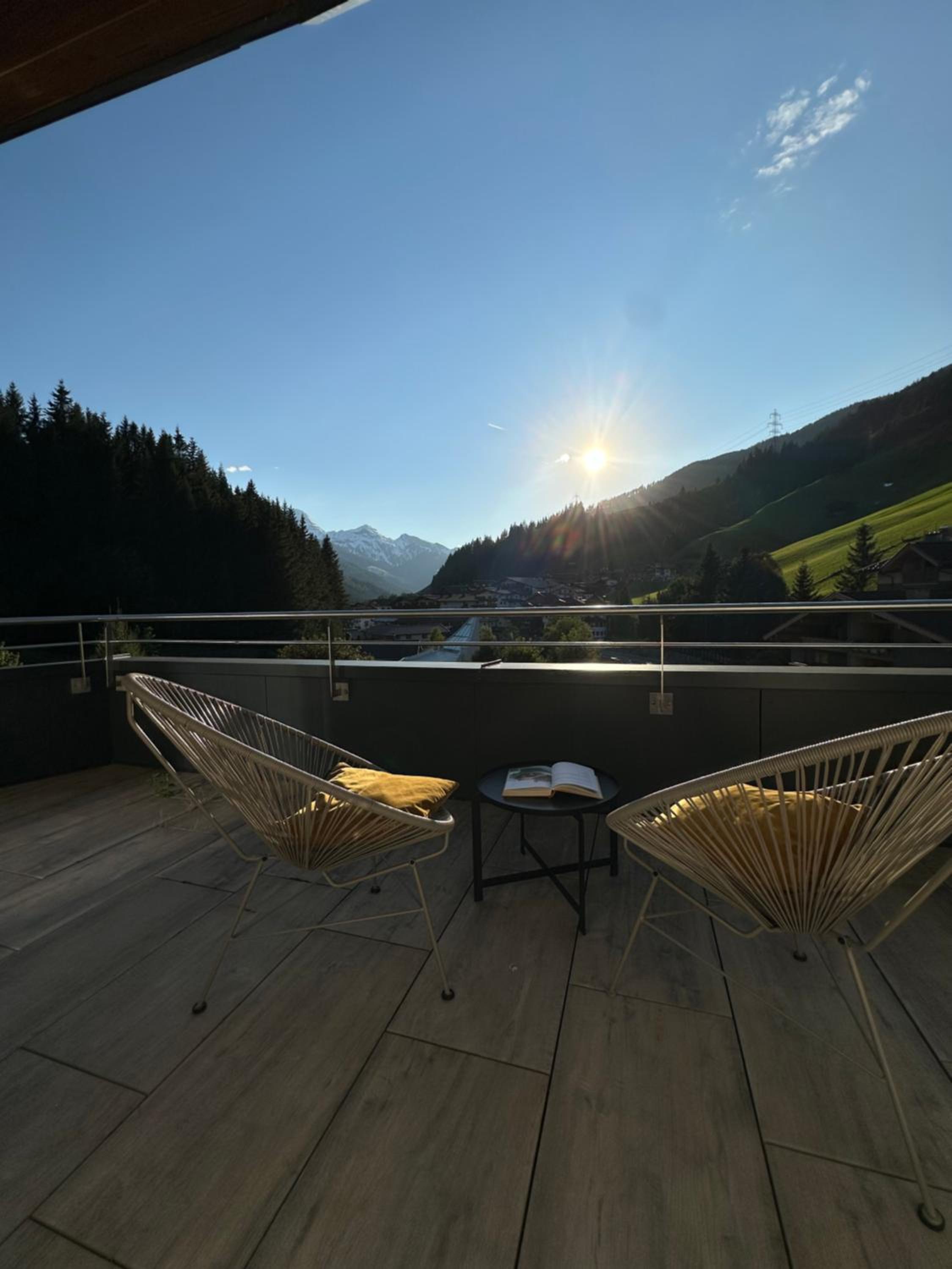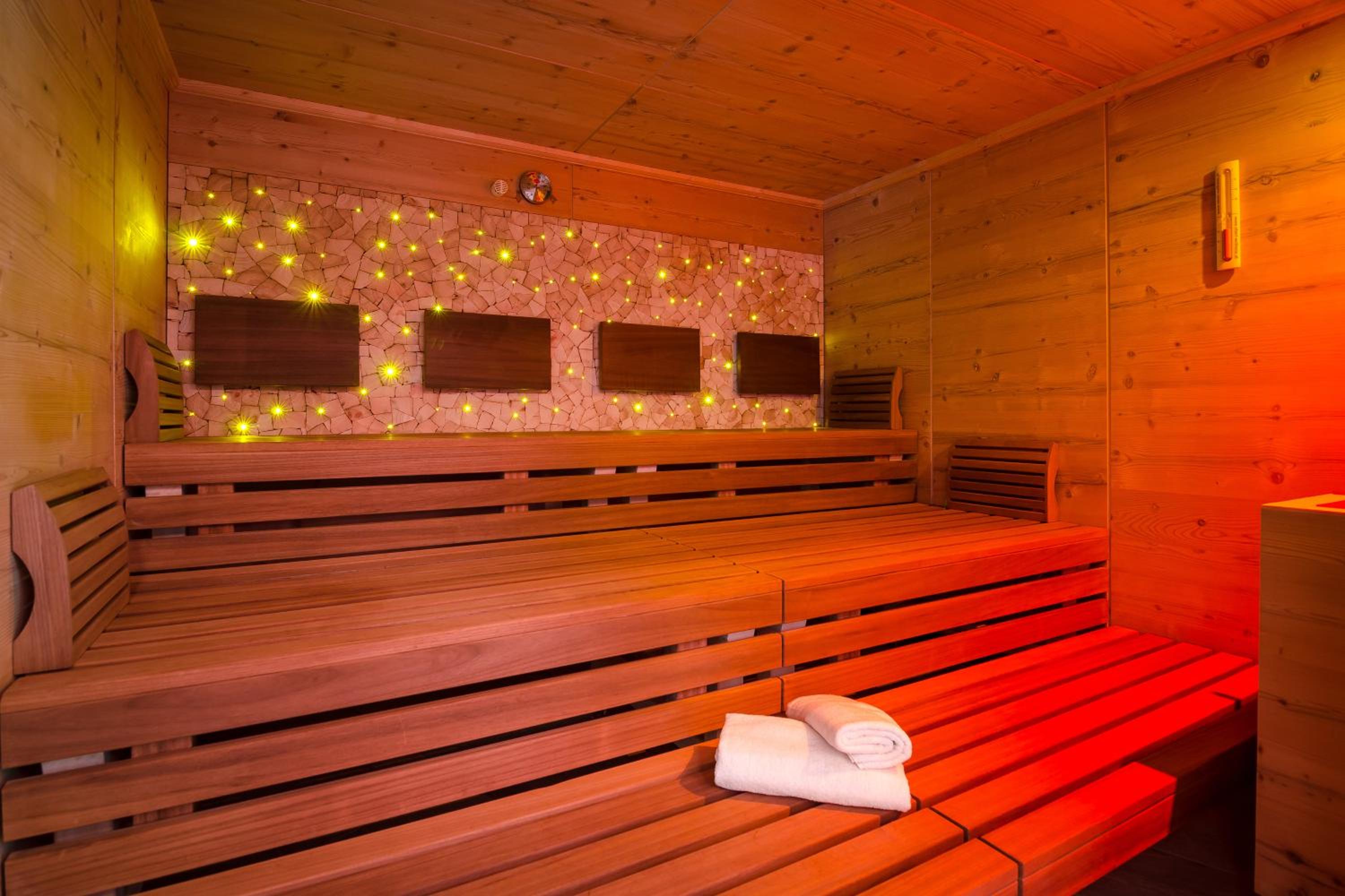 Unwind in the new sauna area with various sauna options and a relaxation area. After a day of skiing or hiking, guests can enjoy drinks at the hotel bar or soak up the sun on the terrace.