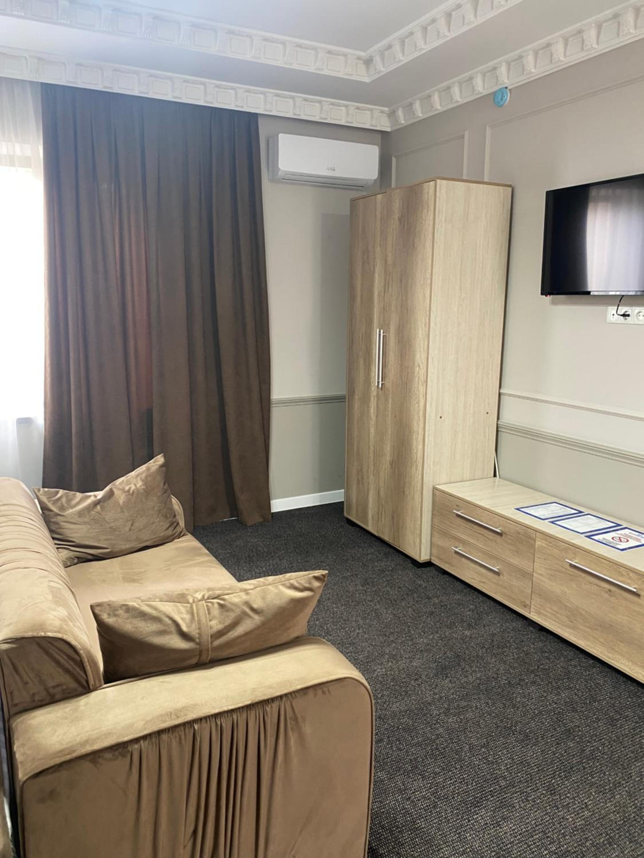 Experience comfort and convenience at Sapphire hotels in Taraz. Our rooms are equipped with modern amenities including air conditioning, a fridge, and free WiFi.