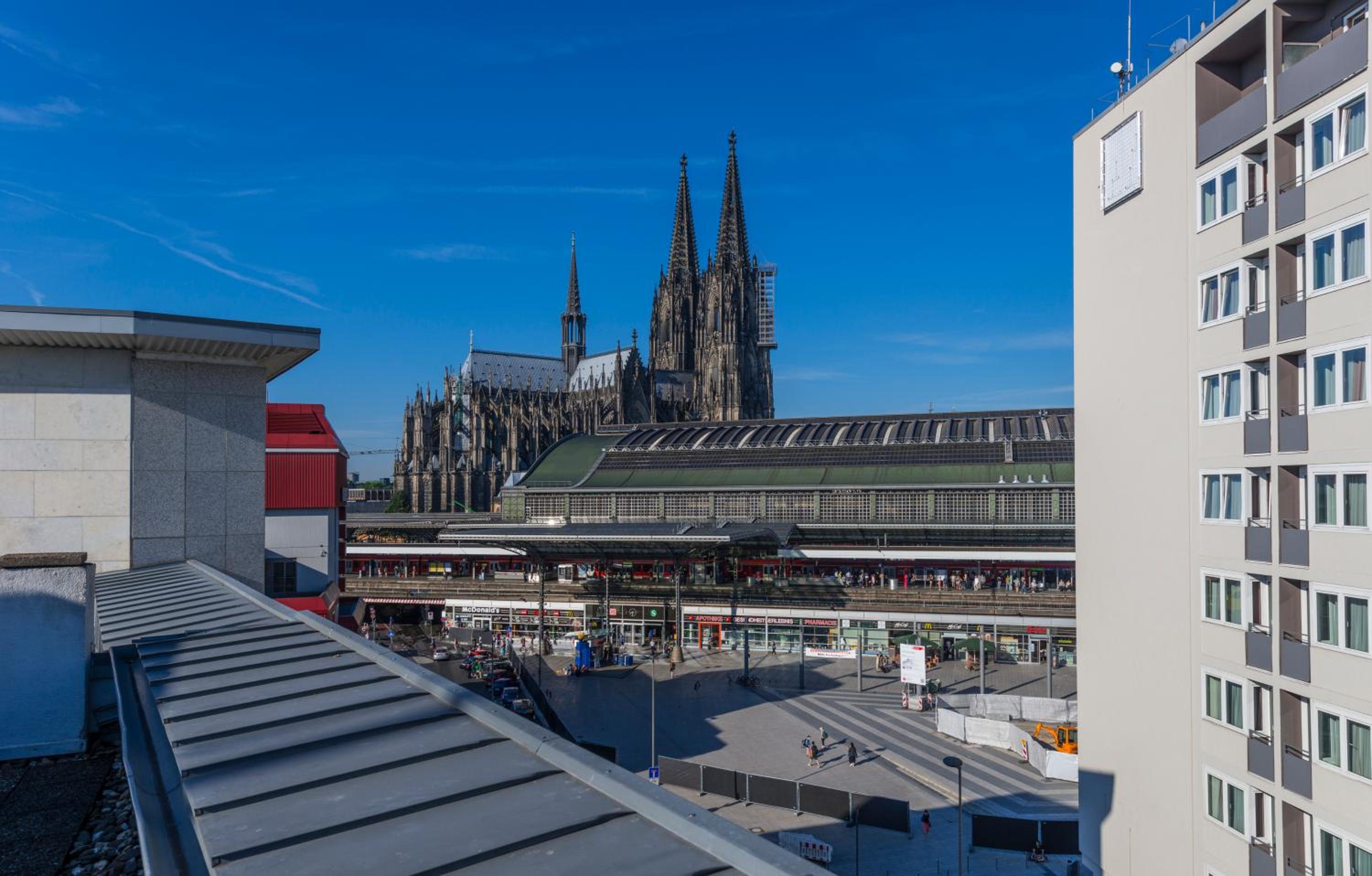 To reach the hotel, from Cologne Main Station (Hauptbahnhof) exit the station via passage A, towards Breslauer Platz. The hotel is located on the opposite side of the square, beside the roundabout.