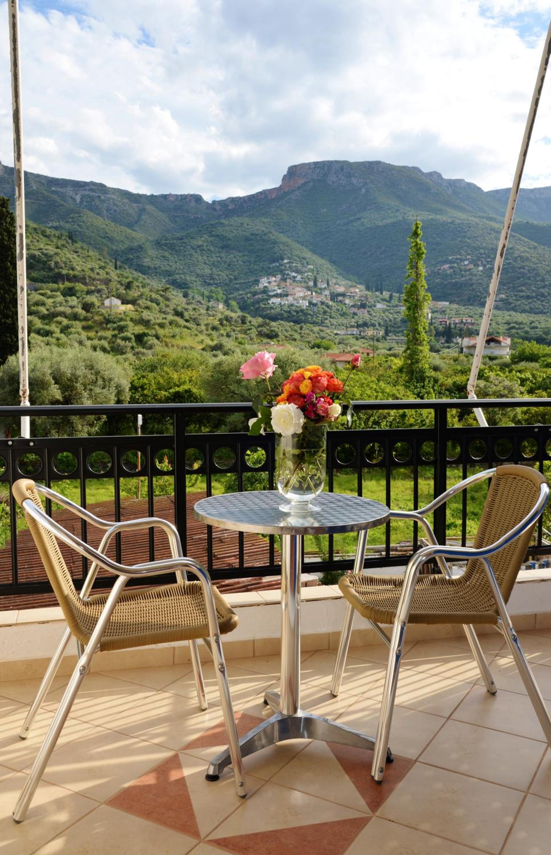 The location is amazing beside the best restaurant in tyros. Class balconies. Amazing view and sea. Great value, the town Tyros is a gem. Visit Tigani beach 10min walk away