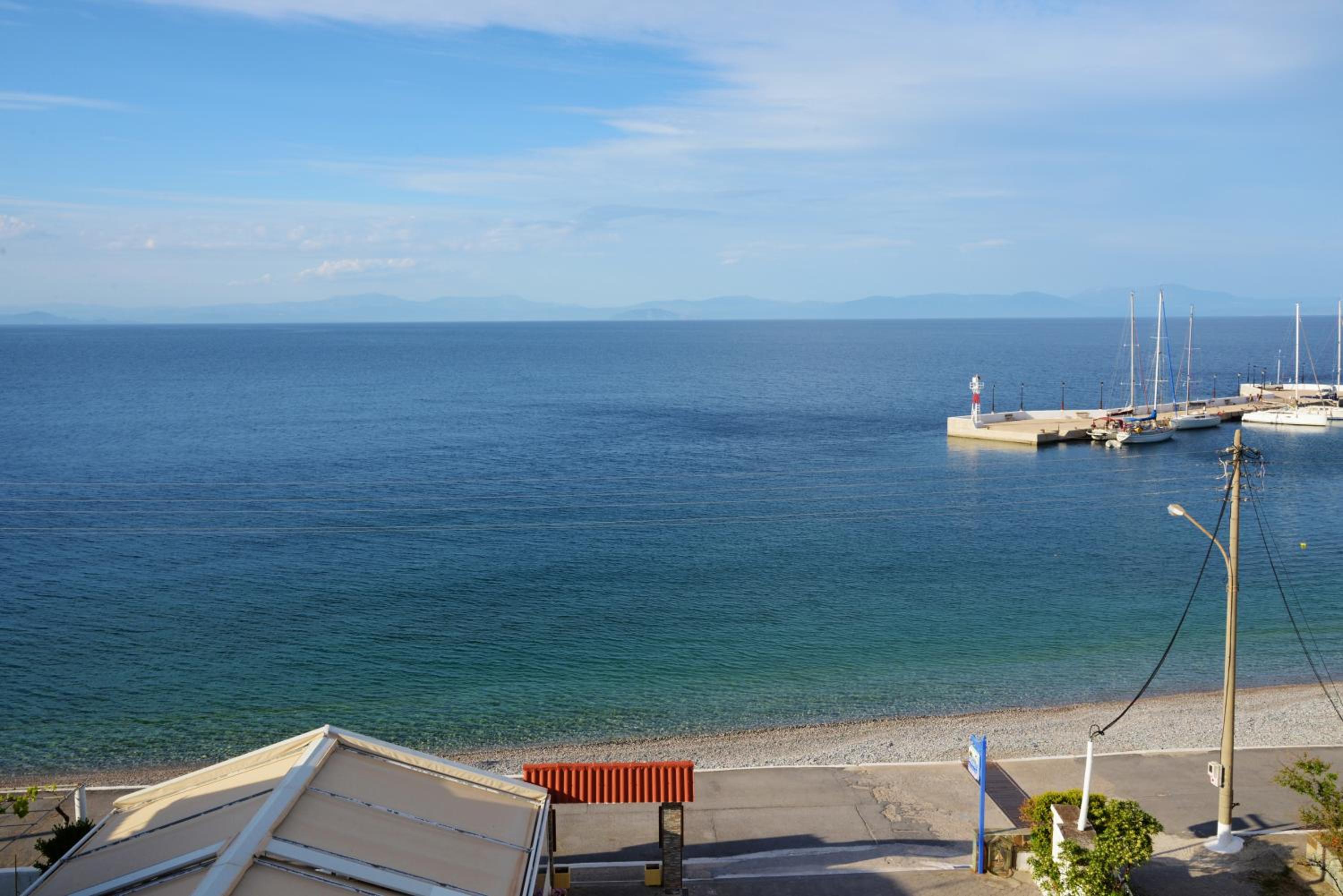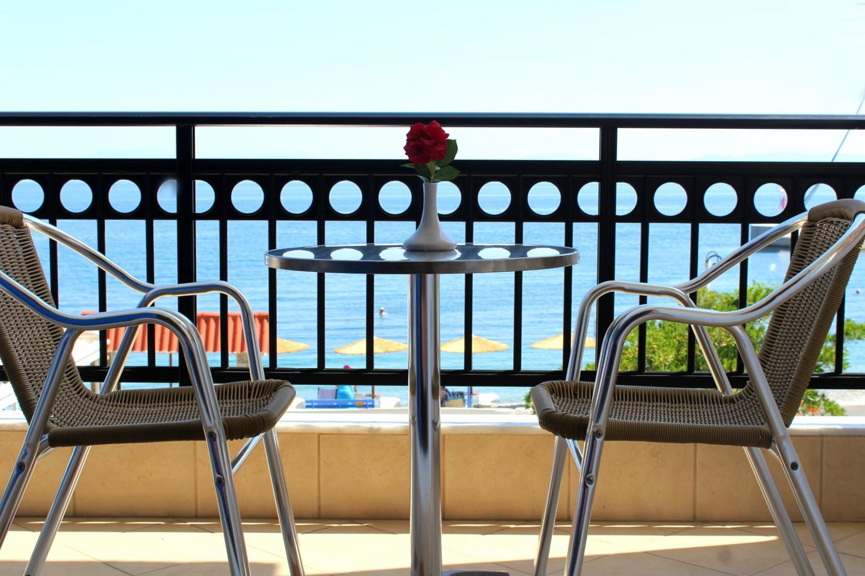 Very clean room with a comfortable bed and well-functioning AC. Fantastic view from the balcony just a few meters from the sea. The beach was with small stones and the water very clear. Sunbeds and umbrellas available. Good restaurants close by. We were there at the beginning of October and the small town was partially closed for the summer, so it was very peaceful.