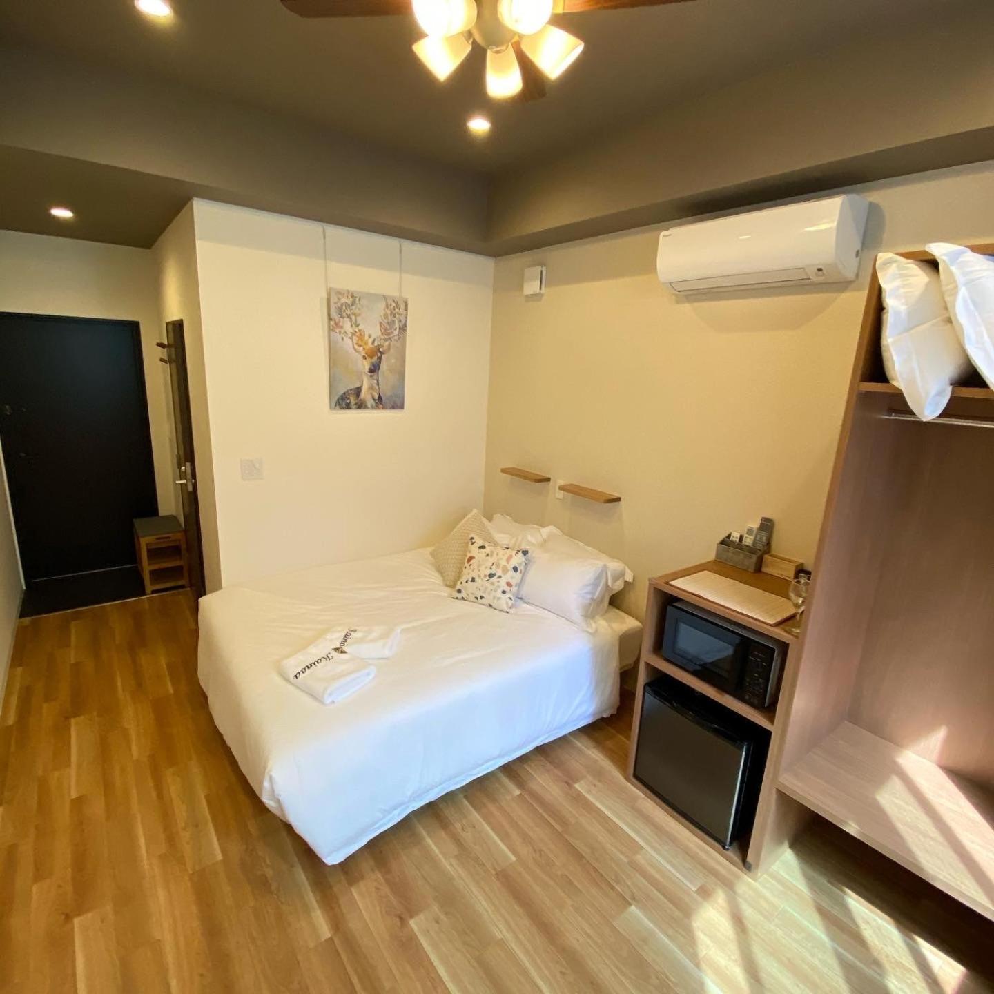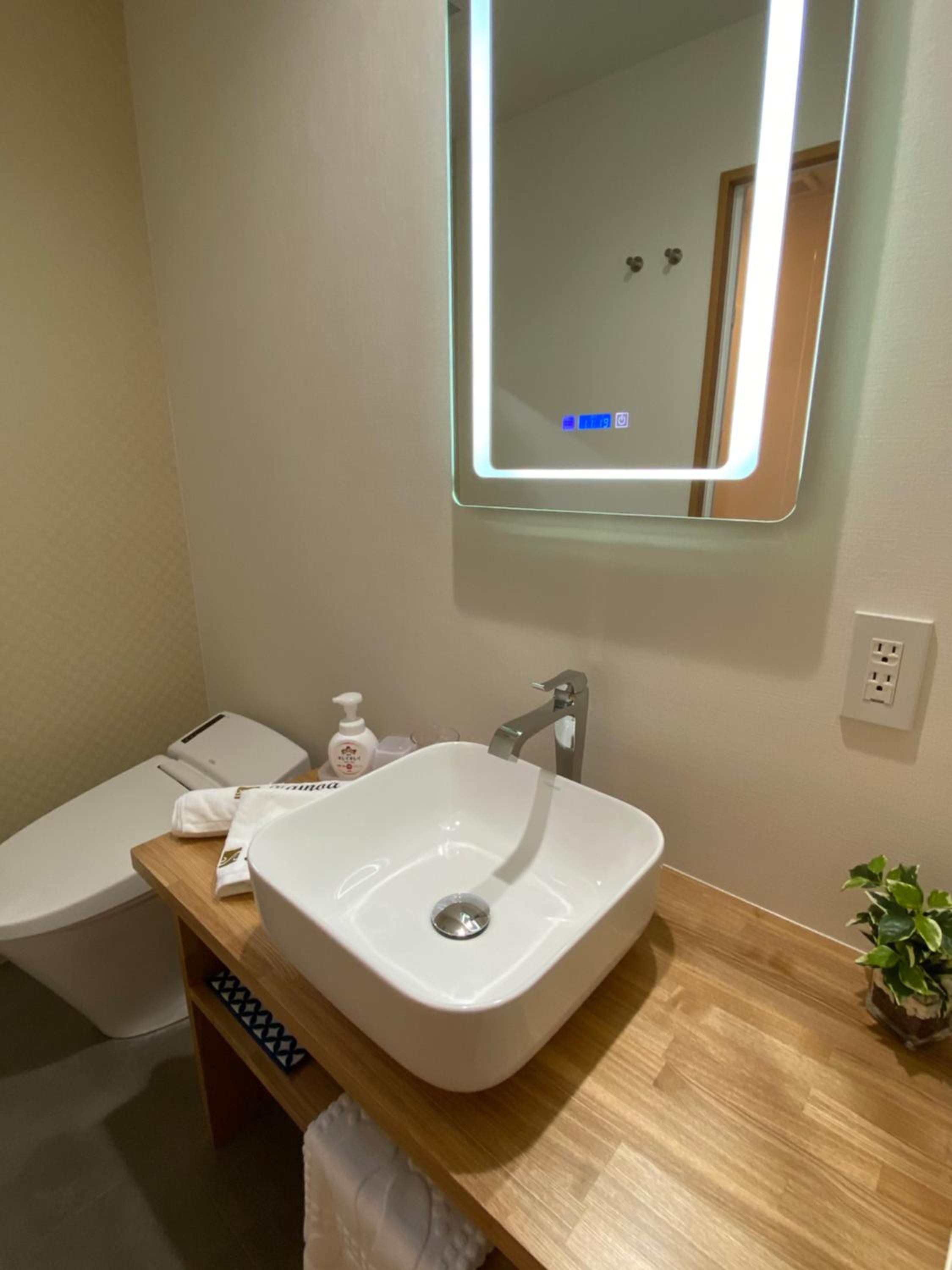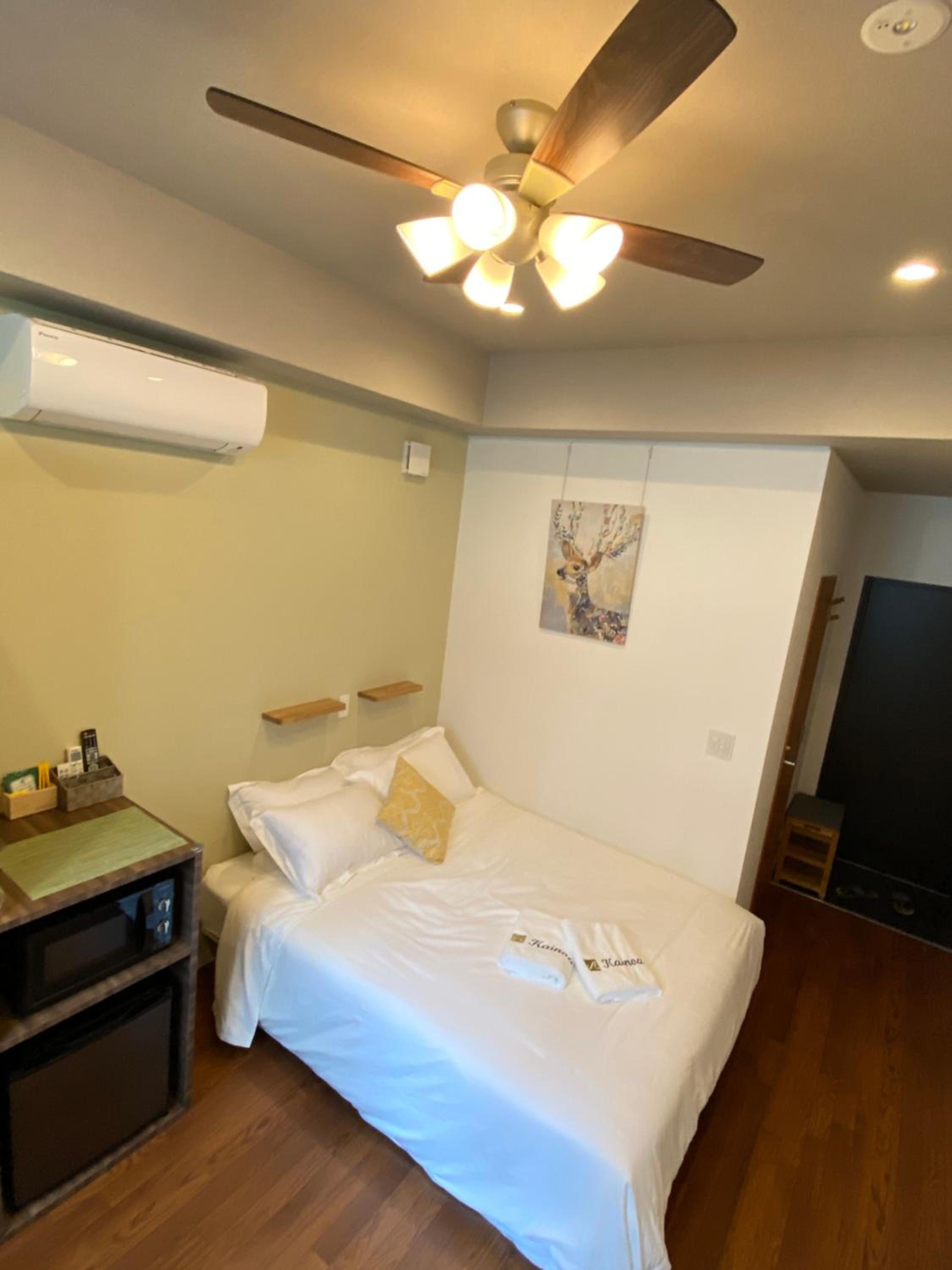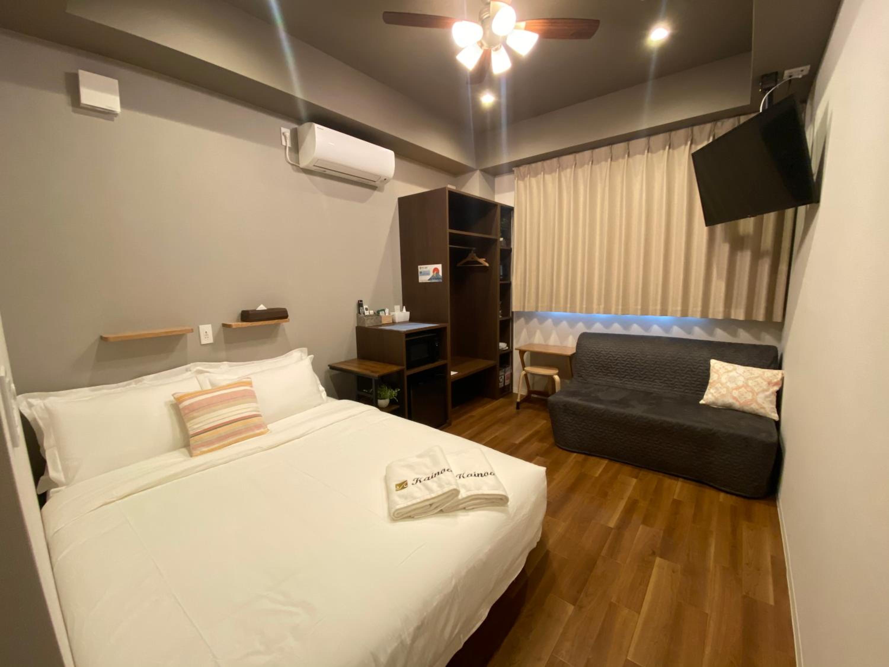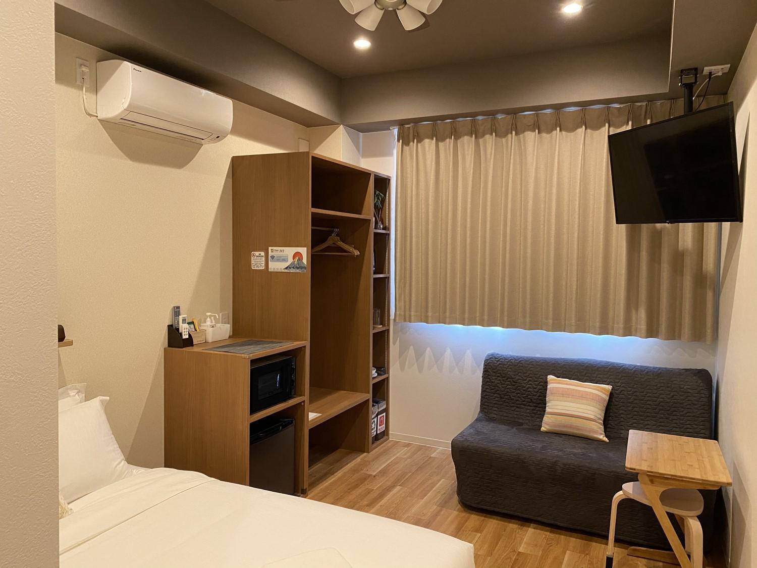 We stayed for 2 weeks. Lovely room and bathroom. Loved the rooftop patio. Elevator was very convenient. A small but nice selection of drinks and water in the foyer for 100yen. Laundromat 20 metres down the road. Bed was a very comfy medium-firm. Power point by the bed has inbuilt USB-A. The bidet was absolutely premium. Shower was lovely and spacious. Room has free wifi and a large TV with netflix. A microwave, kettle and mini fridge was in the room as well as an assortment of coffee and tea. A 711 just around the corner or family mart 2 minutes away. The 711 had an ATM+ that only charges 100yen on withdrawals with our pre paid debit travel cards. They offered a room clean during our stay. We used booking.com to communicate with the owner and they were quick with responses. Short walk to the station on the JR Yamanote line. Highly recommended staying here. We experienced an earthquake in the room and everything was well stable. AC was amazingly quick to heat the room.