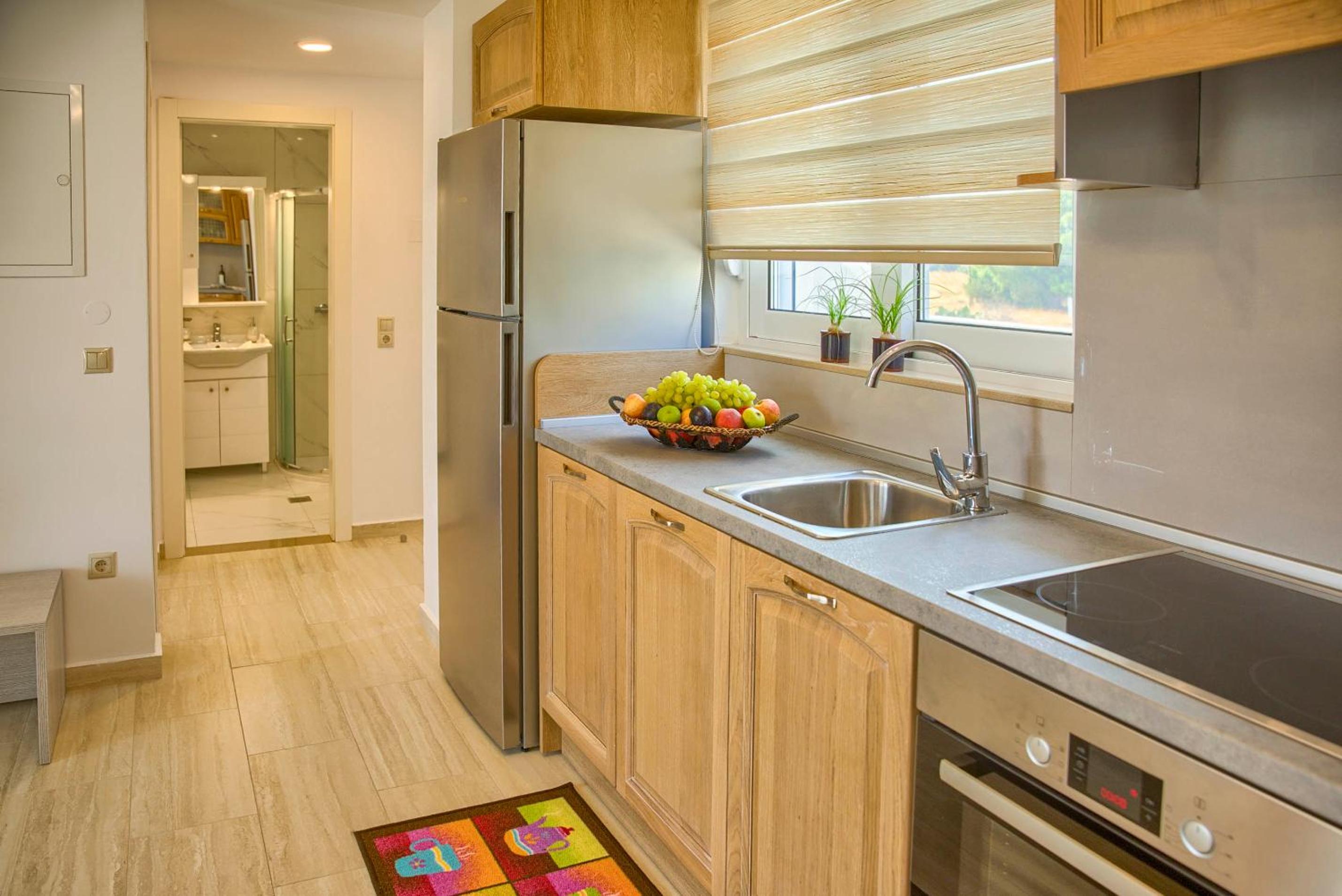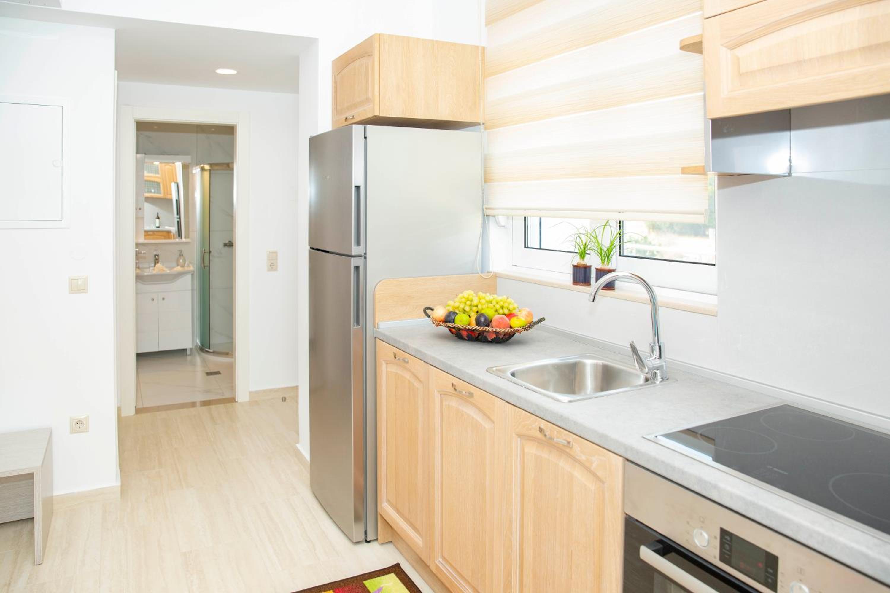 Oteli rezerve ederken mutfaklı olduğu için tercih etmiştim; fotograflarda var çünkü; ancak geldiğimizde odamızda mutfak olmadığını gördük; sanırım yeni binasında var; o yüzden iyice emin olarak odanızı seçin; çünkü farklı farklıymış. Odalar eski; ancak her gün temizlik yapılması iyi; klimanın ücretli.( 7 euro); deniz harika; ancak otelde kaldığınız halde 1 şemsiye ve 2şezlong ücreti 15Euro! Üstelik işleten de otel. Kahvaltı tabakları seçeneği var; ancak hem çok kötü( yanına koydukları haşlanmış garip patates) hem yanına tercih edilebilen kahvenin nescafe olması; meyve suyunun hazır meyve suyu olması- çok kalitesiz; 7 eurodan aşağı bir kahvaltı tabağı yok; tabakta yeşillik domates vs asla beklemeyin; yumurta, patates tost ekmeği reçel. Akşam yemeği var; ilk gün yedik; porsiyonlar az ve lezzetsiz; kısacası mutfak personeli çok güleryüzlü ancak yeme-içme çok kalitesiz ve ücreti yüksek. İnanılmaz sivrisinek var; bütün önlemlerinizi alıp gelmelisiniz; buna rağmen balkon kapısını kapatıp klima çalıştırmazsanız kurtulamıyorsunuz; ama klima ücretli!Deniz güzel personel güleryüzlü ama her şeyin ayrı ücrete tabii olması çok sıkıcı. Yıllar önce Rodosa gelmiştik; ada genel olarak her şey ücretli ya da pahalanmış;(5 euro olan şemsiyeler 7-30euro) bir daha rodosa da buraya da geleceğimizi sanmam.