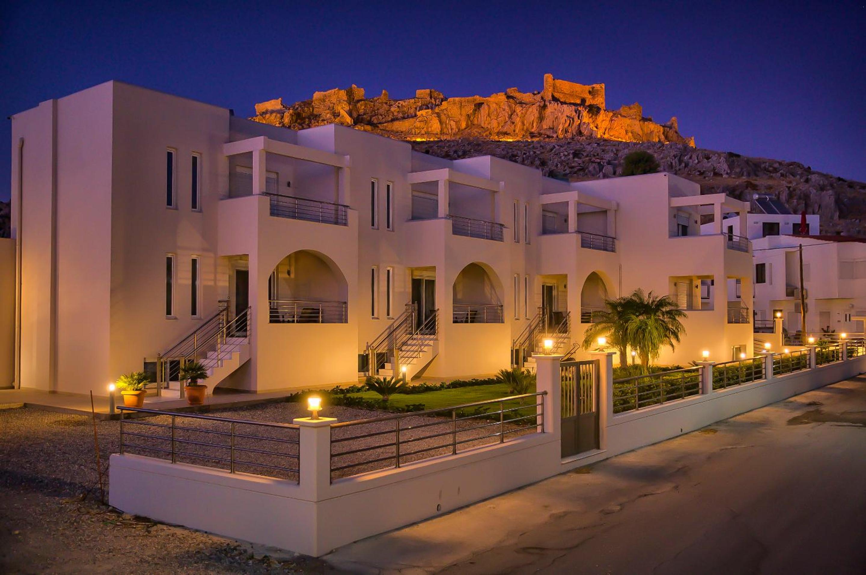 המיקום מושלם, על החוף, מפרץ מהממם ושקט, בצד המזרחי , קרוב ללינדוס.. המים בים רגועים כמו בברכה. לקחנו דירה וחדר במלון. שימו לב, שמדובר בשני מבנים שונים. המלון ממש על קו המים והדירות, קו שני. בדירה שלנו היה נוף לים. הדירות חדשות ומצוידות בכל מה שדרוש, אפילו יש מדיח כלים במטבח. מקבלים מגבות שמוחלפות כל יומיים ומנקים את החדרים והדירות כל יום. הצוות מקסים ועוזר בכל מה שצריך, ממש הרגשה של משפחה.