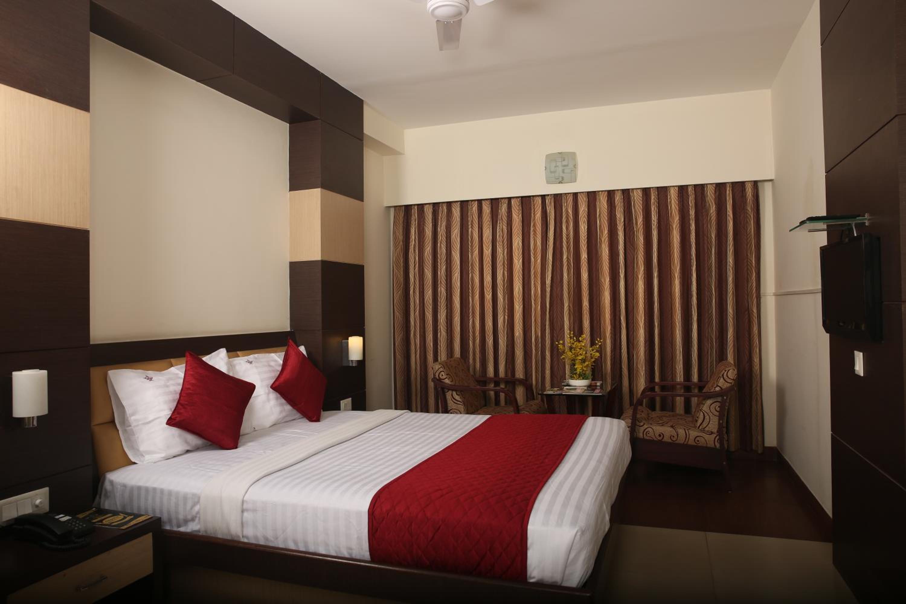 Discover nearby attractions like Brigade Road and Chinnaswamy Stadium, just a short drive away. With Kempegowda International Airport within reach, your journey to Sri Krishna Palace is effortless.