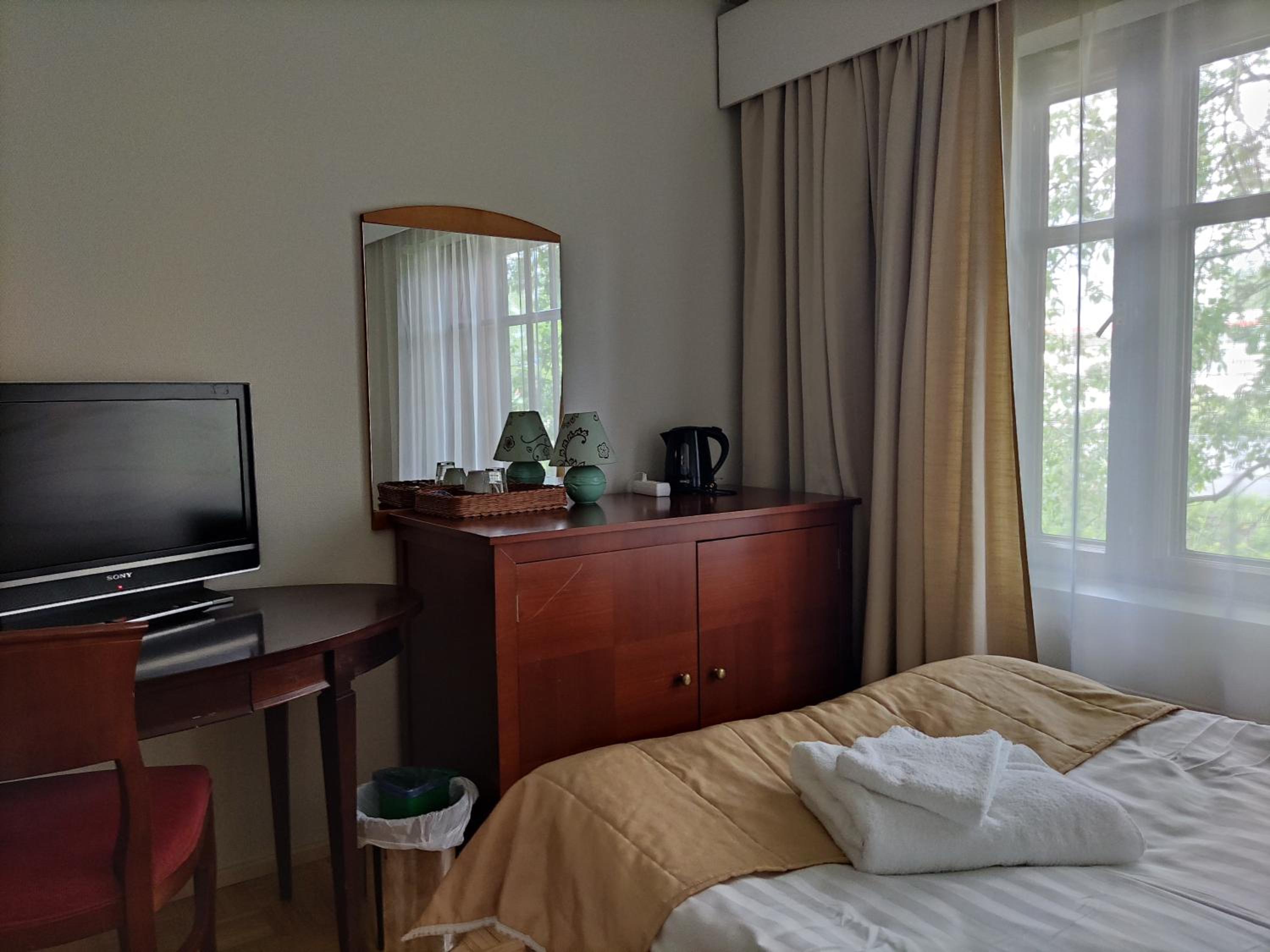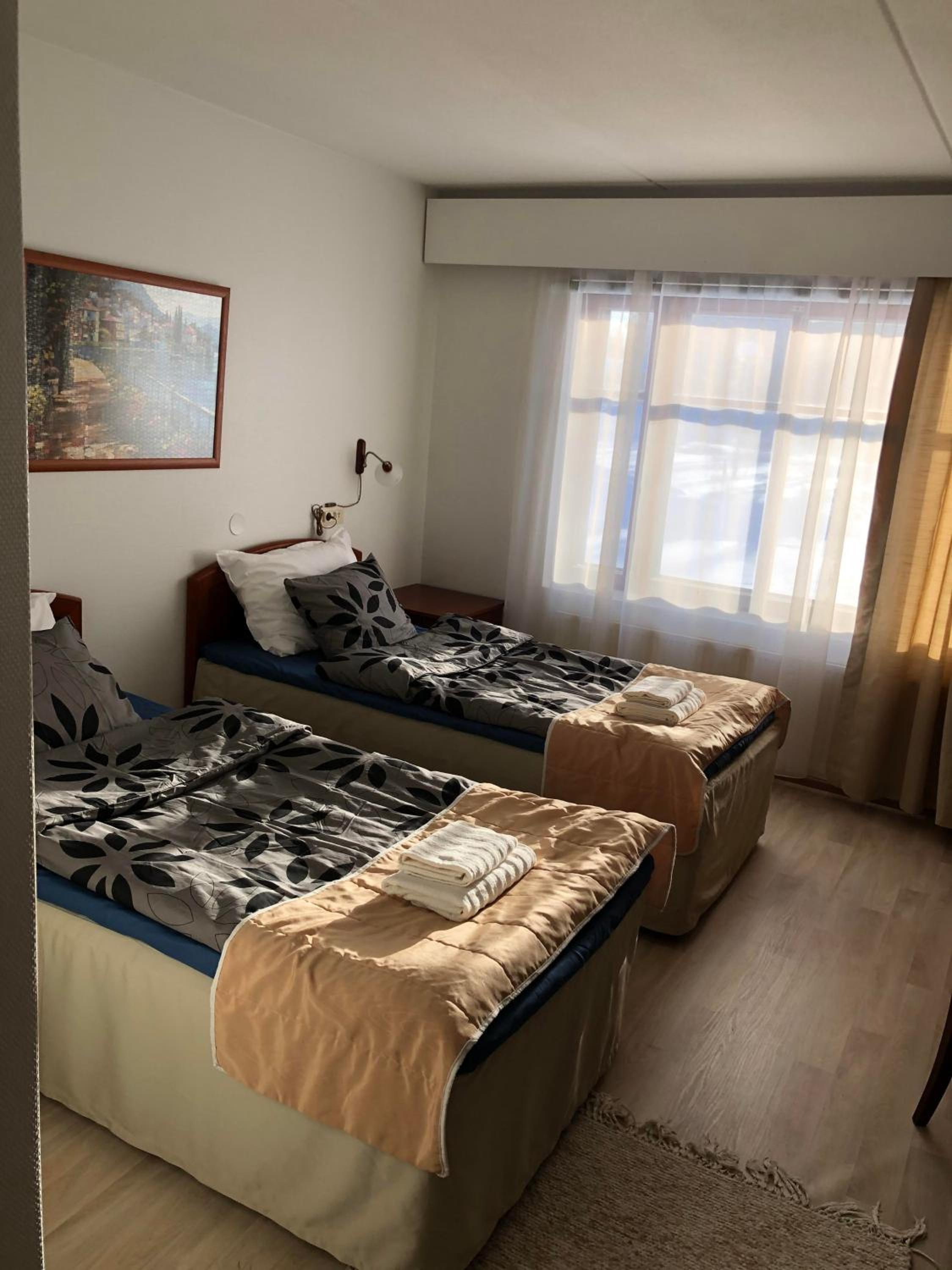 Ei saatu aamiaista, ovi oli lukossa. Huoneen lämpötila, onneksi löytyi kaksi pientä puhallinta. Suosittelen puhaltimien uusimista ja vähän tehokkaammat jos ei ole varaa rakentaa ilmastointia.Myöskin WC patterit auki, lisäsi kuumuutta,olisi syytä kiertää kaikki huoneet ja sulkea patterit säästyisi myös energiaa.