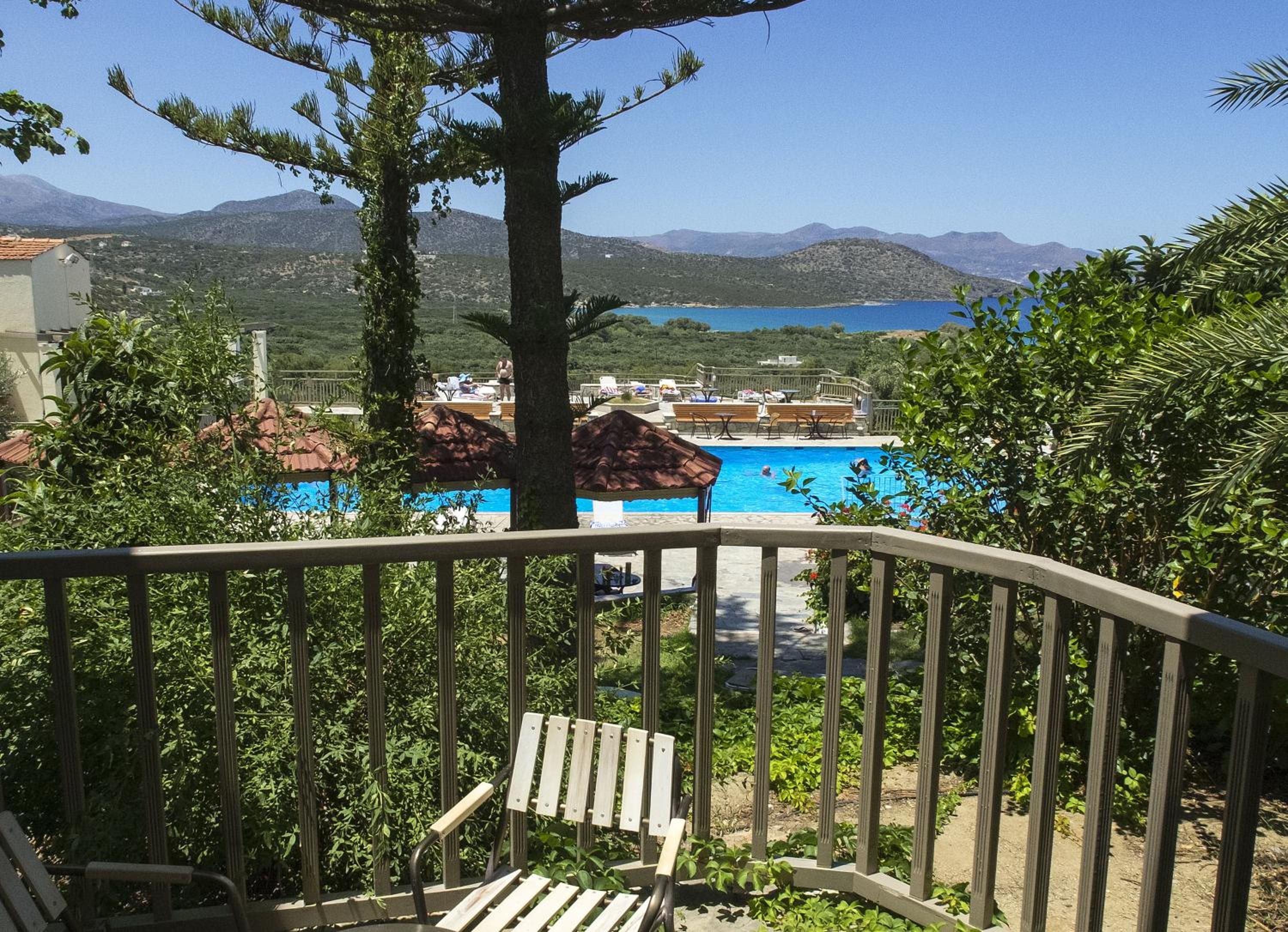 Enjoy breathtaking views of Istron and the sea from Elpida Village's lush gardens and charming courtyard, creating a serene atmosphere for your stay.