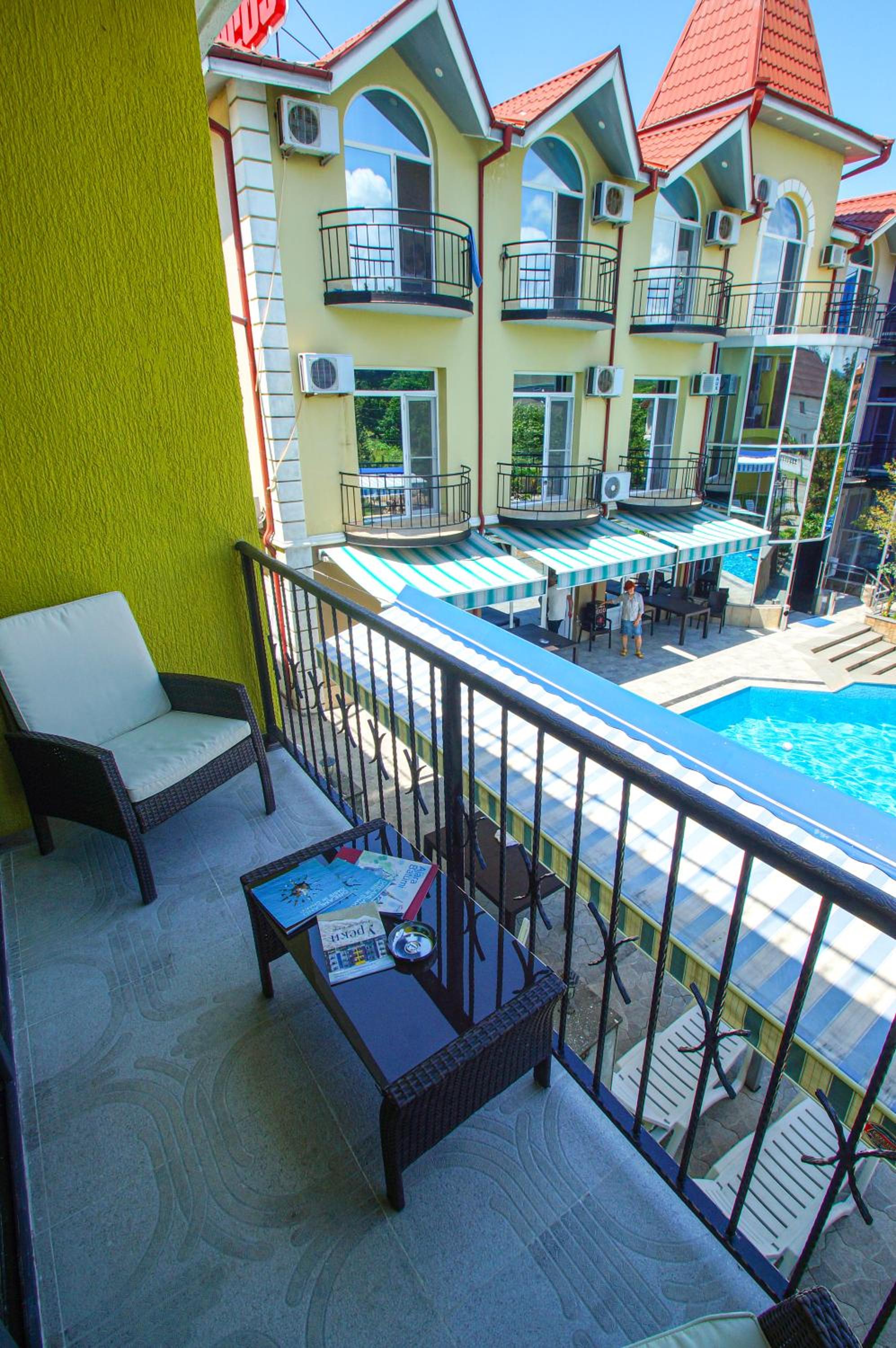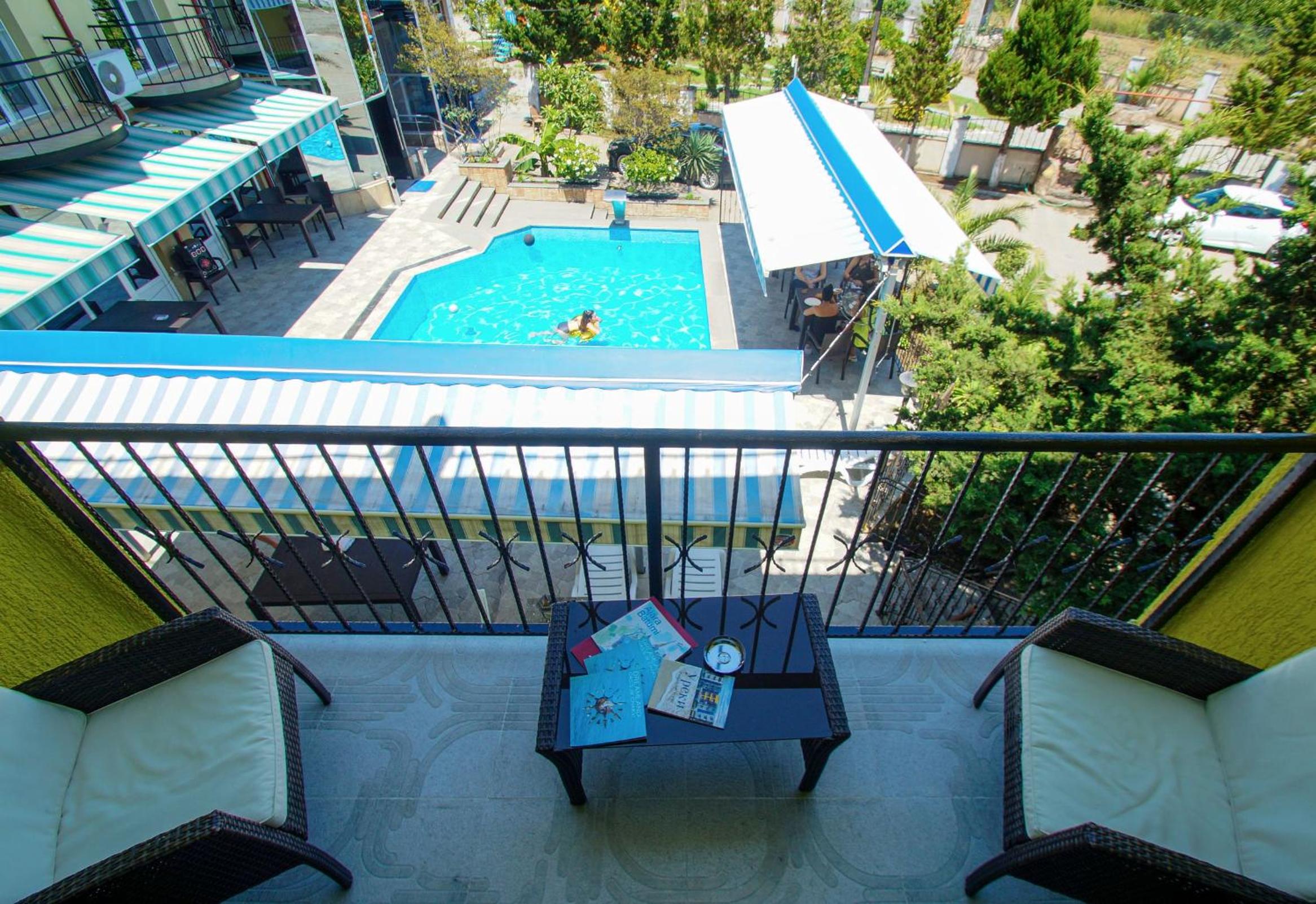 Experience comfort and luxury in our rooms with balconies offering stunning sea views. Each room is equipped with air conditioning, a flat-screen TV, and a fridge for your convenience.