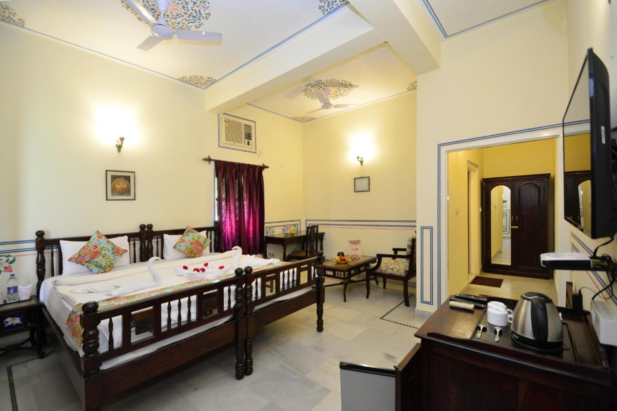 Experience a blend of heritage charm and modern comfort at Mahal Khandela - A Heritage Hotel and Spa. Nestled in Jaipur, just 3.5 km from the Railway Station, our 4-star hotel offers elegantly designed rooms with city views, free WiFi, and 24-hour room service.