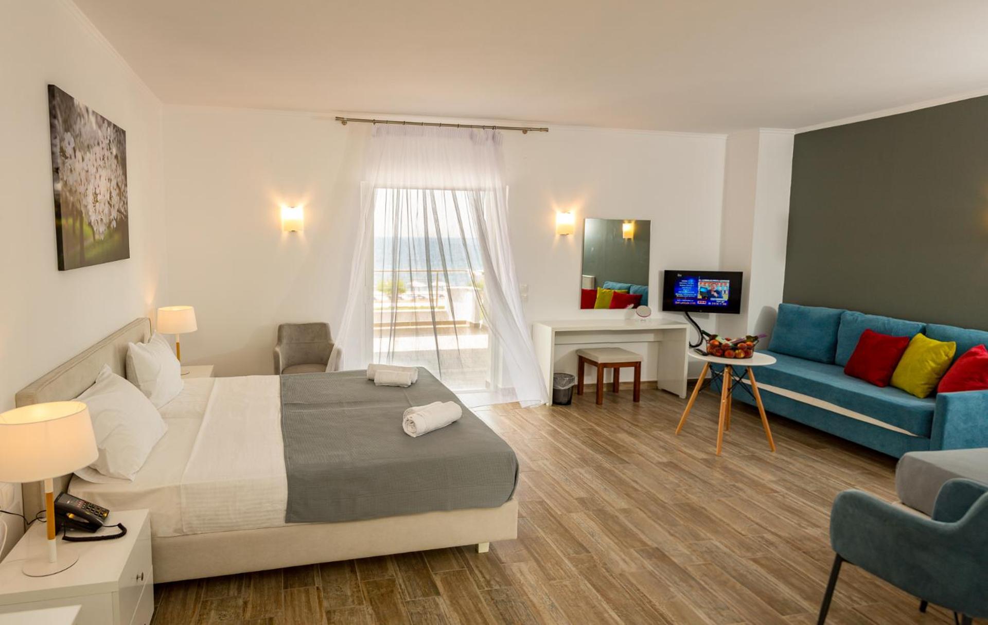 Comfort & Convenience: Each room is equipped with modern comforts such as air conditioning, a flat-screen TV, and a private terrace overlooking the sea. Enjoy the convenience of free WiFi, room service, and airport transfers.