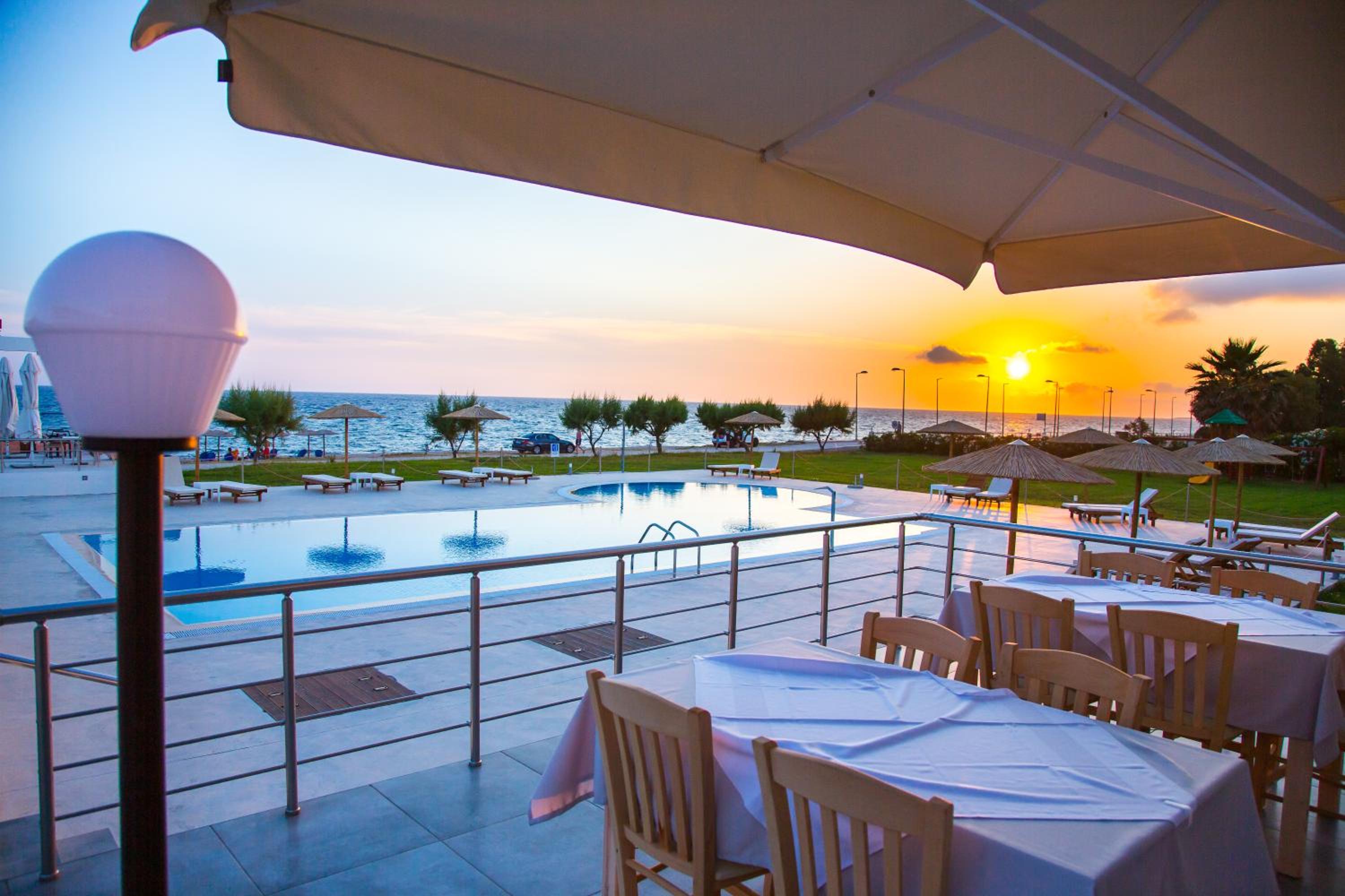 Amenities Galore: From a seasonal outdoor pool to a children's playground, Blue Sea Hotel offers a range of amenities to ensure a comfortable stay. Indulge in Greek cuisine at the on-site restaurant or grab a drink at the bar.