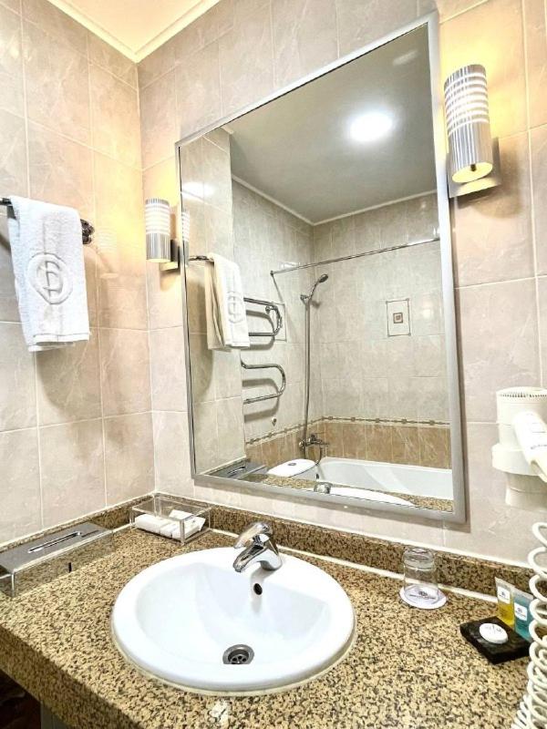 Hotel Dastan Aktobe, situated in the heart of Aktobe, offers stylish air-conditioned rooms with modern amenities including a flat-screen TV, fridge, bathrobes, and slippers. The elegant decor and warm colors create a cozy atmosphere for guests to unwind after a busy day.