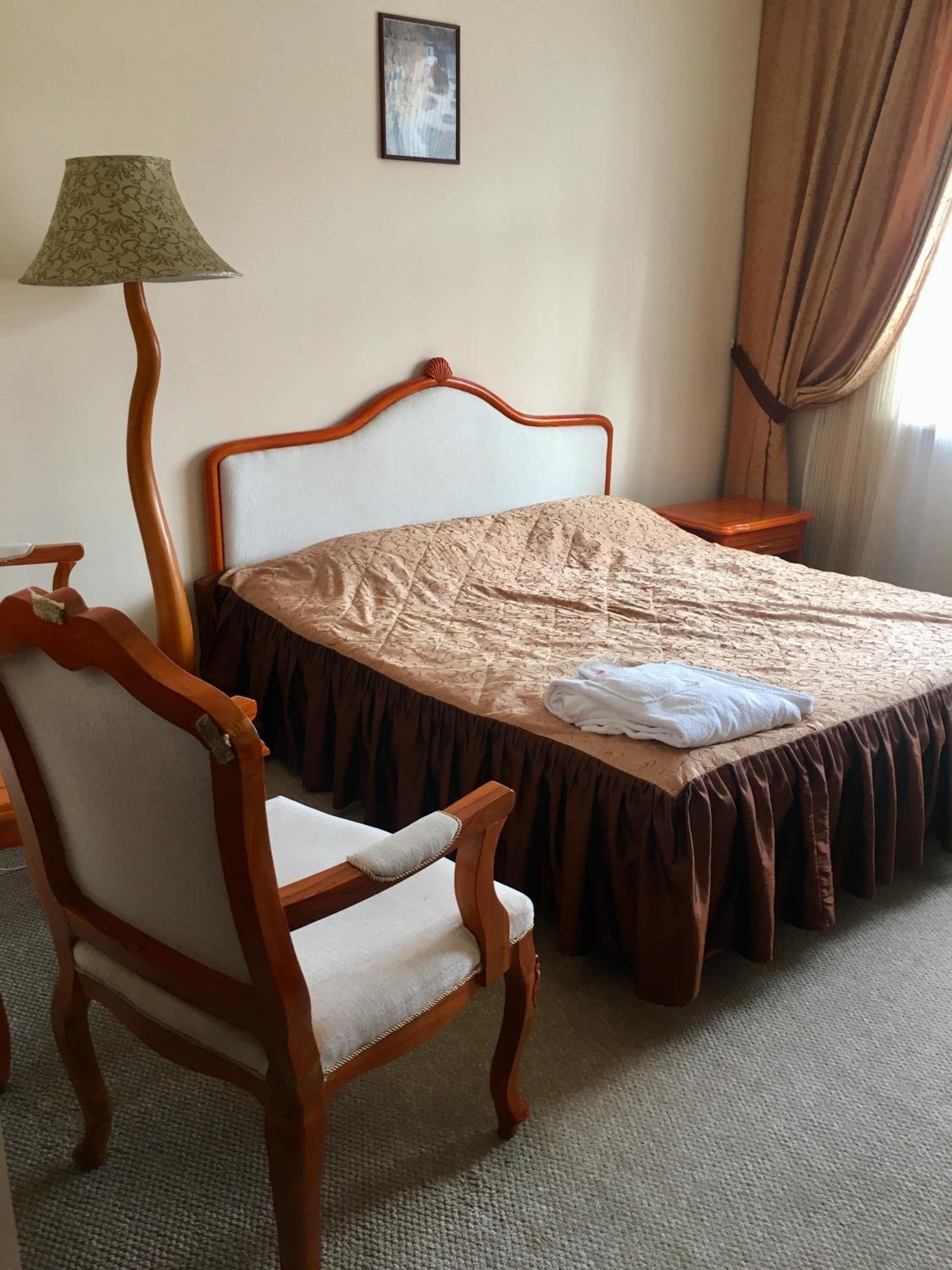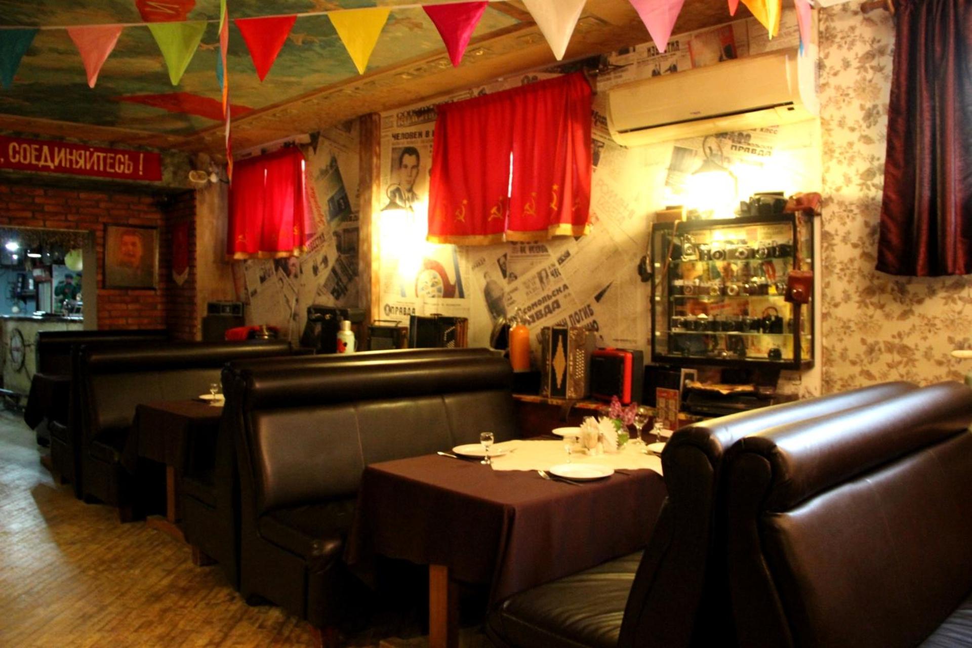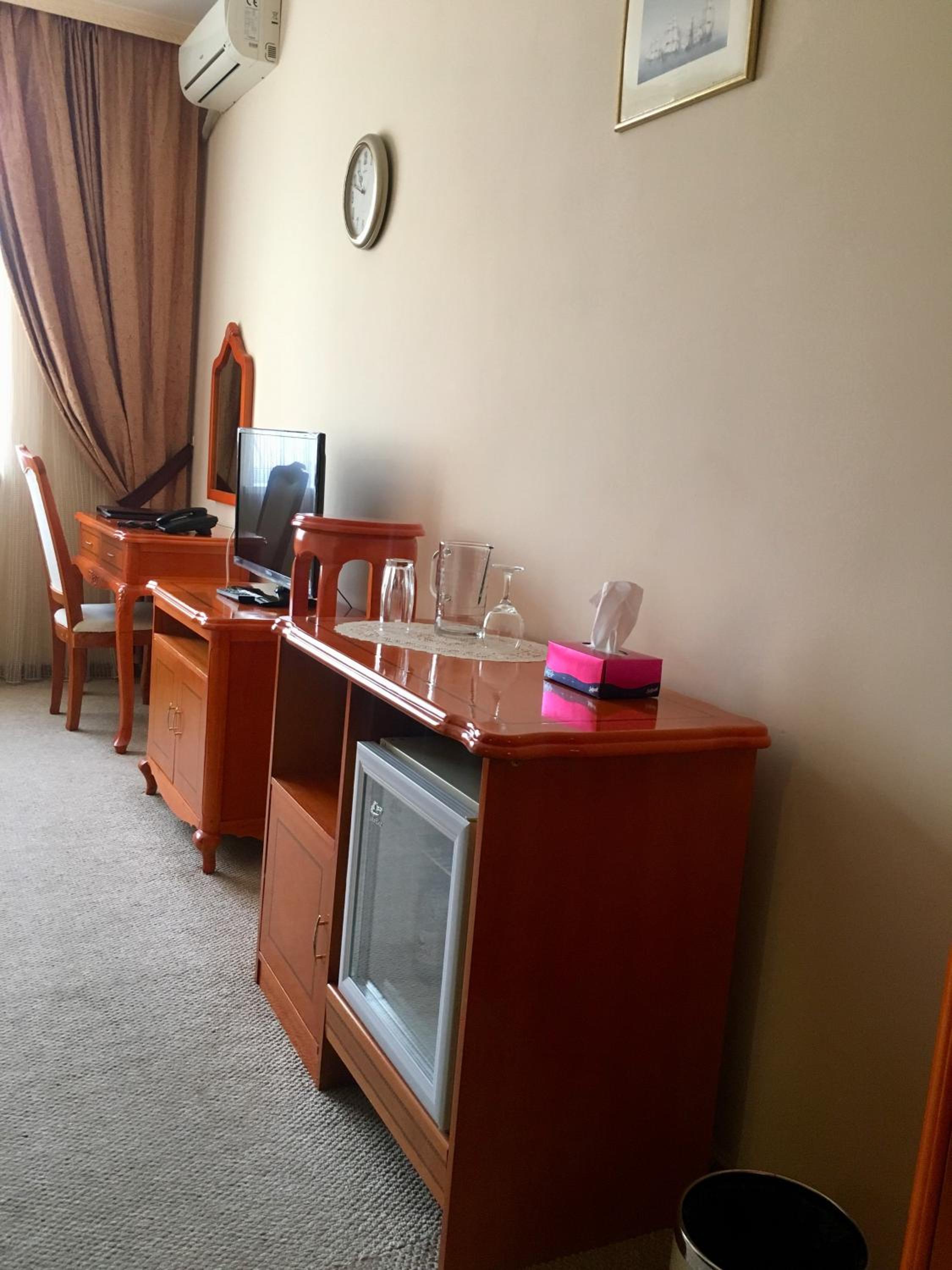 Large (much larger than anticipated), clean rooms with a modern bathroom with shower. TV on wall (plus sport in the lobby) and the wifi worked well. Staff were friendly, asked us to make breakfast choice on arrival so that it would be ready at a time of our choice in the cafe. And, indeed, the Soviet-themed cafe/restaurant/bar is outstanding, possibly my favourite of all I've visited in Kazakhstan all year. Five rooms designed in retro Soviet style (including a train carriage and cinema), great food at very reasonable prices, beers (and vodka, of course) and friendly staff. Thank you!