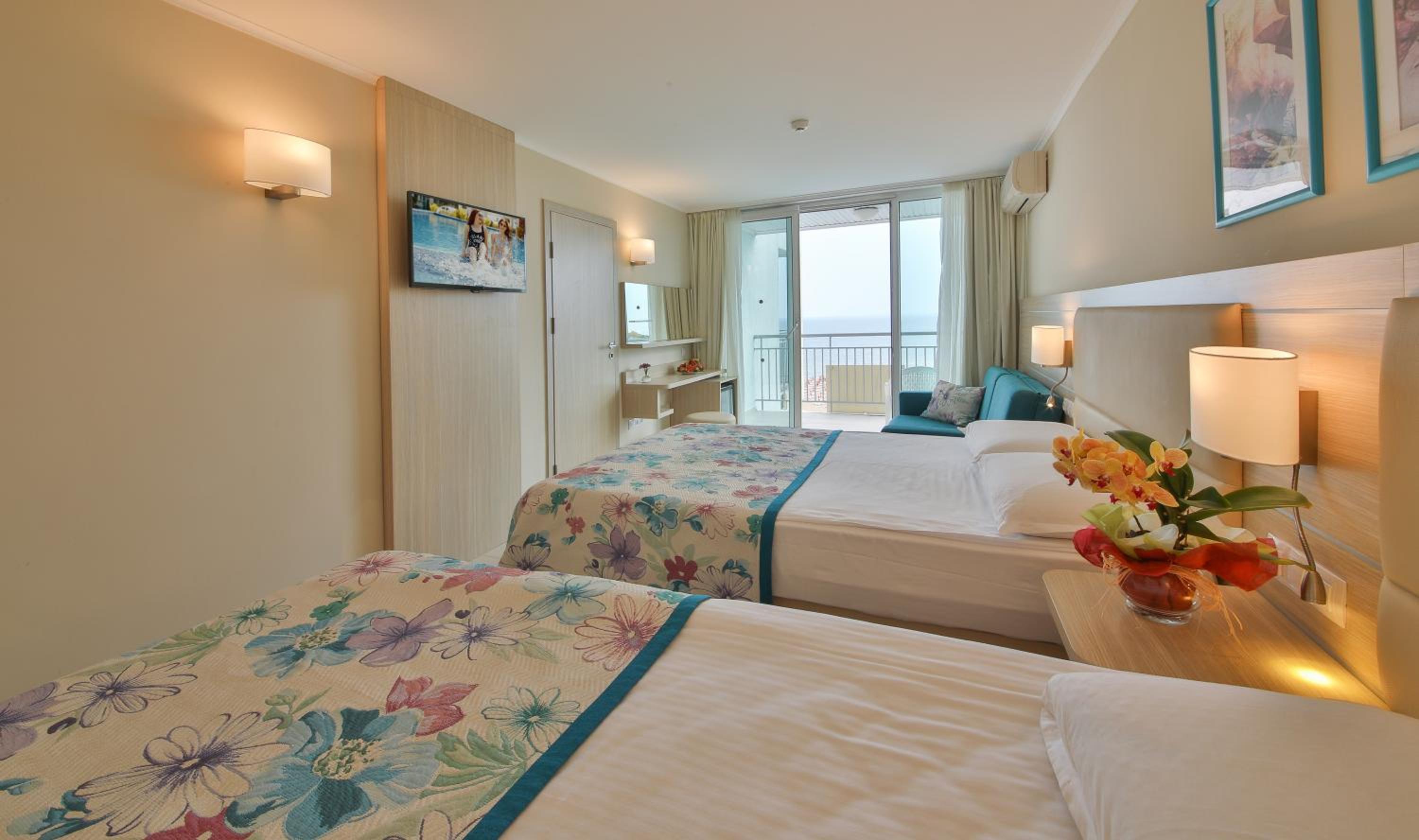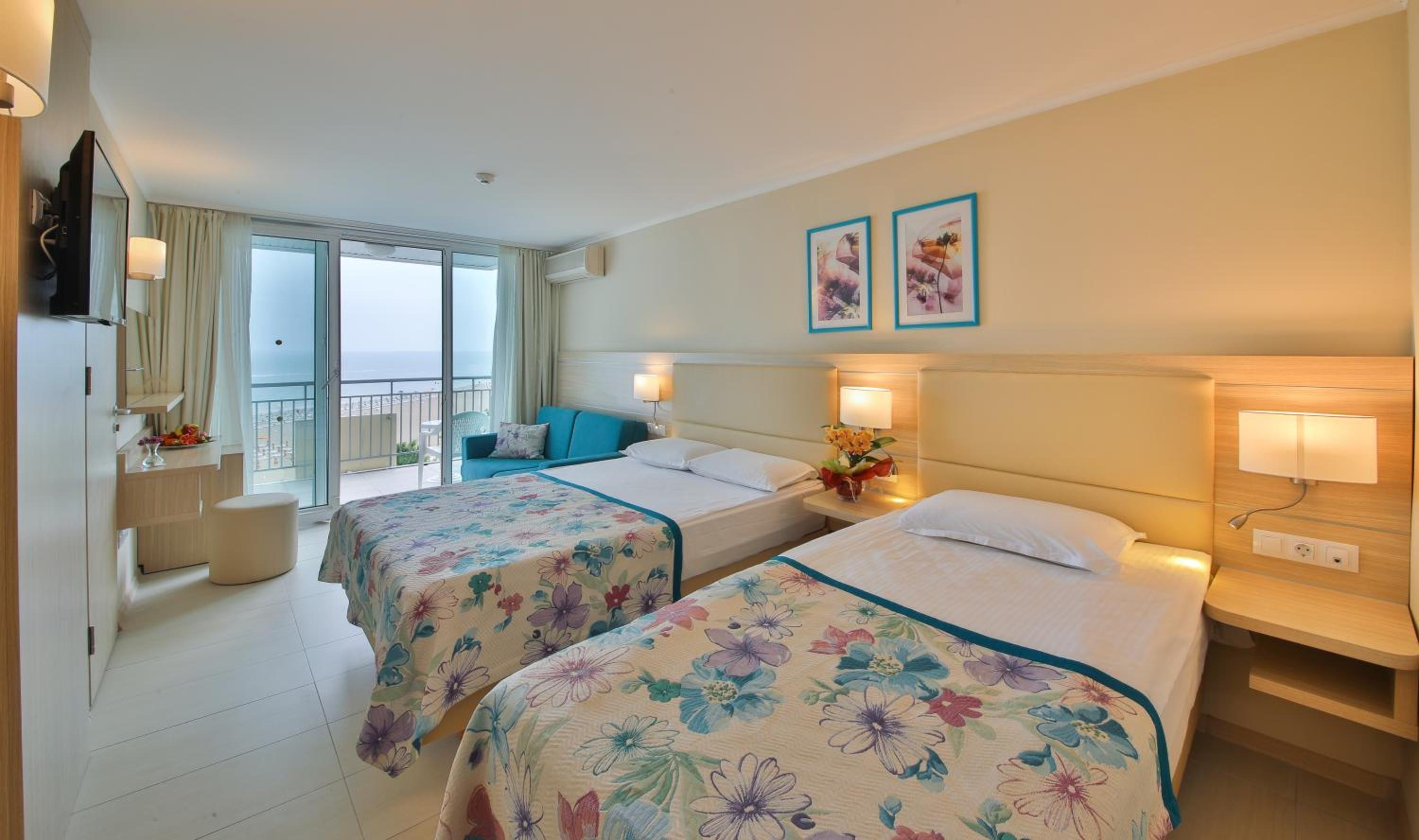 In primul rand aceasta nu este un hotel de 4 stele! In camera nu exista nimic din ceea ce ar fi trebuit sa fie pentru 4 stele: gel de dus, sampon (exista in baie doar 2 sticlute mici si 2 sapunele si prosoape), papuci, halat, apa, minibar, ceai sau cafea, etc. Ce sa mai zic de internet sau wi-fi?! Doar un semnal slab la receptie. Nimic nu miroase a proaspat sau a "curat". Pe plaja, desi e allinclusive exista o ghereta amarata pentru bere; nu prezinta nici o incredere. Cand am ales acest hotel am vazut note de 8+, recenzii f.bune insa NU MERITA!