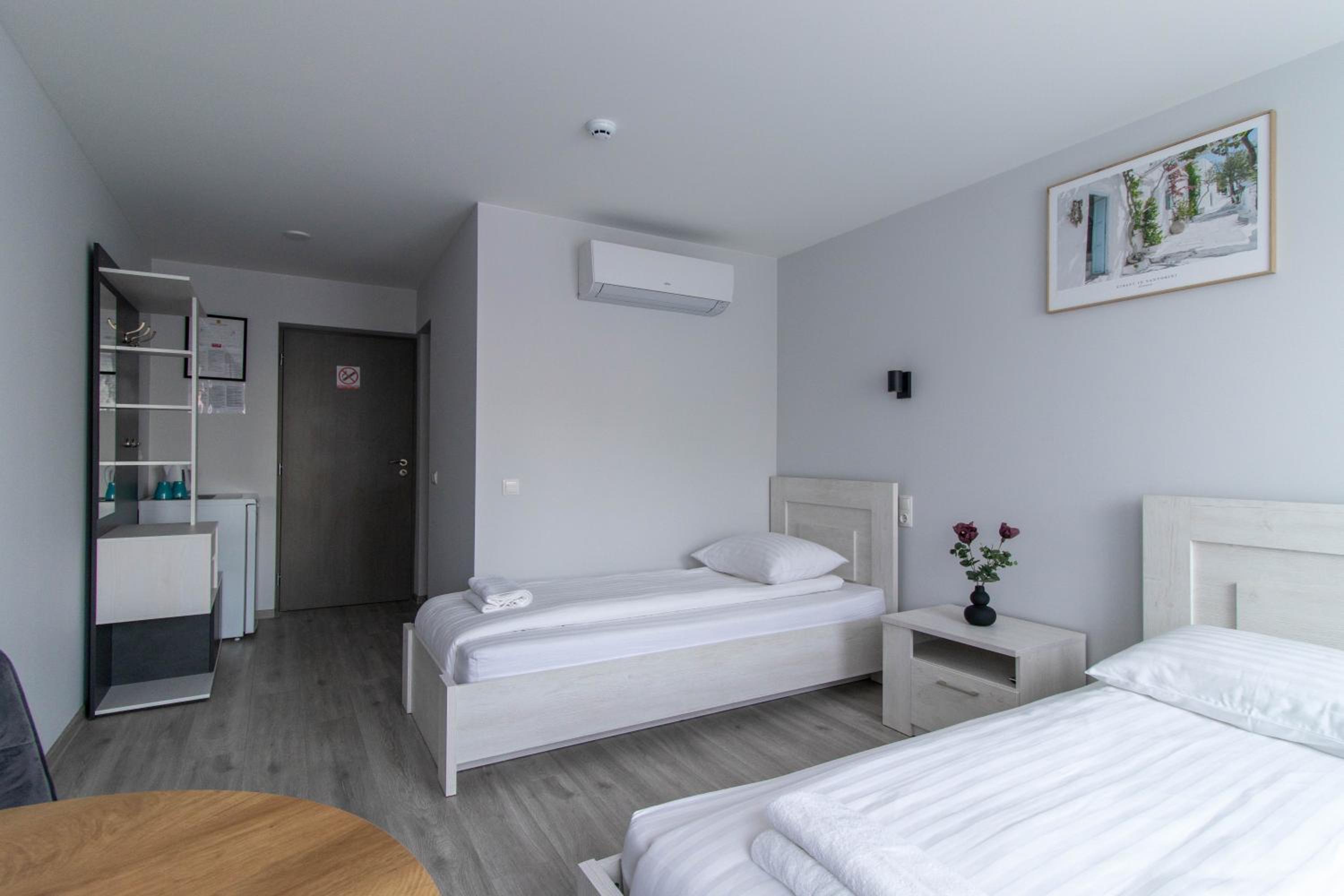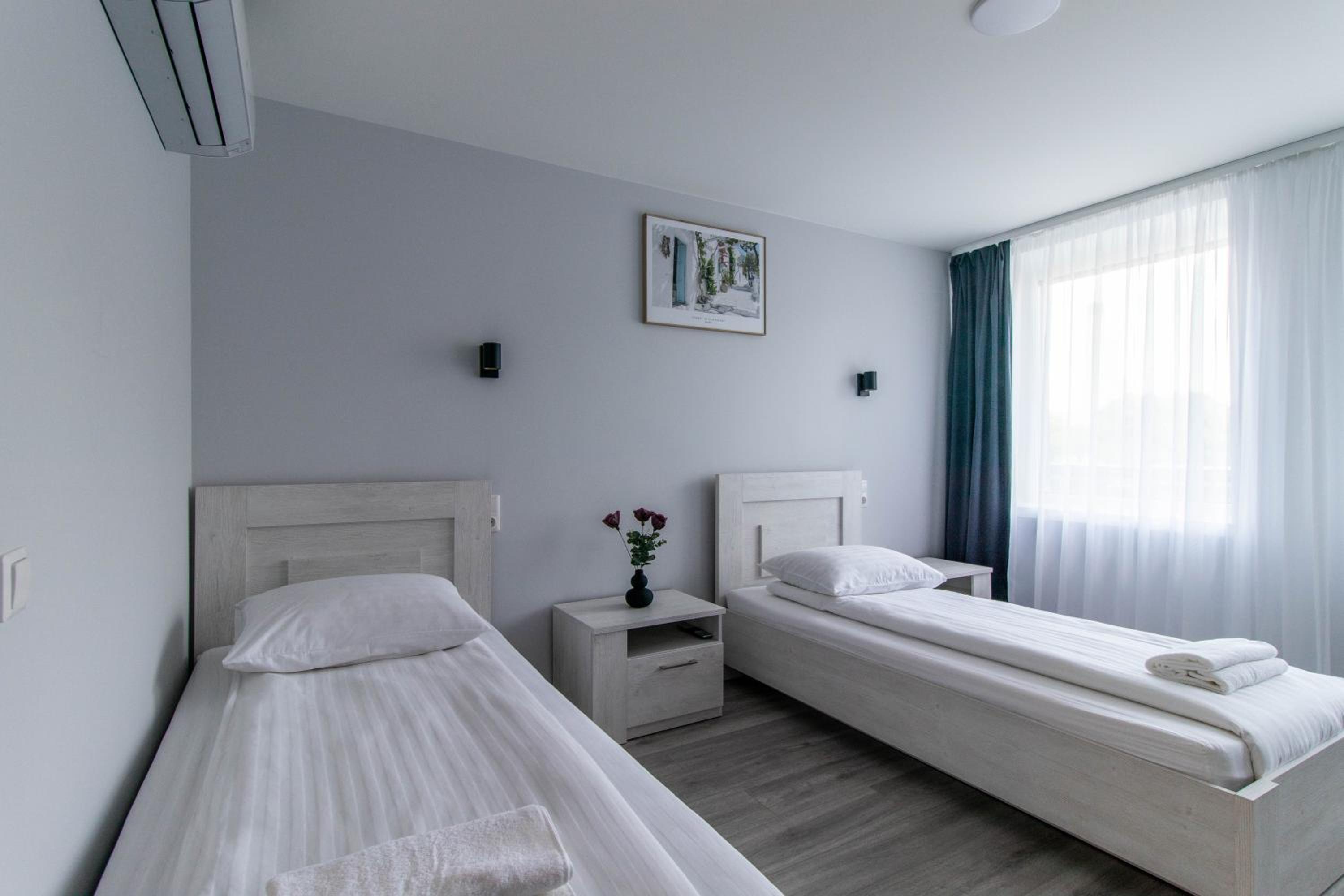 Viešbutis labai patogioje vietoje,kambarys didelis,jaukus,švarus ir labai patogi lova bei pagalvės.
