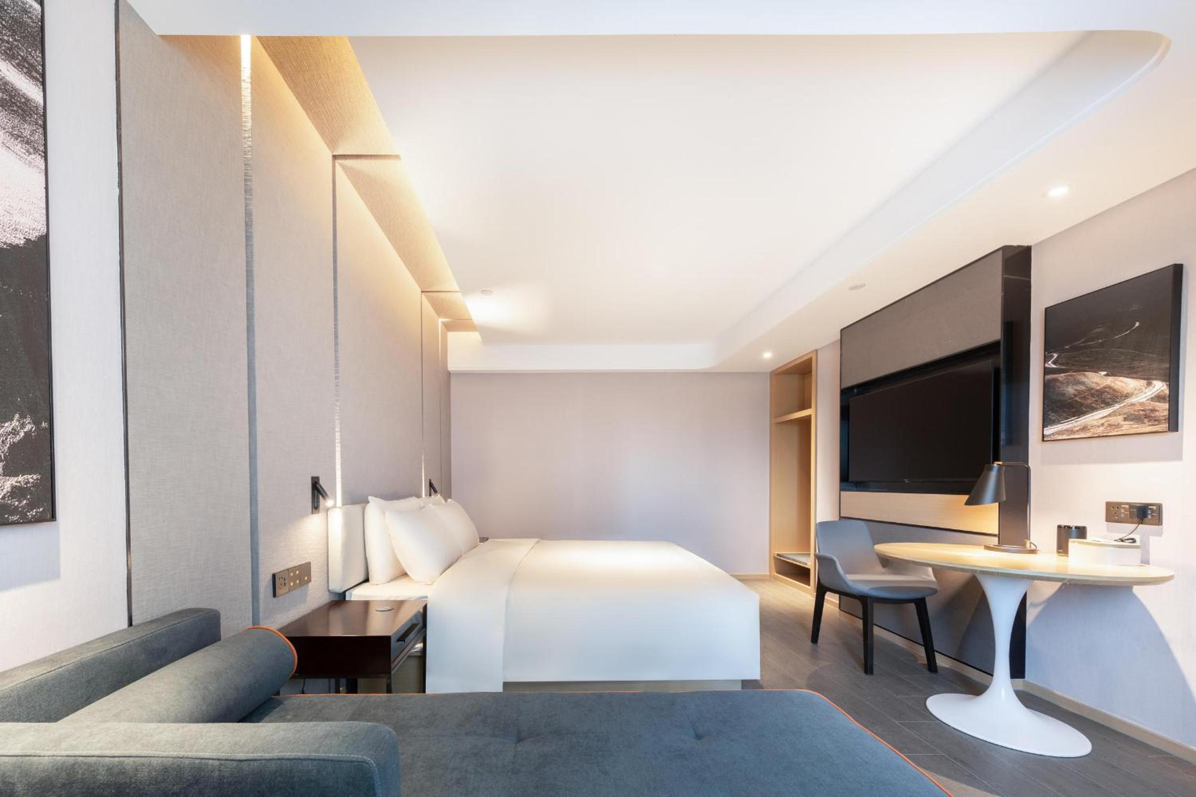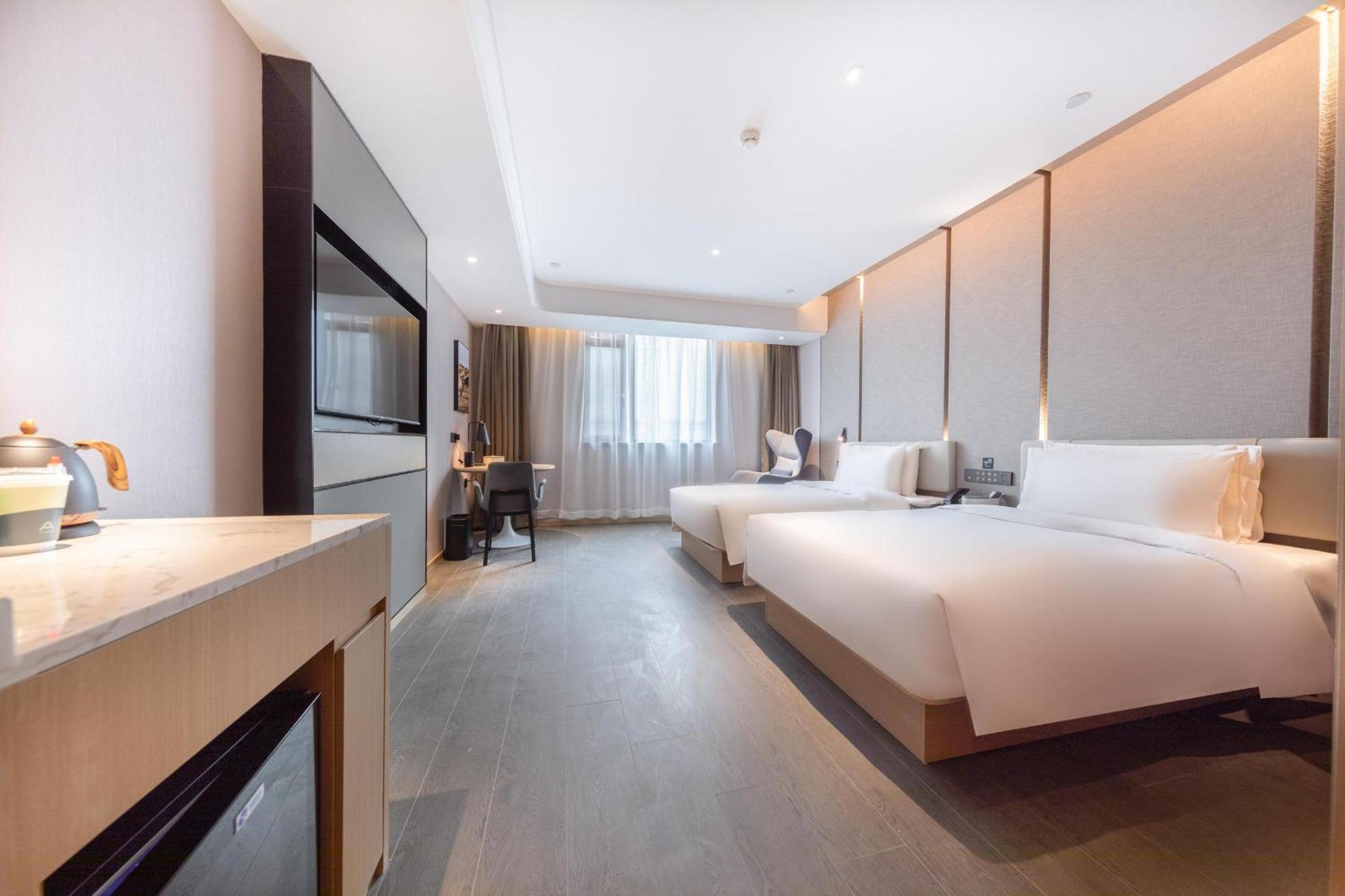 Experience comfort and convenience in our well-appointed rooms at Atour Hotel Anqing Wuyue Plaza. Each room is equipped with a cozy seating area, a TV for entertainment, air conditioning for a pleasant stay, and a desk for your work needs.