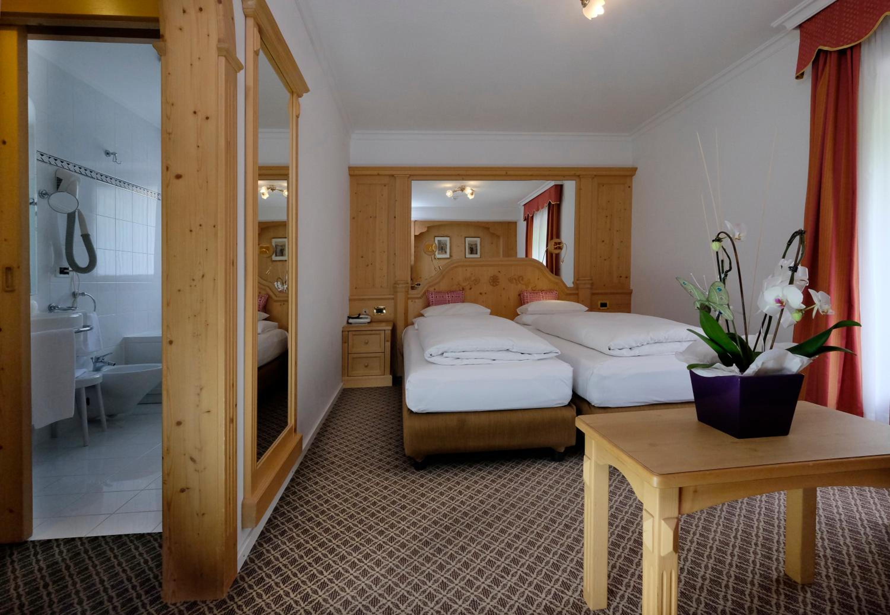 Hotel Evaldo offers elegant rooms with modern amenities, including LCD TVs and private bathrooms, ensuring a comfortable stay amidst the stunning Dolomites.