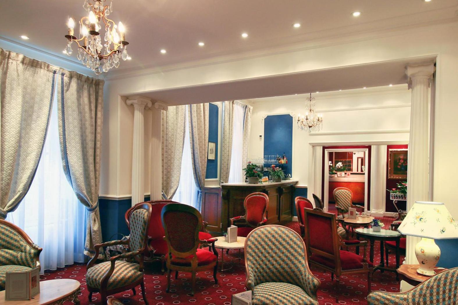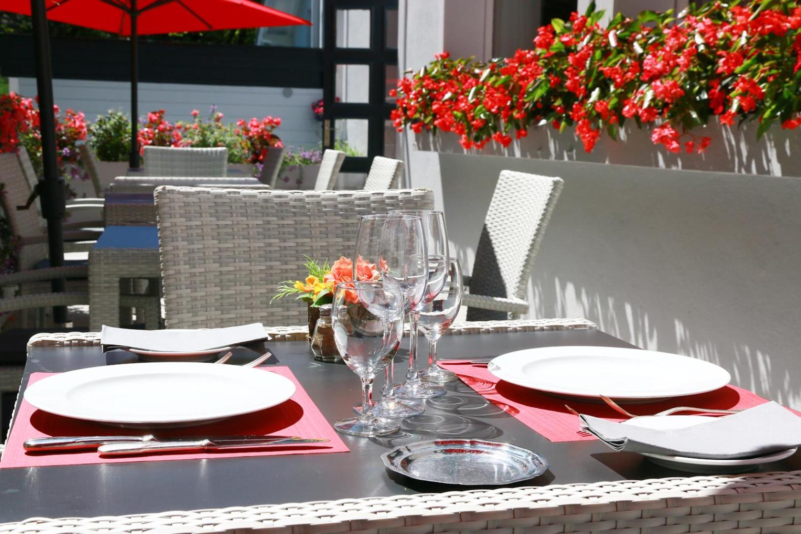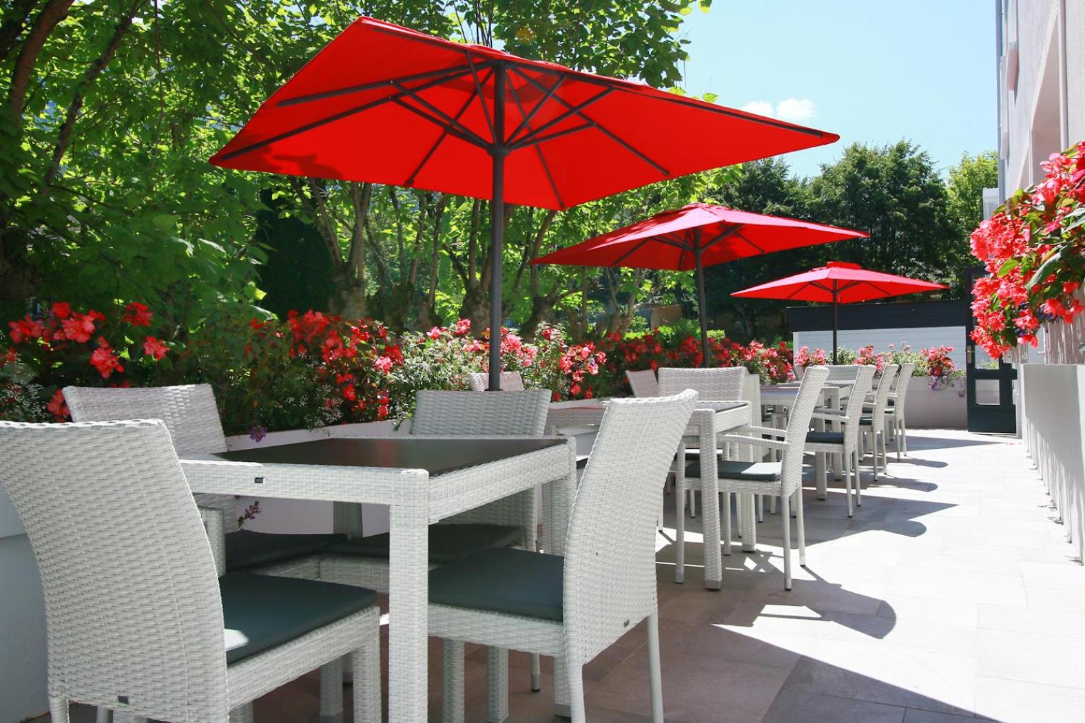 Elegant Rooms and Dining: Indulge in soundproofed rooms with classic décor and modern amenities. Start your day with a buffet breakfast in the air-conditioned restaurant or on the terrace with French cuisine and drinks available.