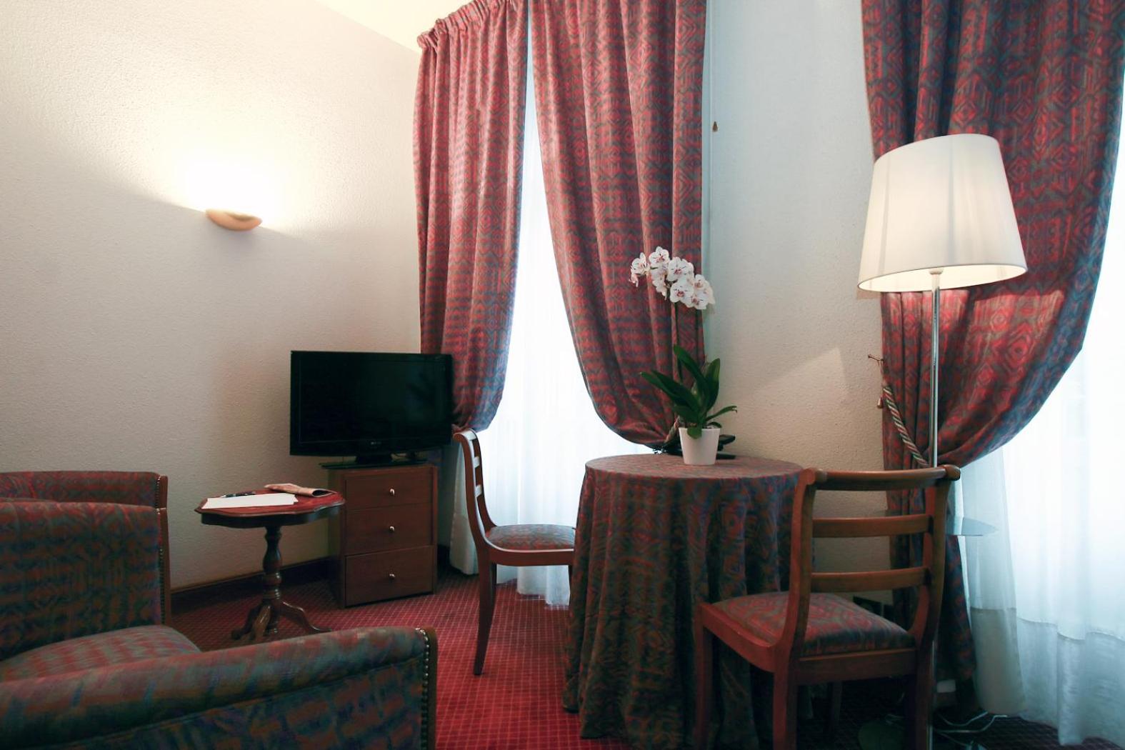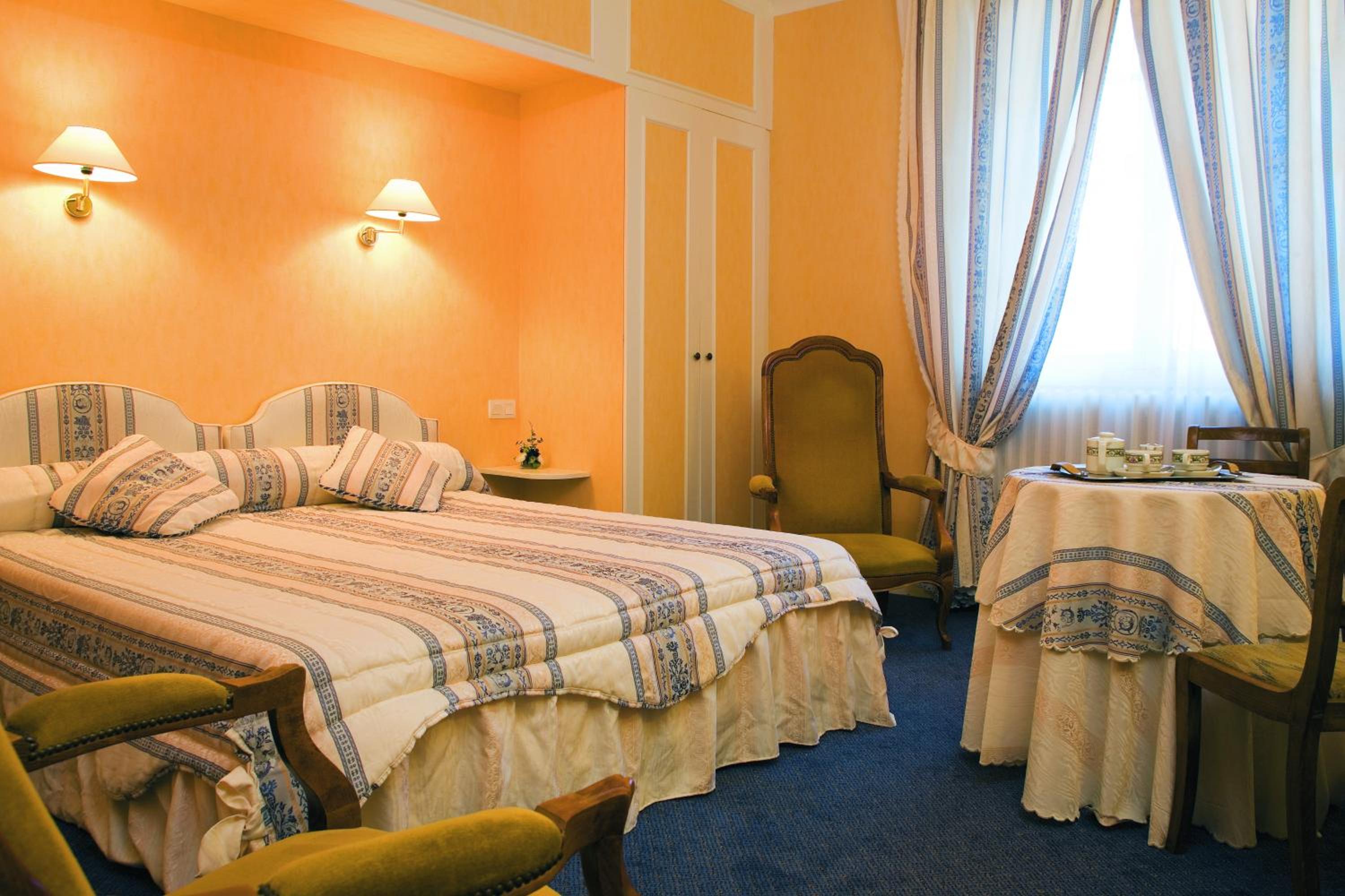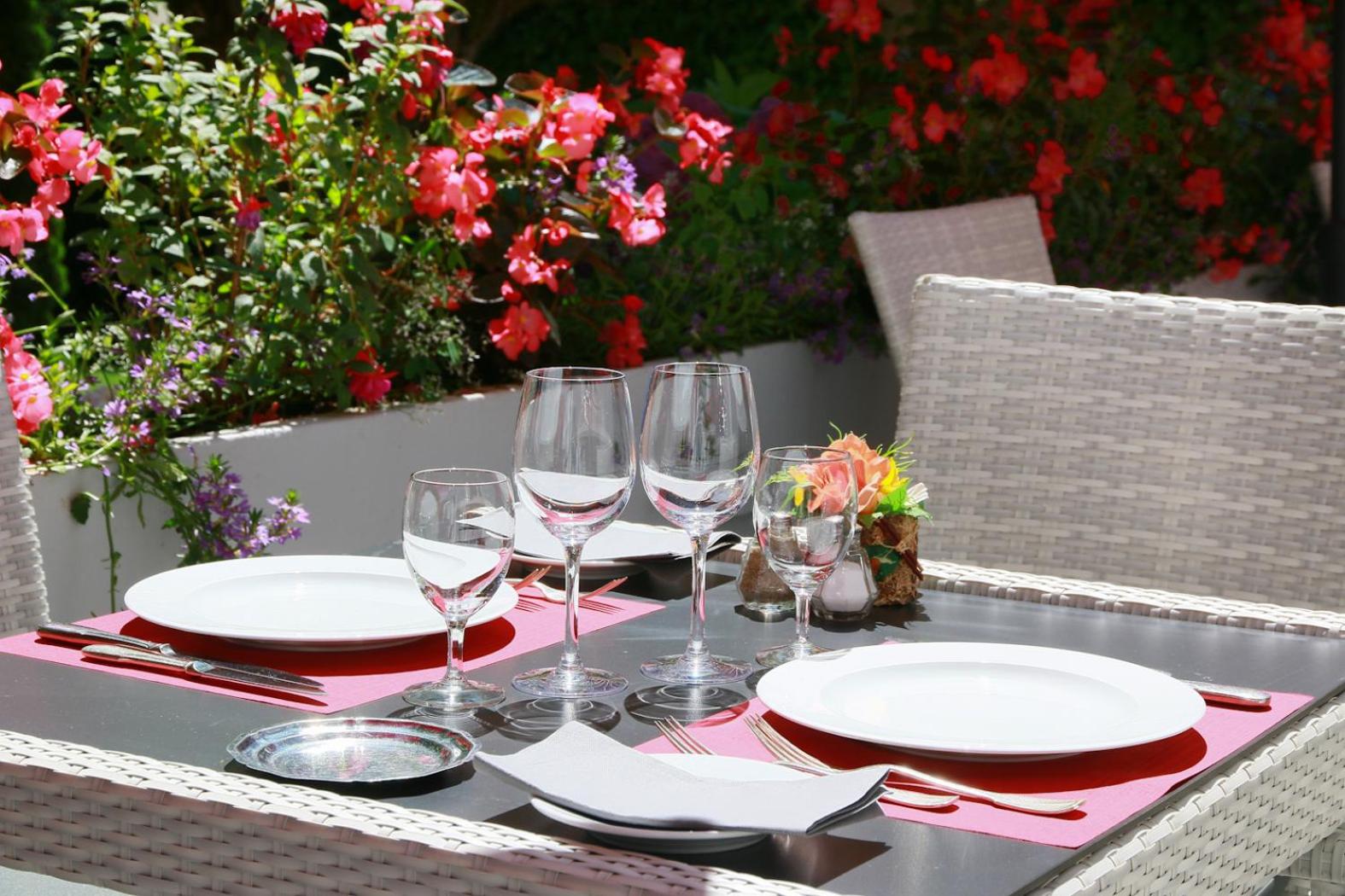 Elegant Rooms and Dining: Indulge in soundproofed rooms with classic décor and modern amenities. Start your day with a buffet breakfast in the air-conditioned restaurant or on the terrace with French cuisine and drinks available.