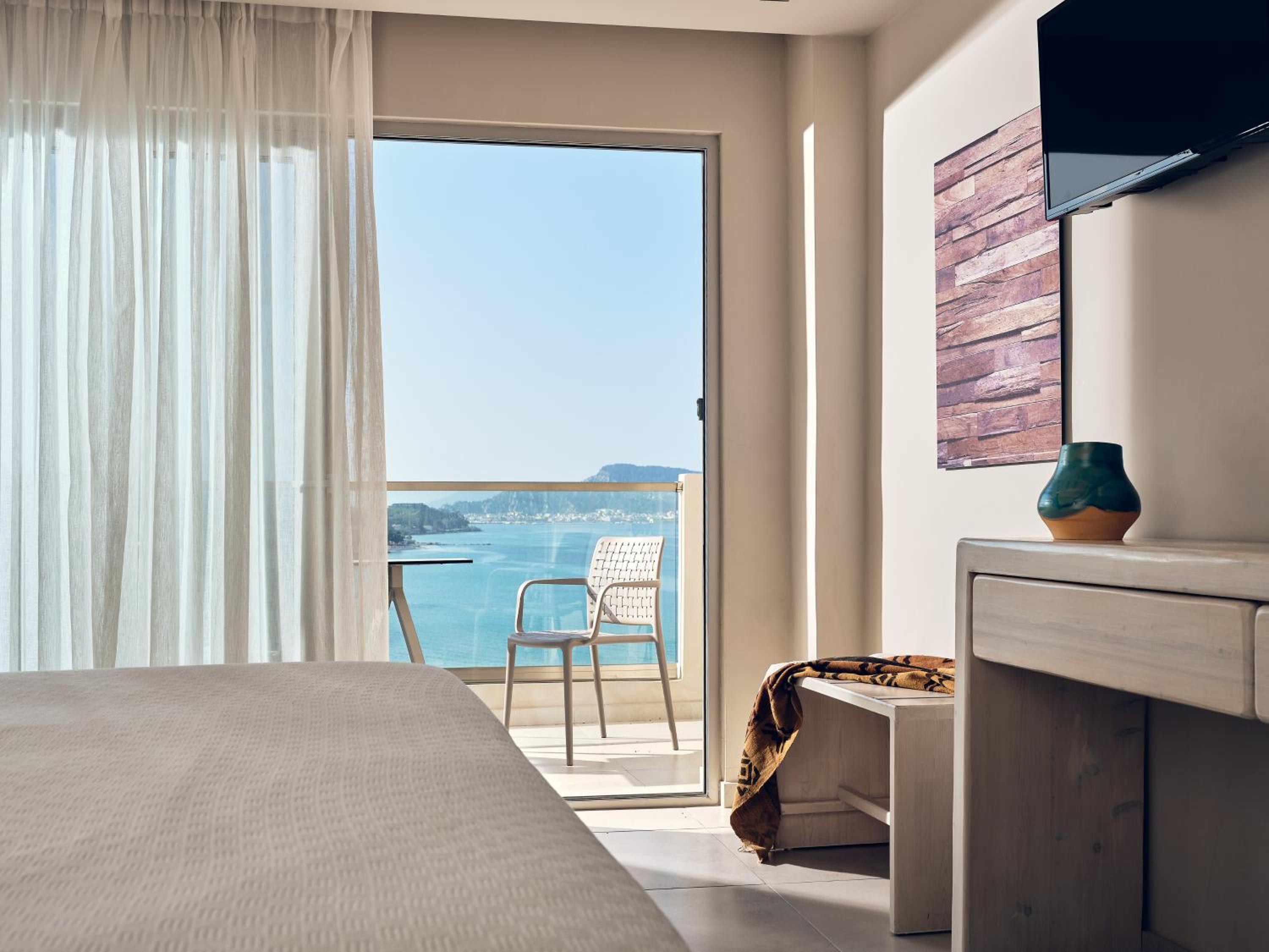 Enjoy the picturesque views from your balcony overlooking the garden or the Ionian Sea. Relax by the poolside with a refreshing drink from the snack bar.