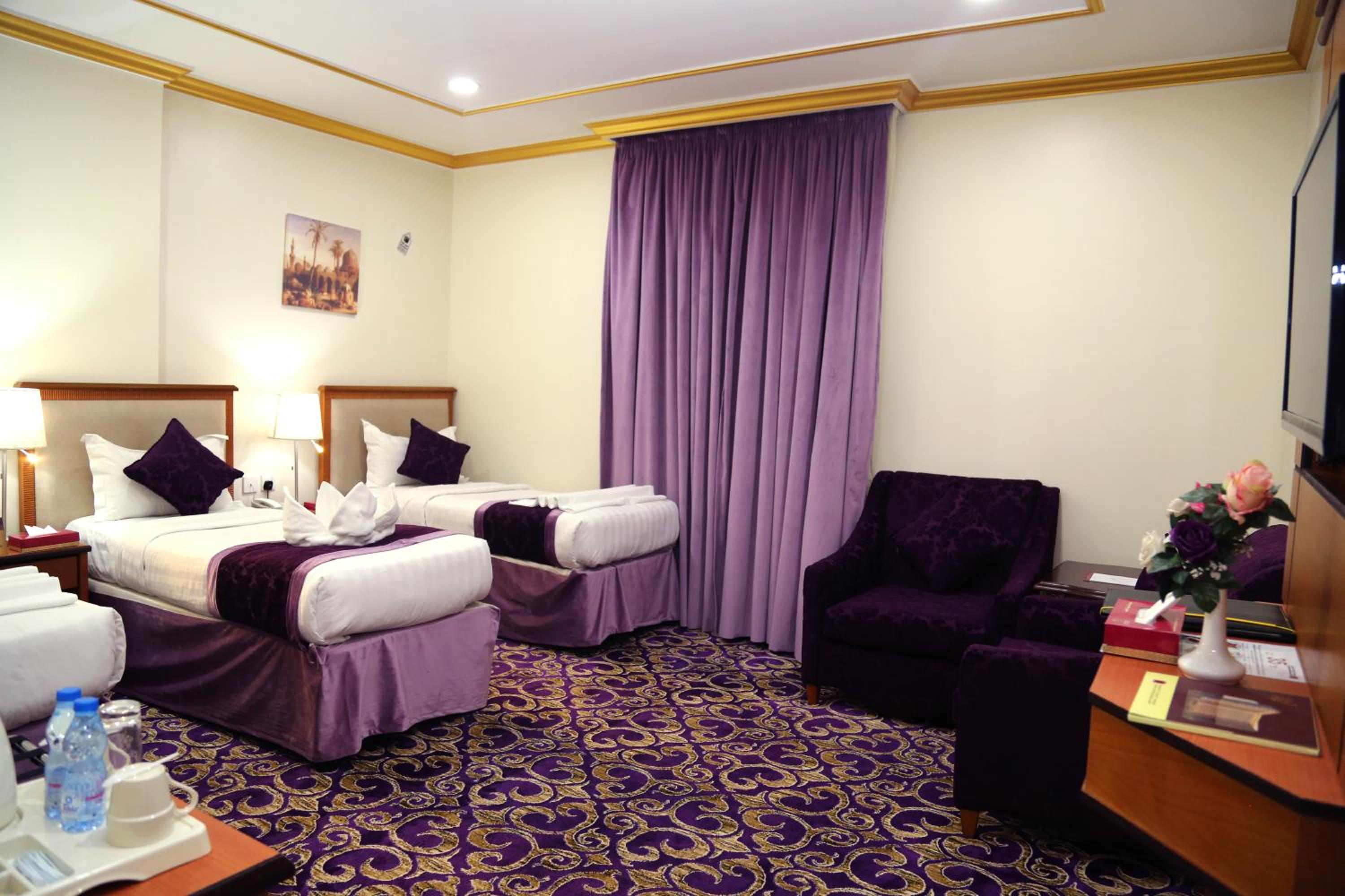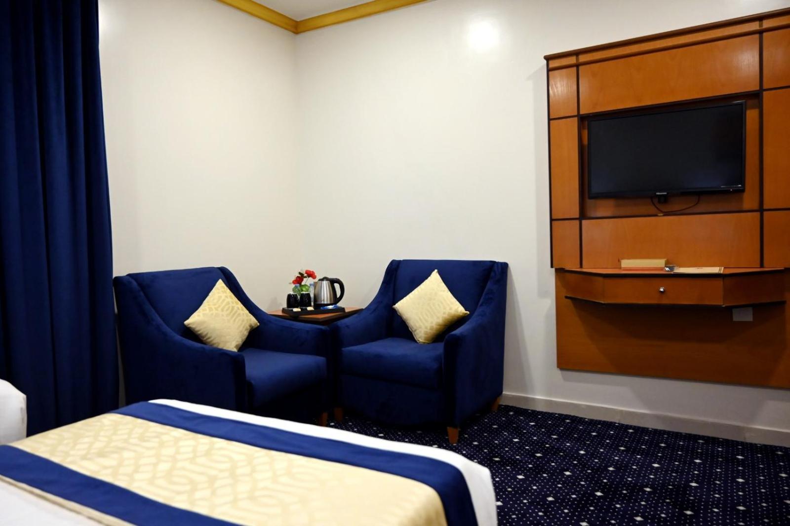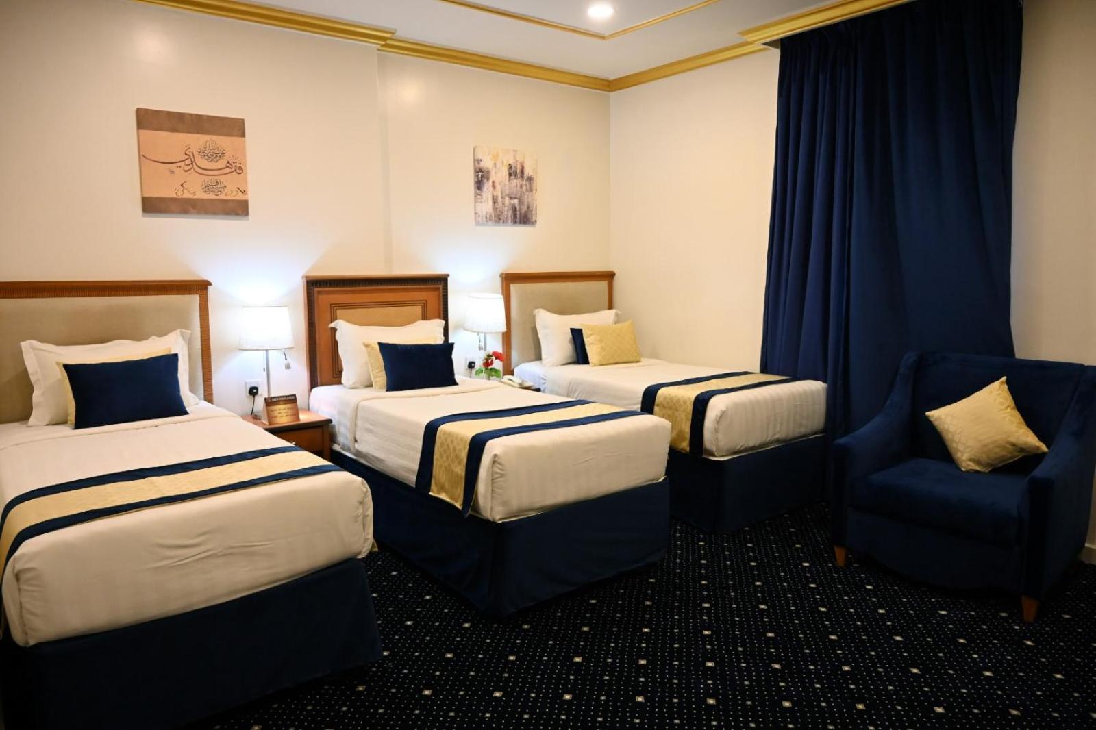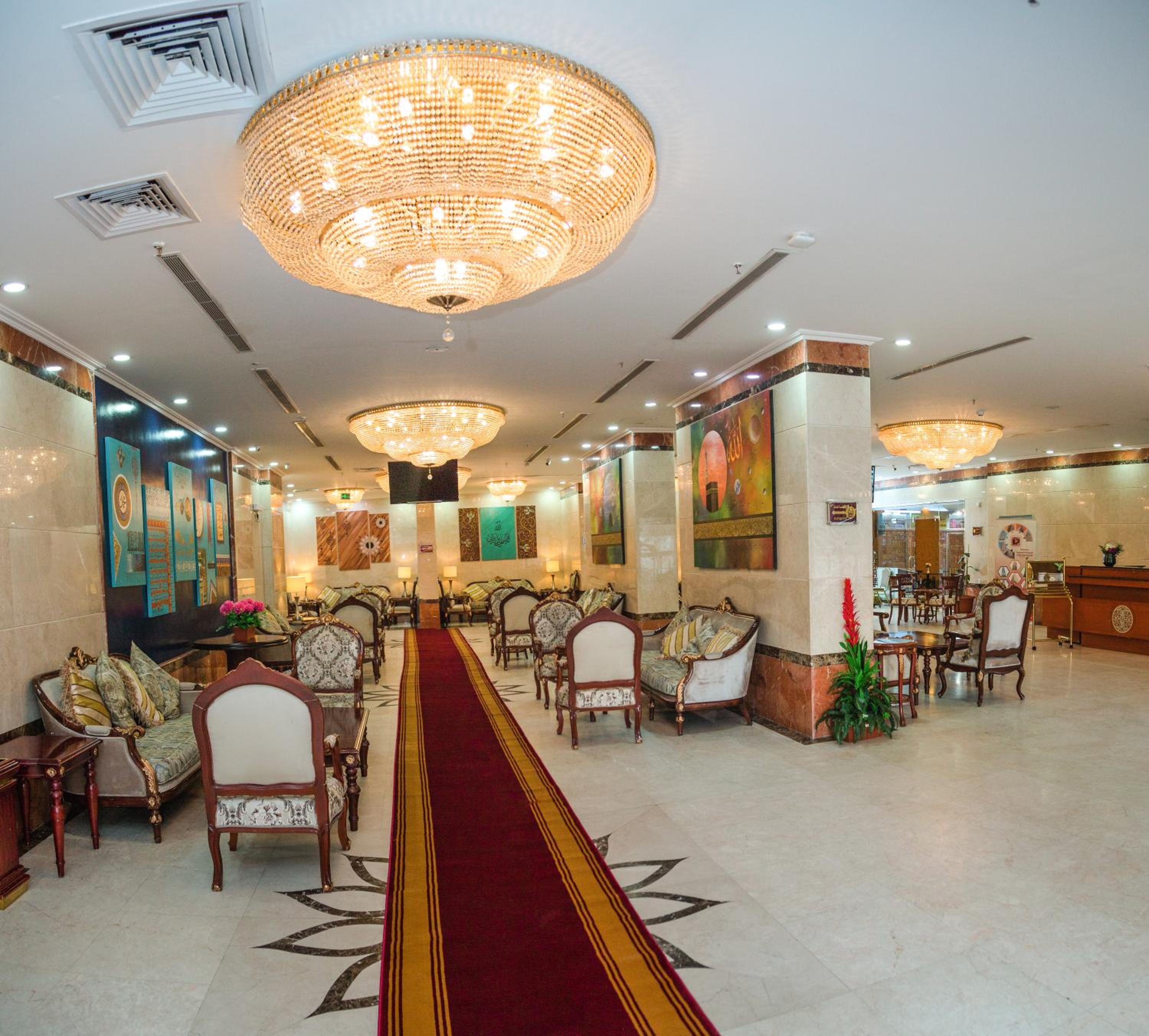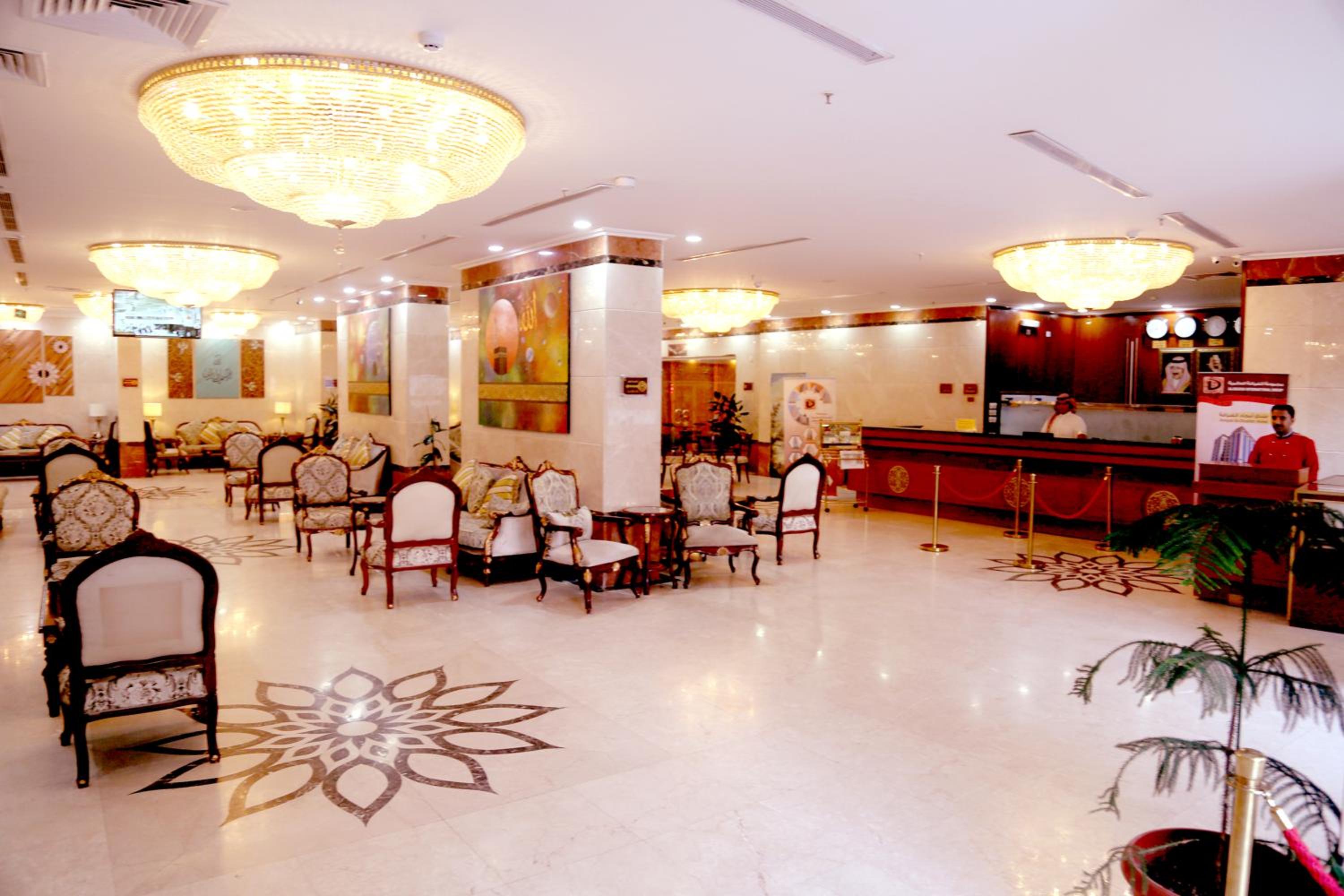 Experience luxury and convenience at our hotel in Tayseer district near King Abdullah Holy Mosque. Enjoy free WiFi, on-site restaurant, and 24-hour room service in each air-conditioned room. Featuring a flat-screen TV and well-equipped kitchenette, our rooms offer comfort and relaxation. Take advantage of our free shuttle service, 24-hour front desk, and on-site shops. With city views and satellite channels, your stay with us will be unforgettable. Book now for a memorable experience at Amjad Al Diyafah Hotel.