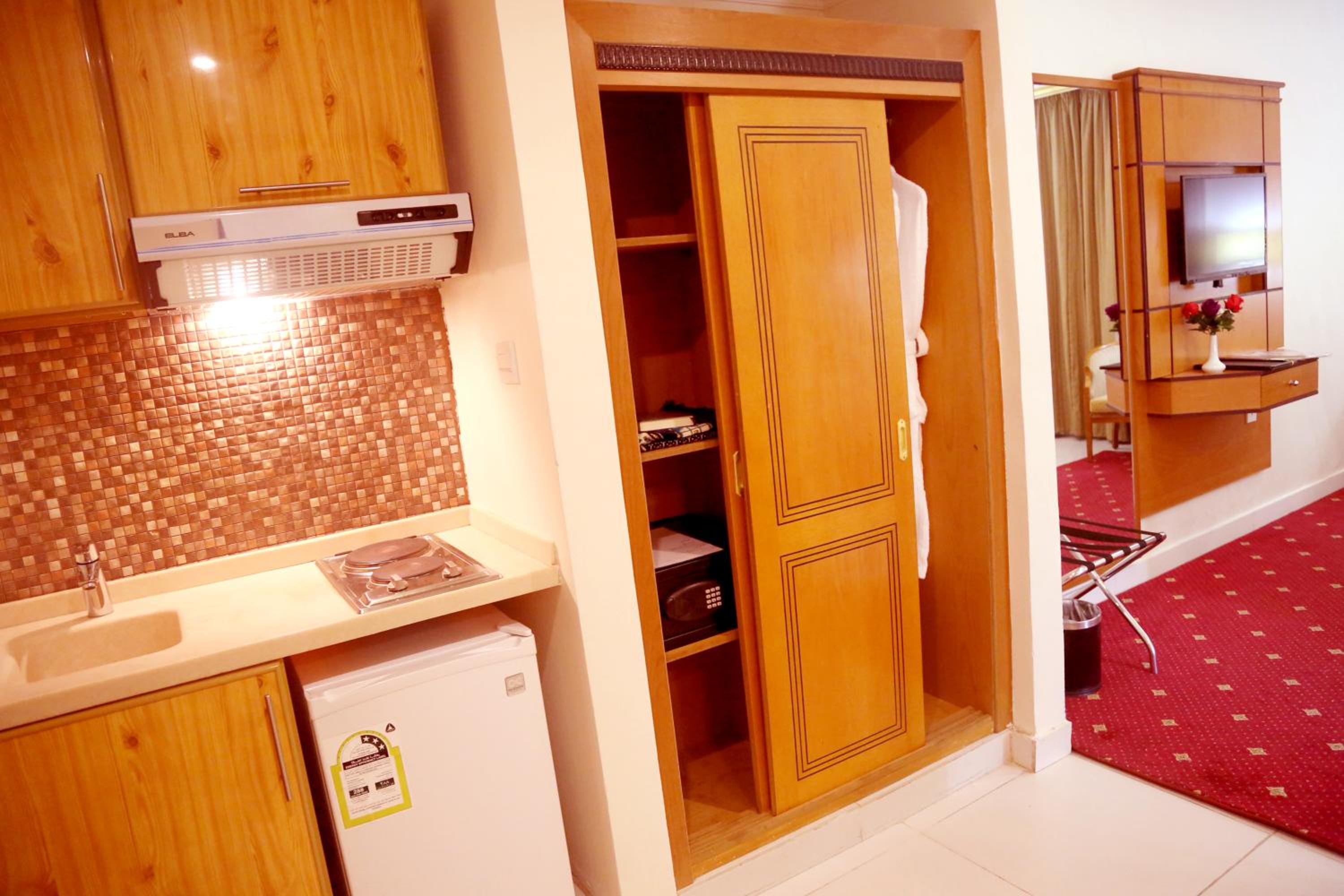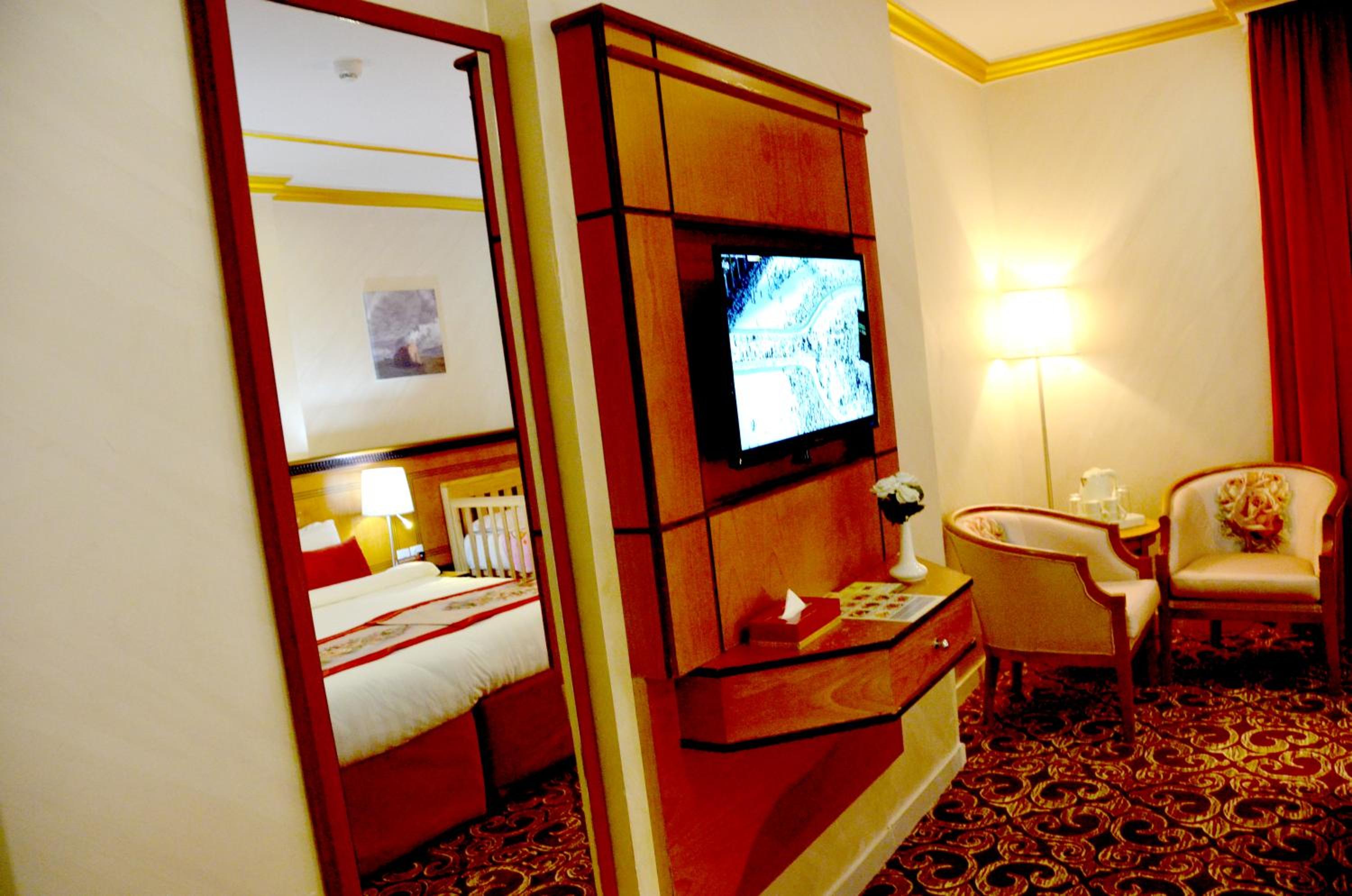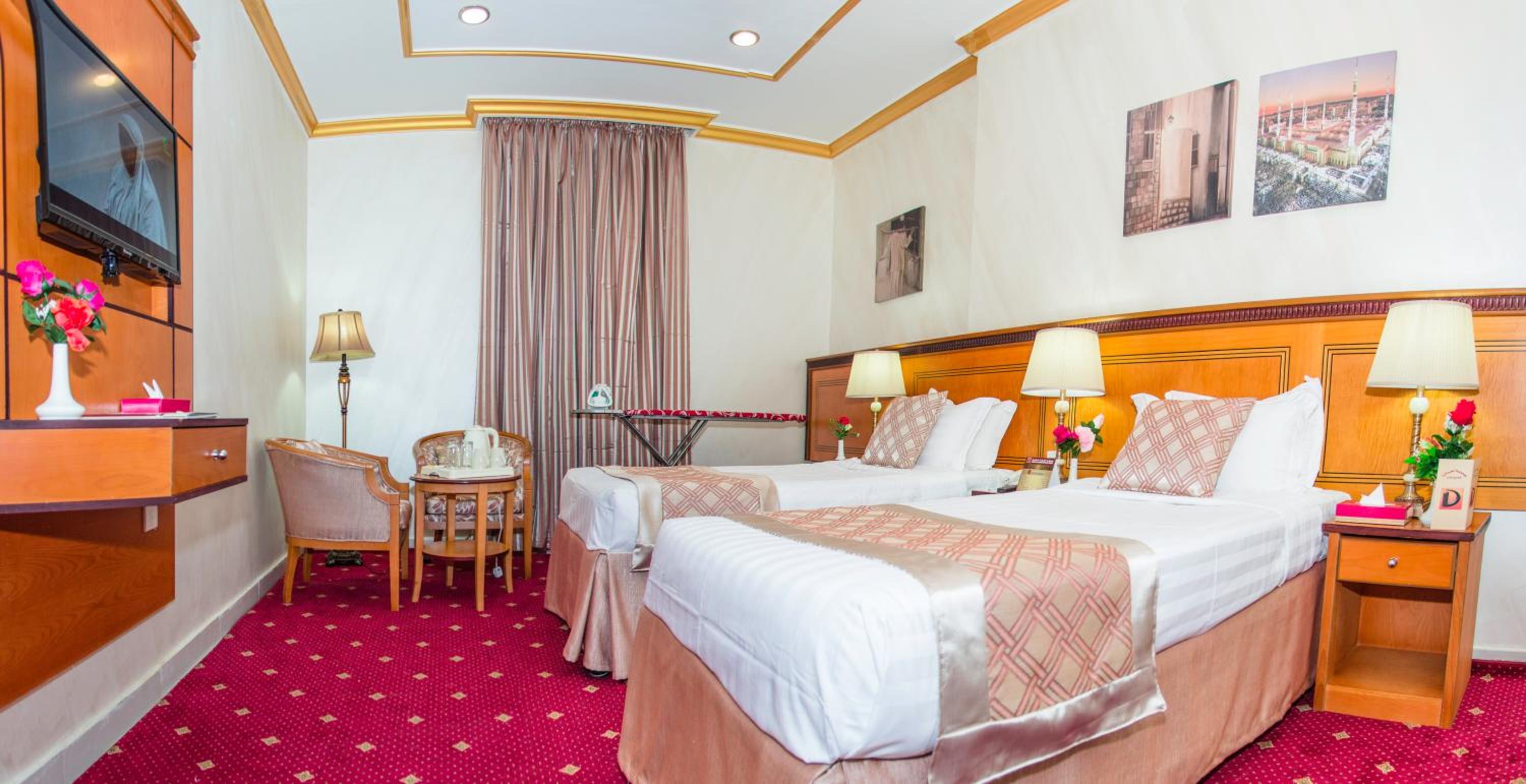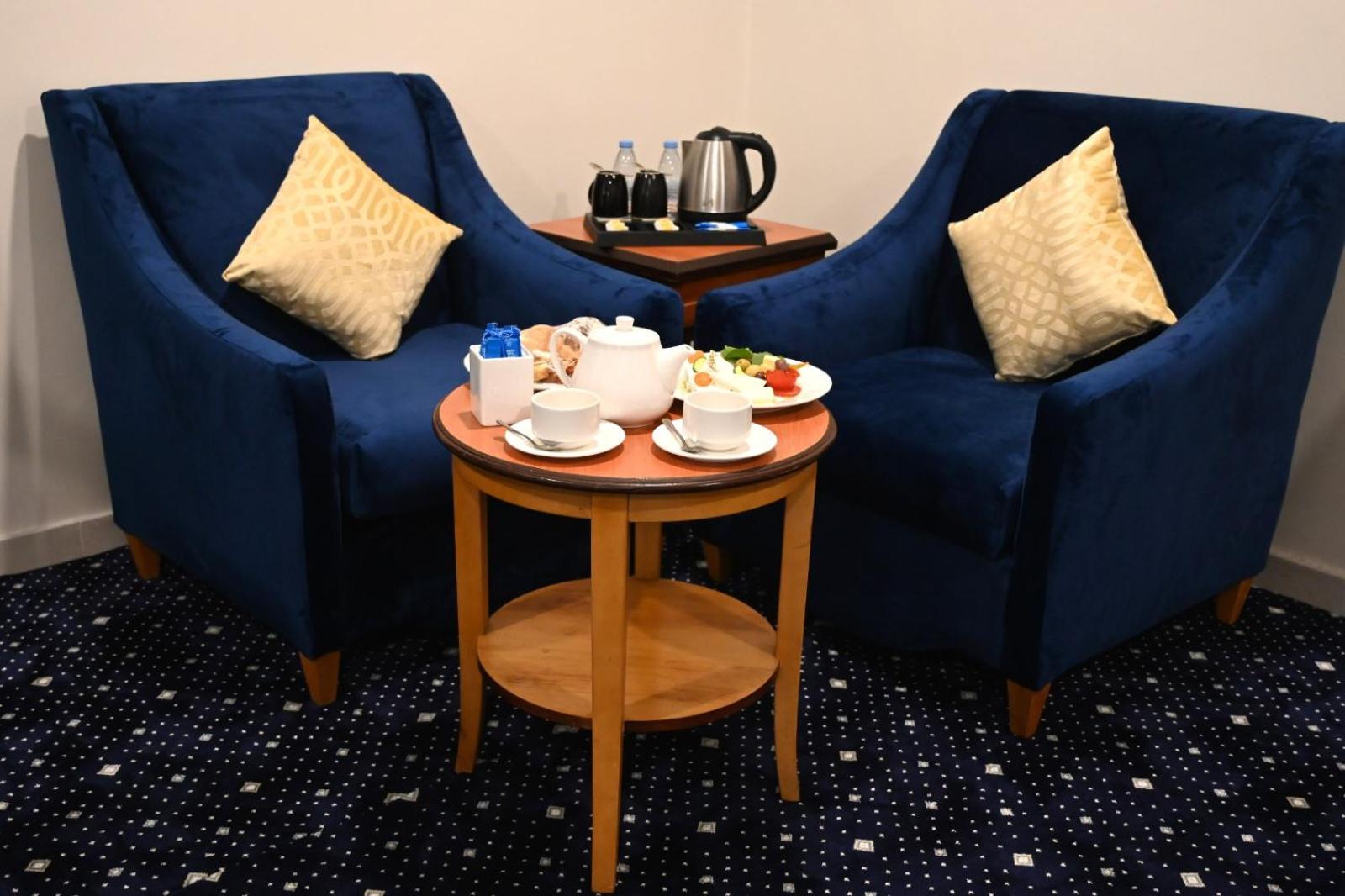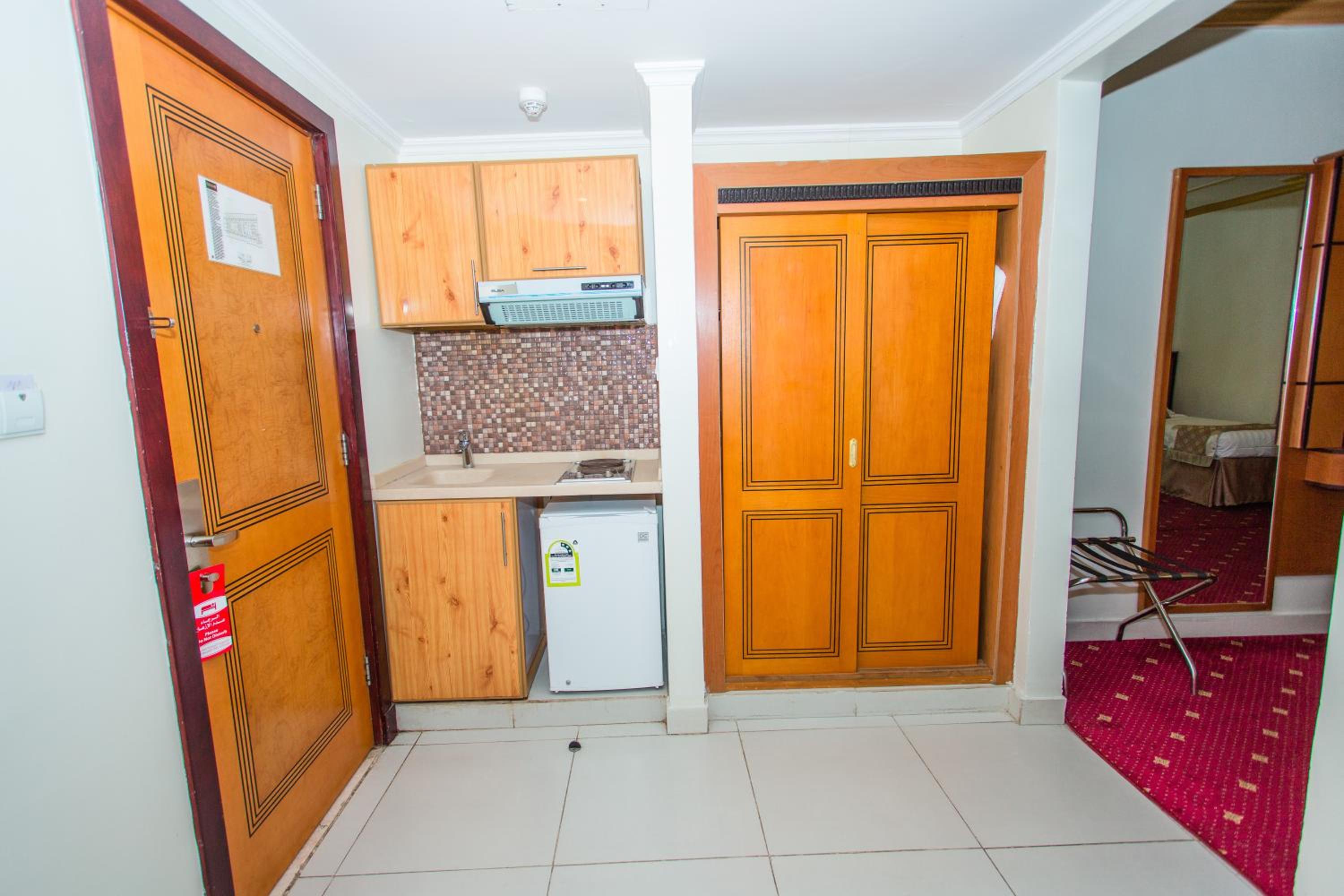 Experience luxury and convenience at our hotel in Tayseer district near King Abdullah Holy Mosque. Enjoy free WiFi, on-site restaurant, and 24-hour room service in each air-conditioned room. Featuring a flat-screen TV and well-equipped kitchenette, our rooms offer comfort and relaxation. Take advantage of our free shuttle service, 24-hour front desk, and on-site shops. With city views and satellite channels, your stay with us will be unforgettable. Book now for a memorable experience at Amjad Al Diyafah Hotel.