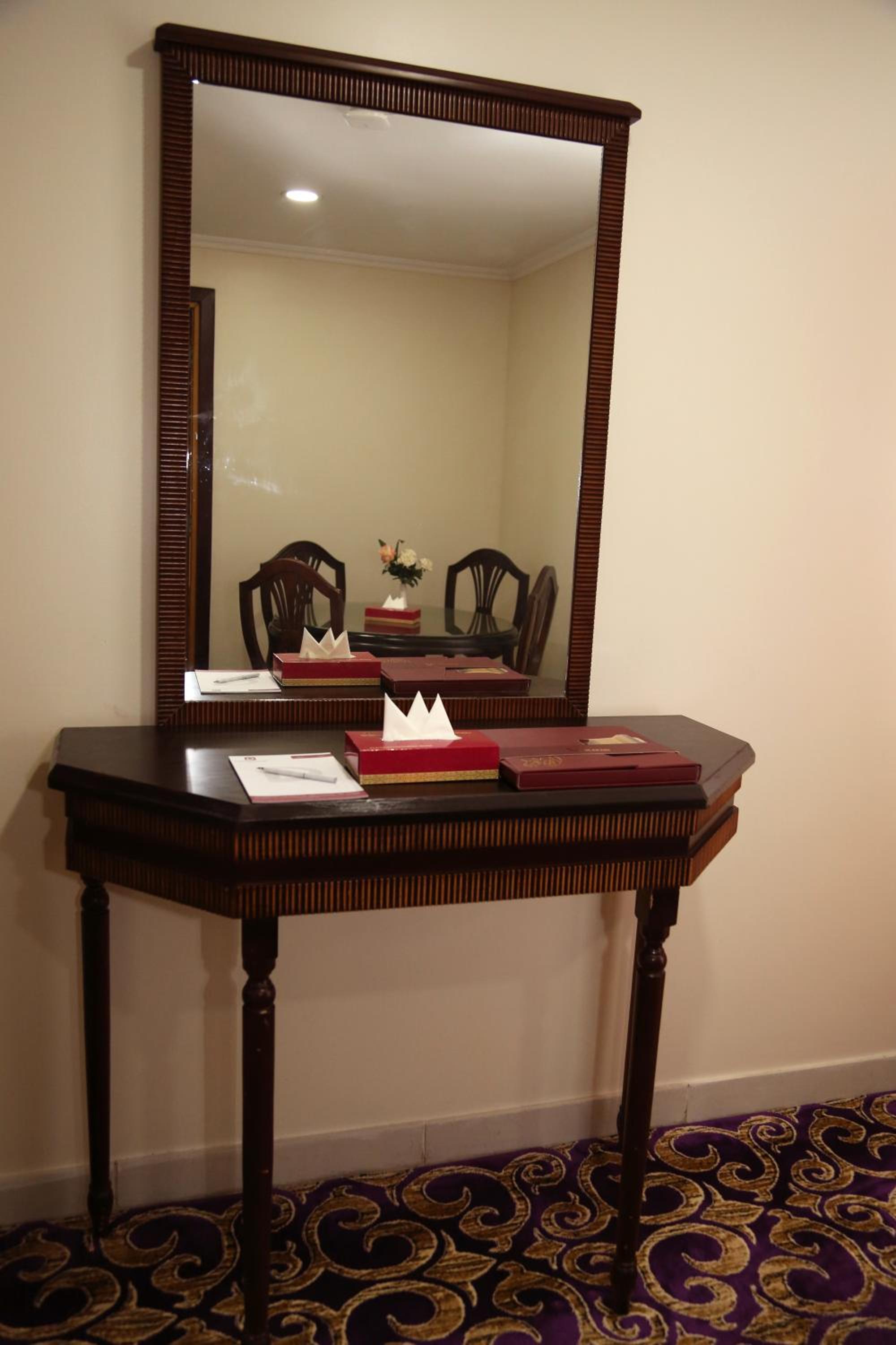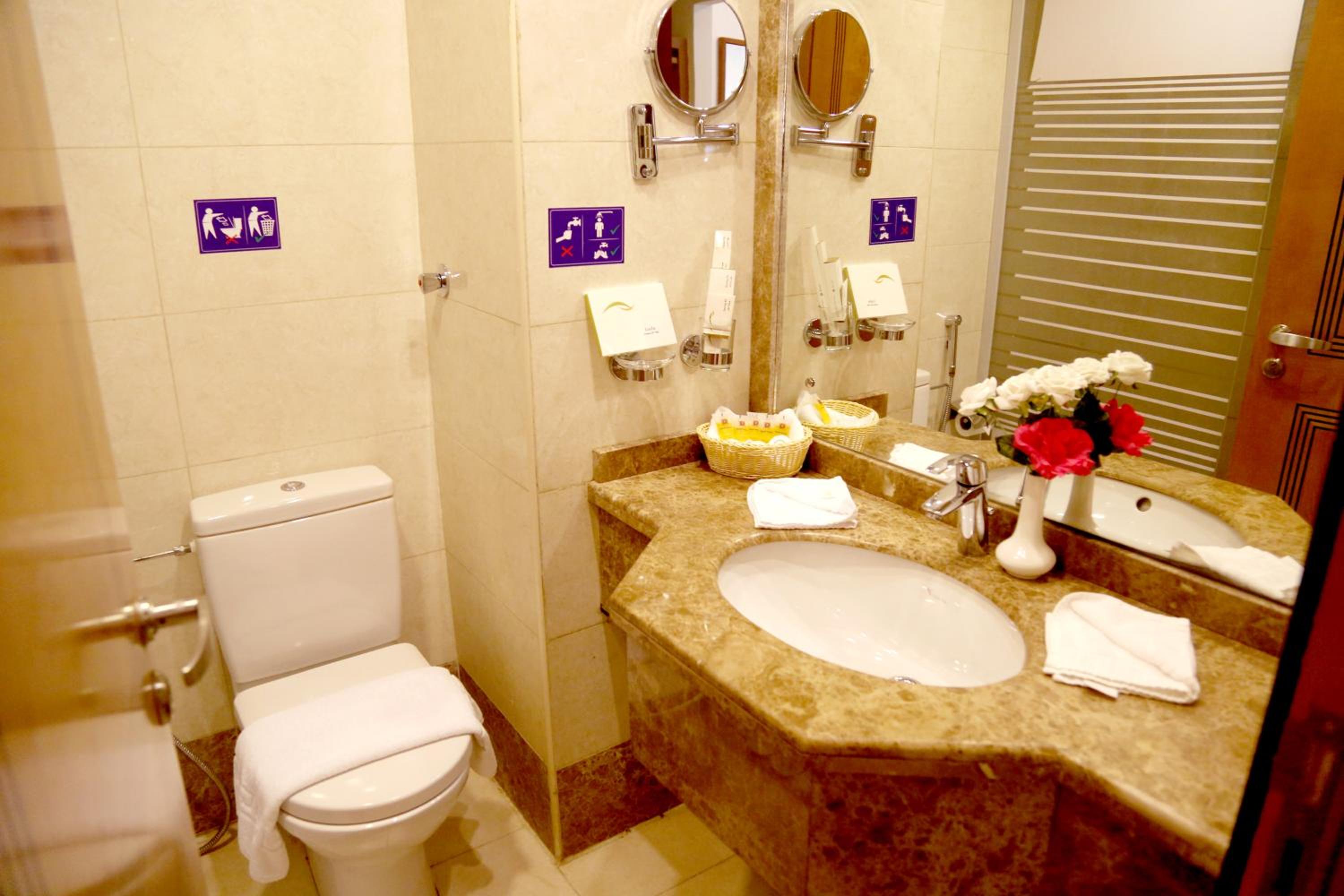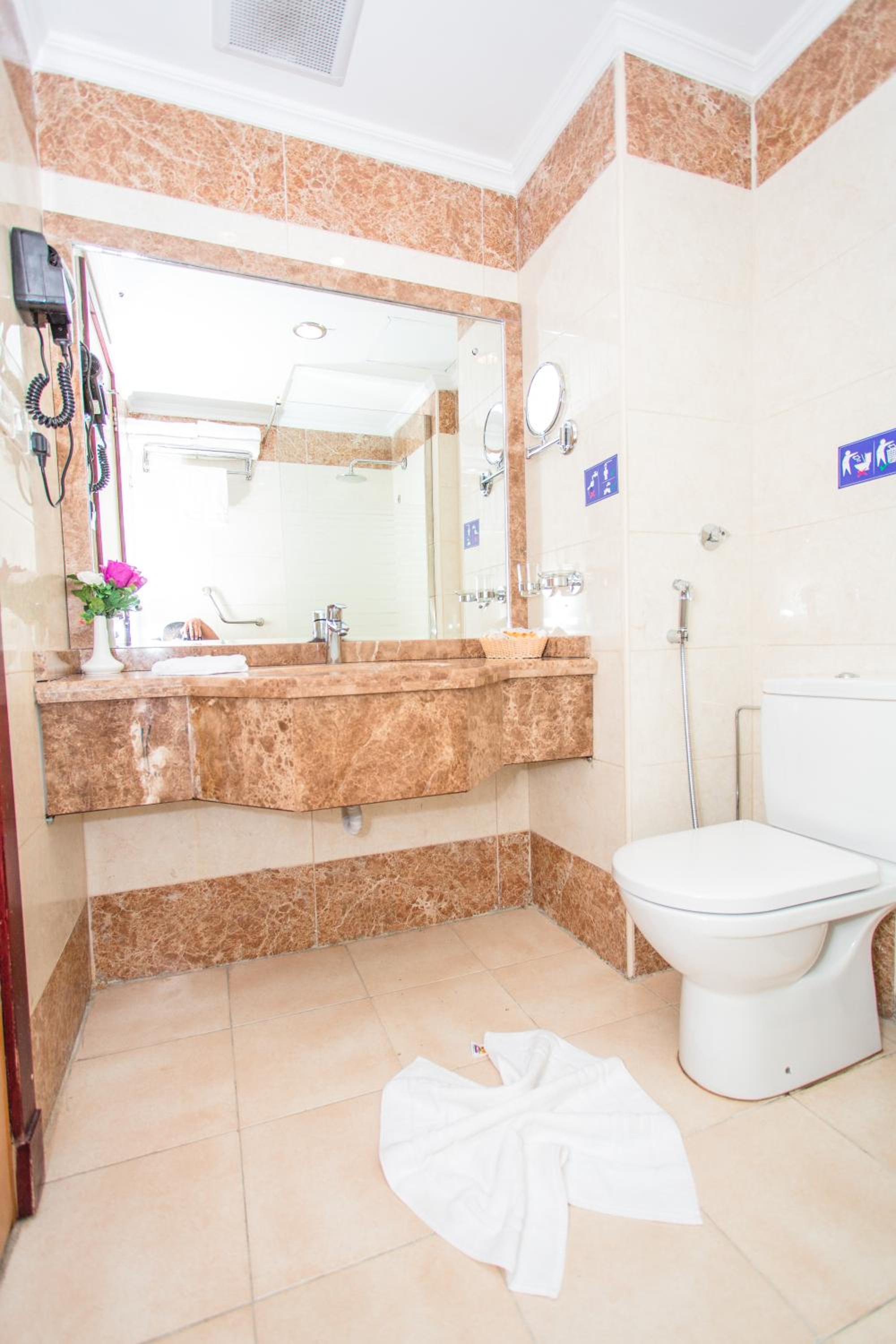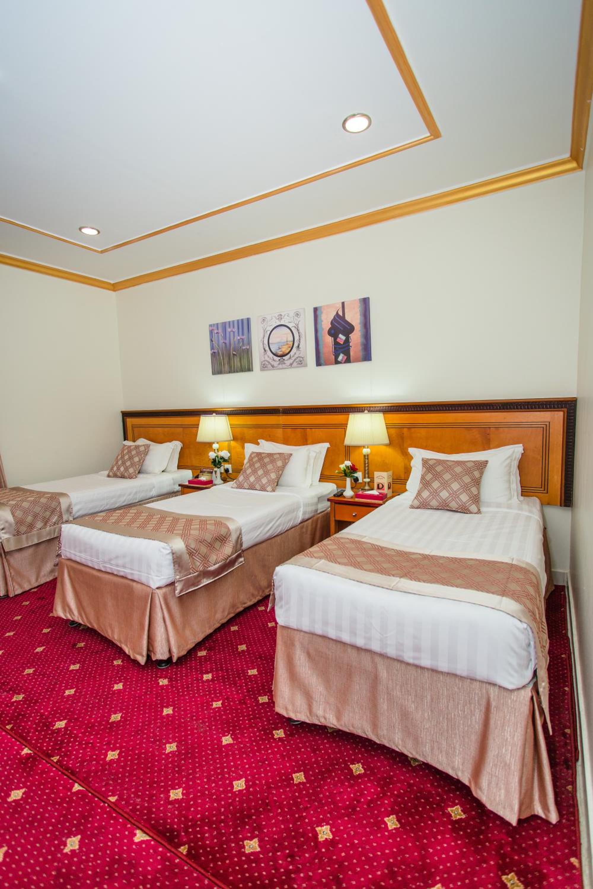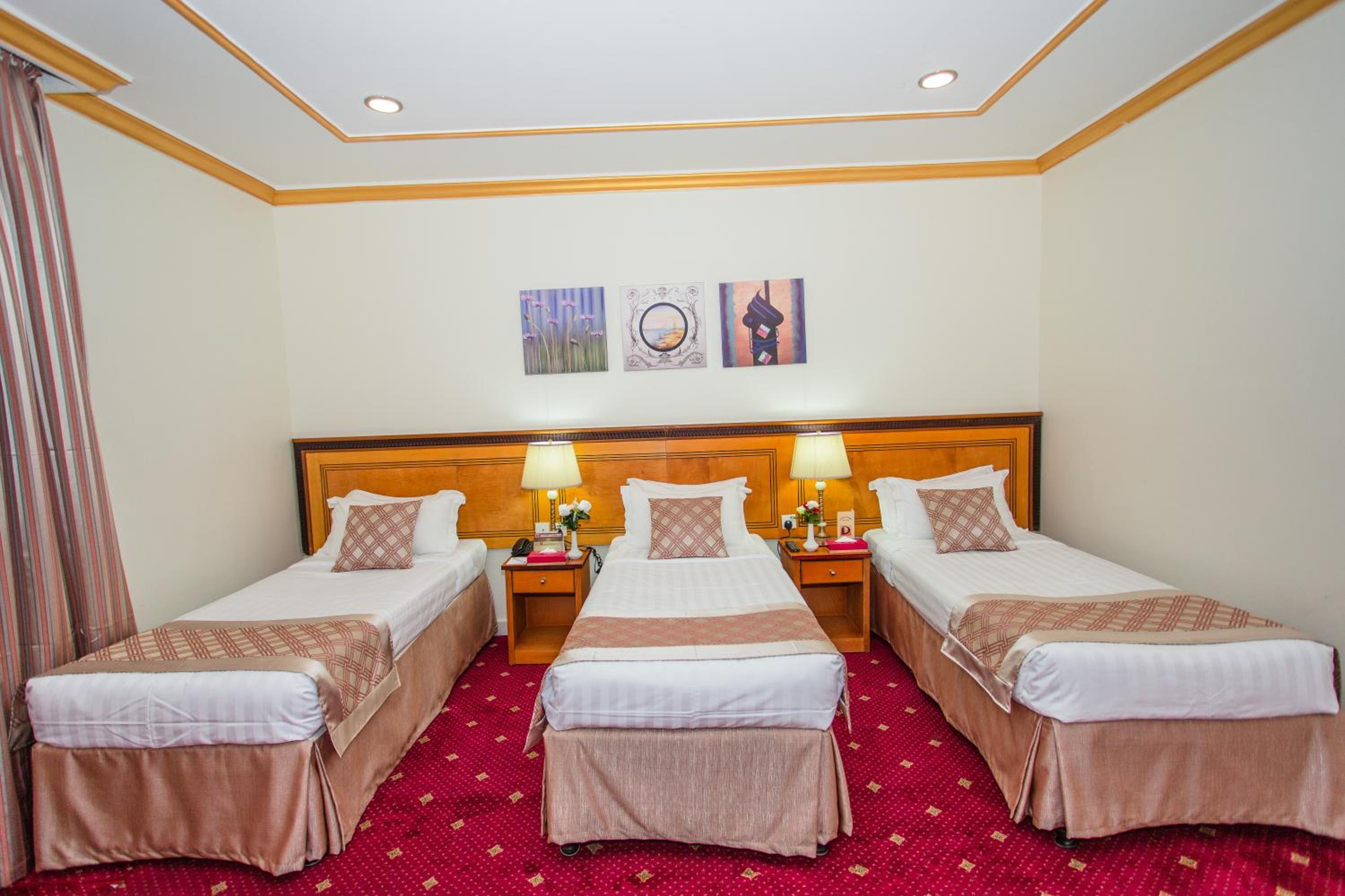 Experience luxury and convenience at our hotel in Tayseer district near King Abdullah Holy Mosque. Enjoy free WiFi, on-site restaurant, and 24-hour room service in each air-conditioned room. Featuring a flat-screen TV and well-equipped kitchenette, our rooms offer comfort and relaxation. Take advantage of our free shuttle service, 24-hour front desk, and on-site shops. With city views and satellite channels, your stay with us will be unforgettable. Book now for a memorable experience at Amjad Al Diyafah Hotel.