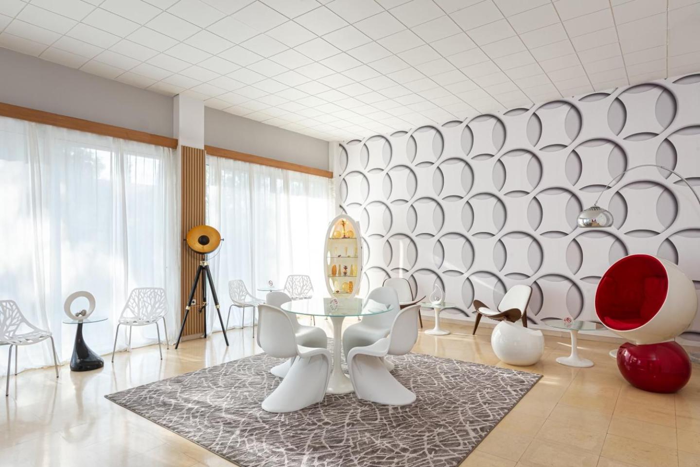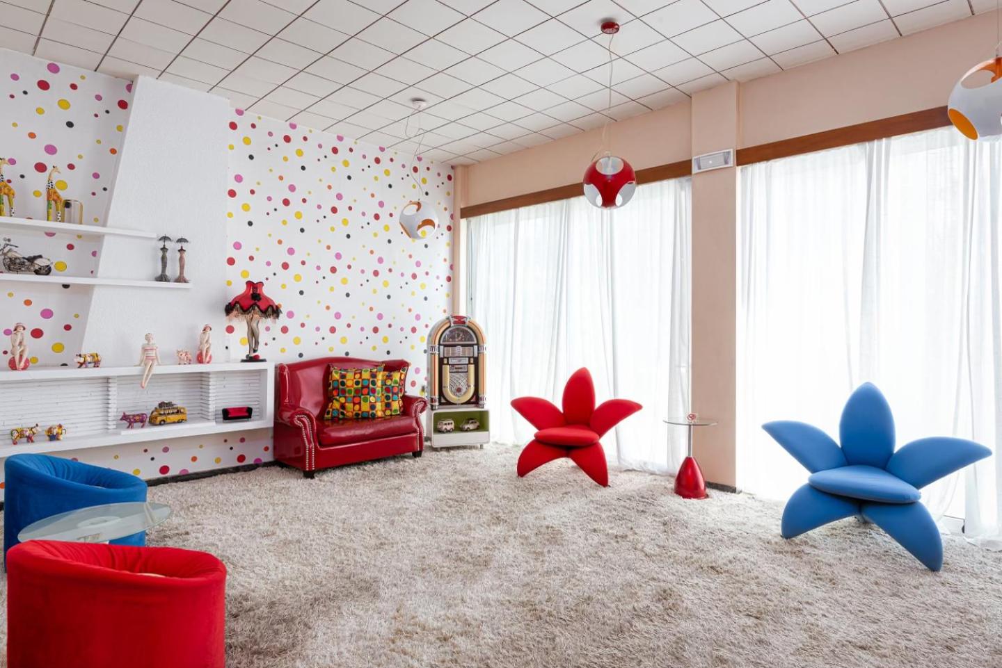 Experience the vibrant and artistic ambiance of the adults-only Mirada Hotel, featuring pop-art lounge areas and rooms adorned with Roy Lichtenstein's paintings and lively colors.