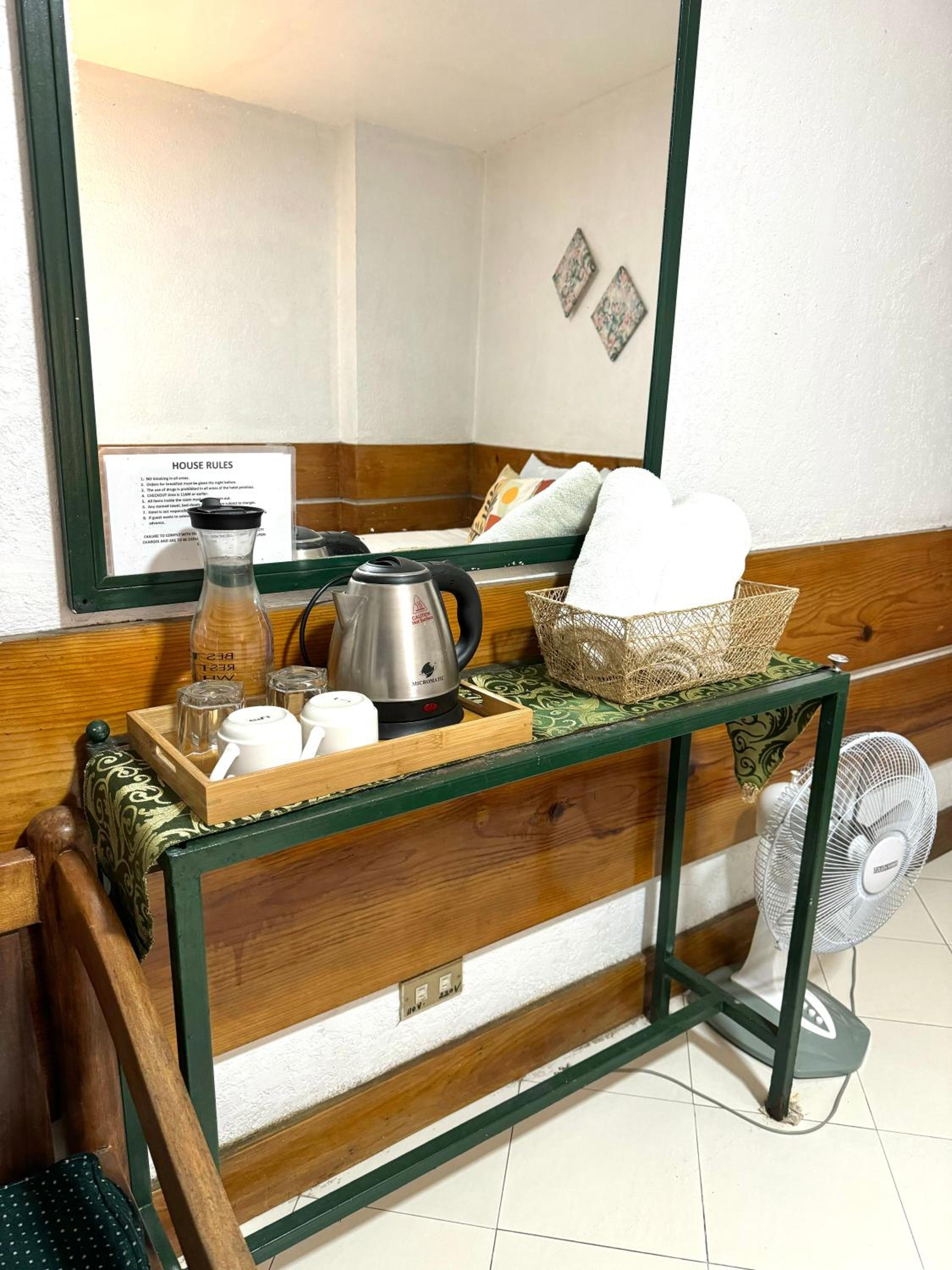 Water heater is not working. Standard room doesn't have kettle. I need to borrow from the reception every morning to have atleast instant coffee and even used for bathing for hot water. Microwave in the reception was also not working