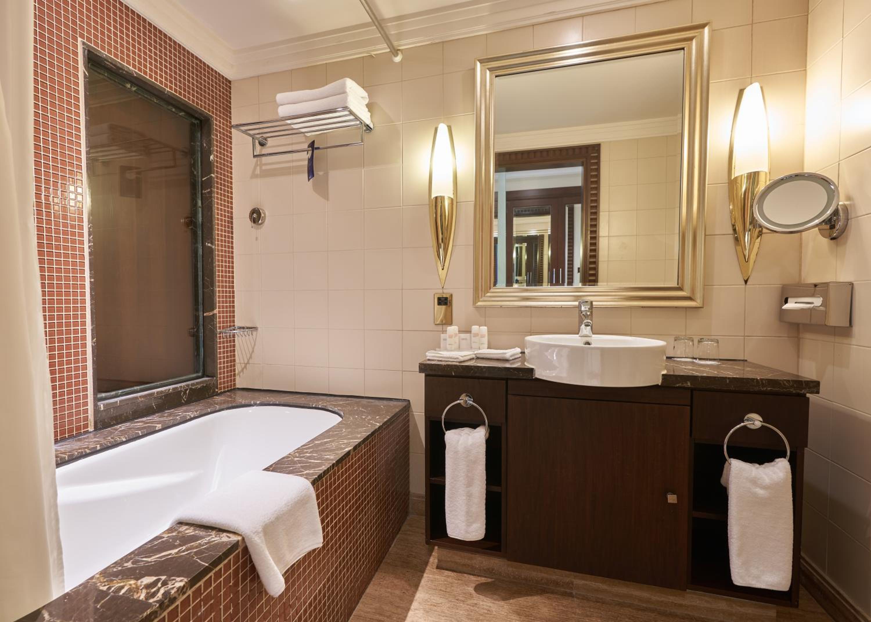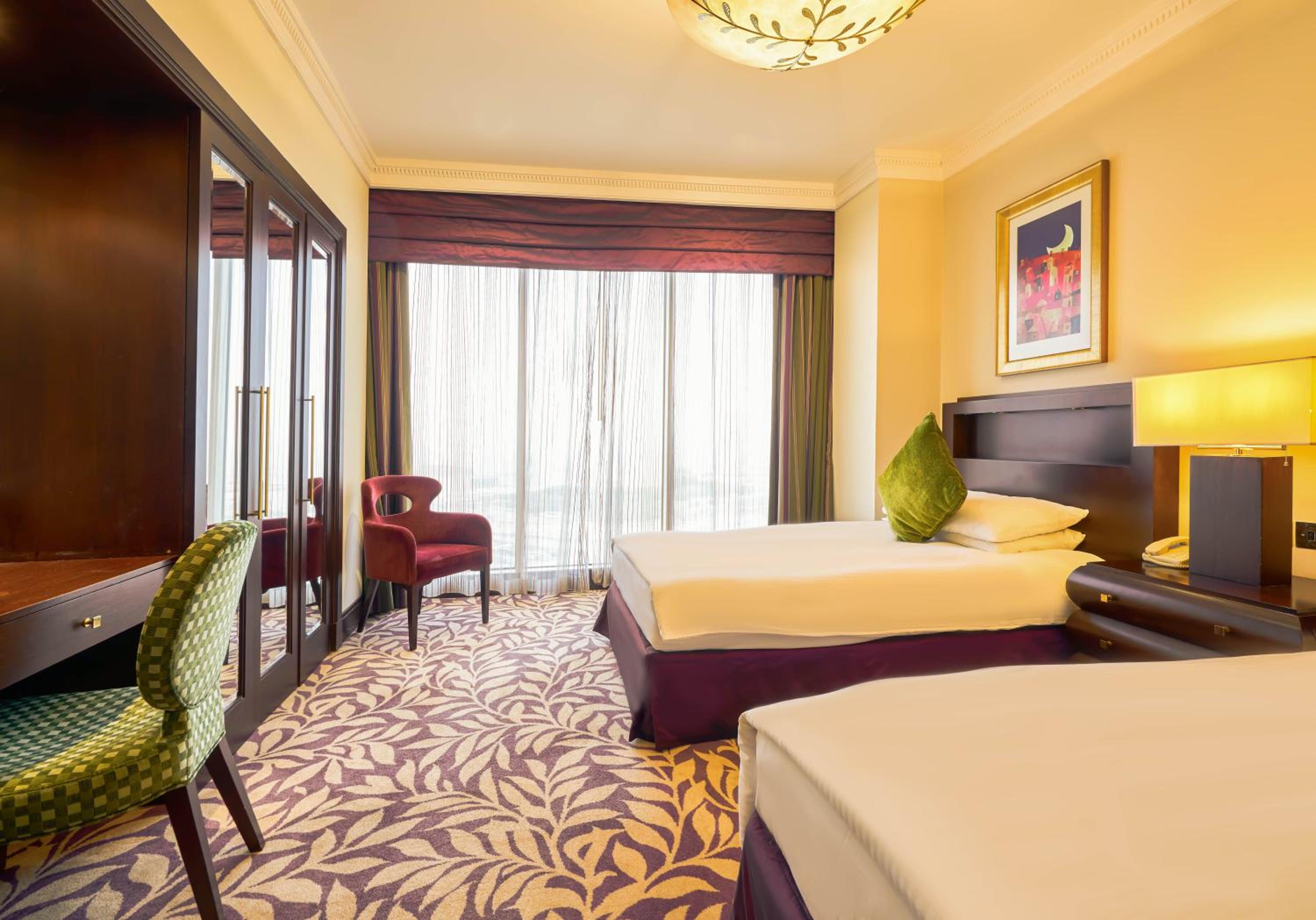 The Diplomat Radisson Blu Hotel Residence & Spa offers newly renovated 5-star accommodation in Manama's prestigious diplomatic area. The guest rooms feature air conditioning, flat-screen satellite TV, and ceiling-to-floor windows with breathtaking views of Manama and the Khawr al Qulau'ah.
