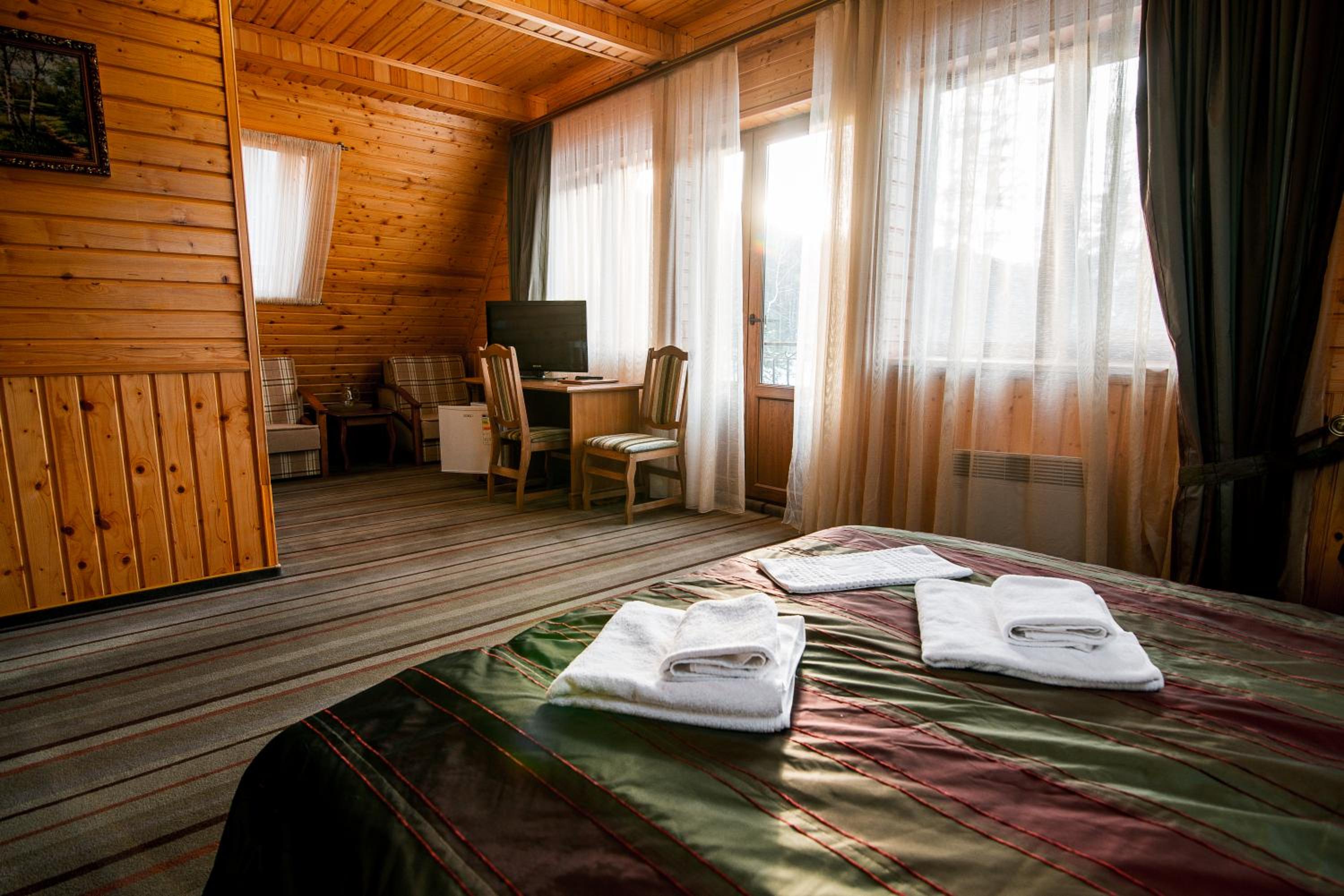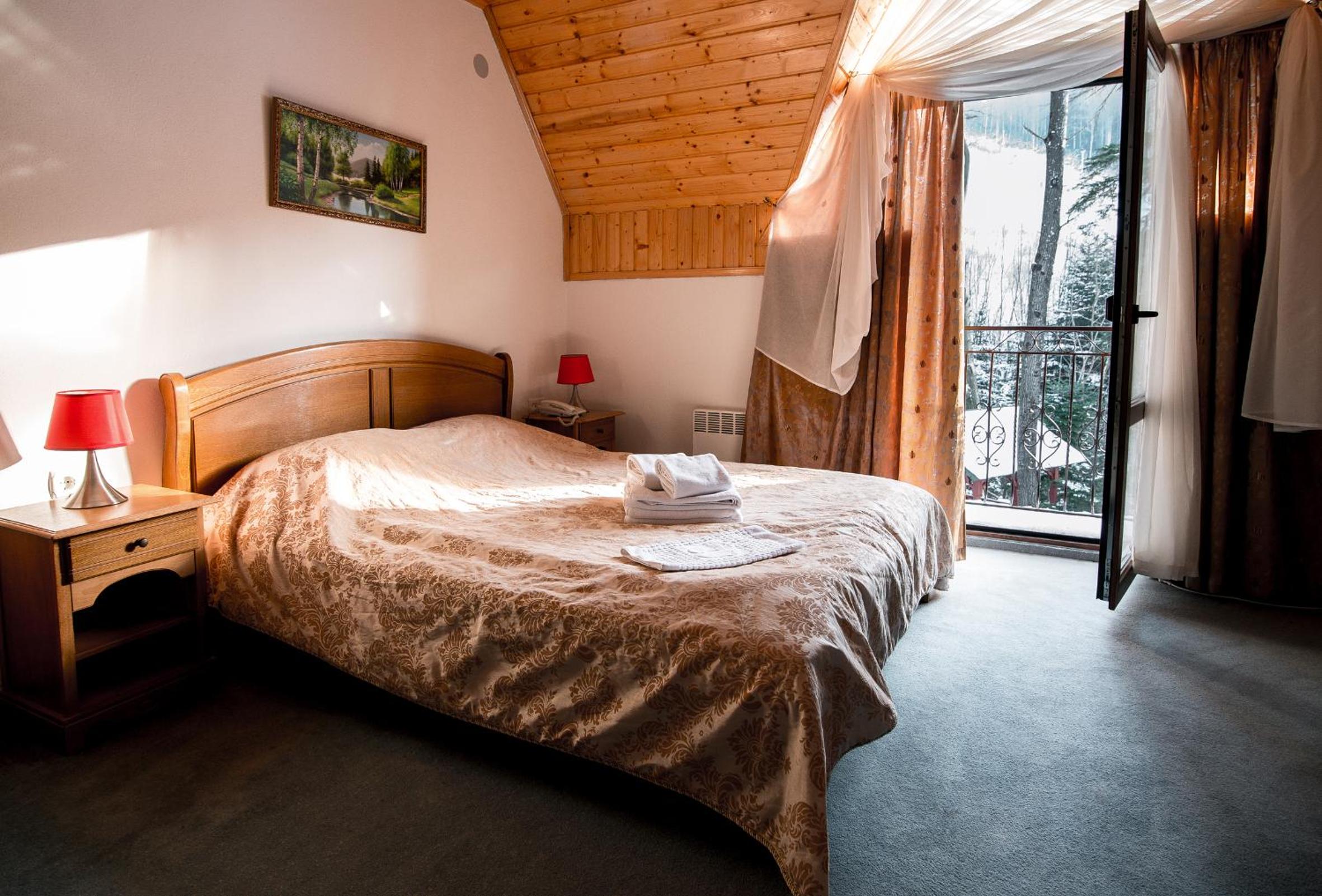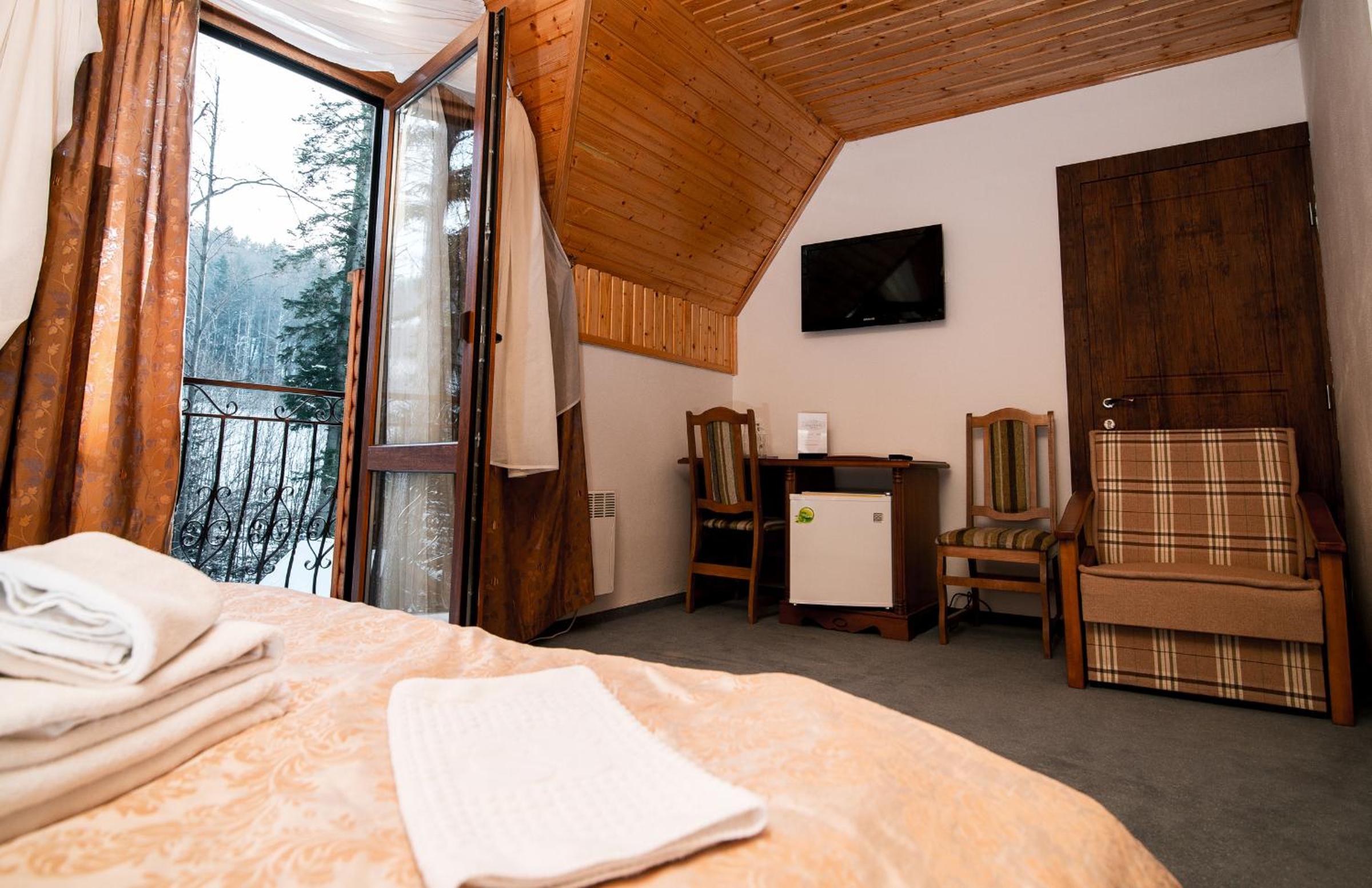 Были с семьей на Новый год. Все было прекрасно. Окна наших номеров выходили на горы. Вид - потрясающий. Владельцы - приятные и вежливые люди. Номера стандартные, очень тёплые. Рядом есть каток, подъёмник, ресторан, базарчик, небольшие магазинчики. Супермаркет, почта заправка нахожятся в соседнем посёлке. Подъезд к самому отелю во время снегопада затруднен, т.к. отель находится на высоте около 740 м над уровнем моря. Но ниже есть стоянка. Нам понравилось. Было классно!