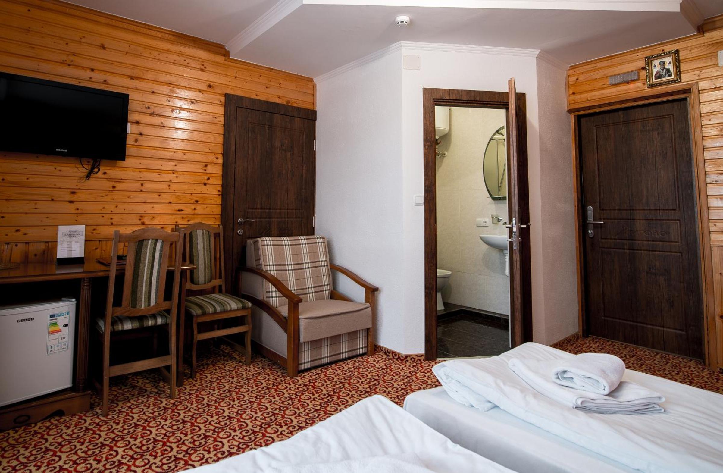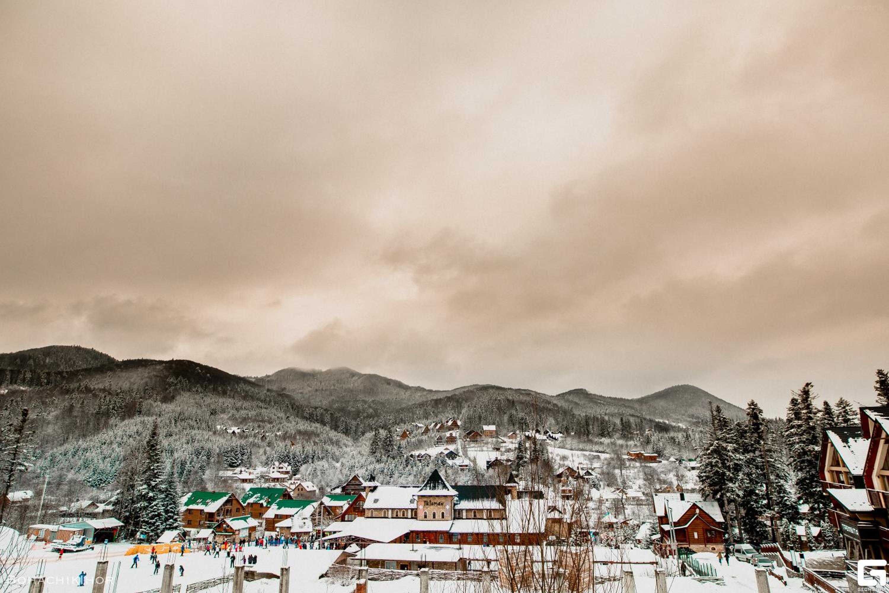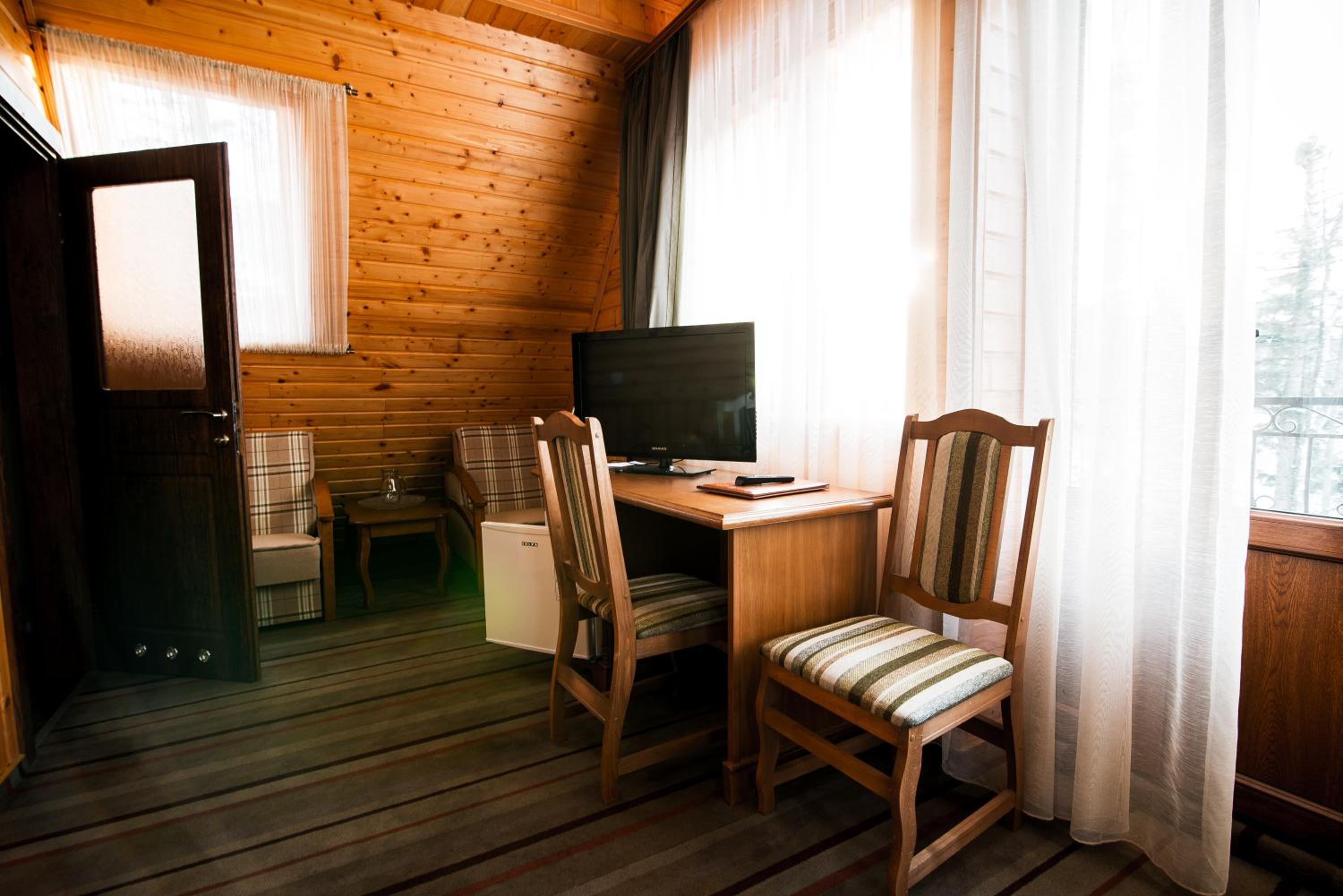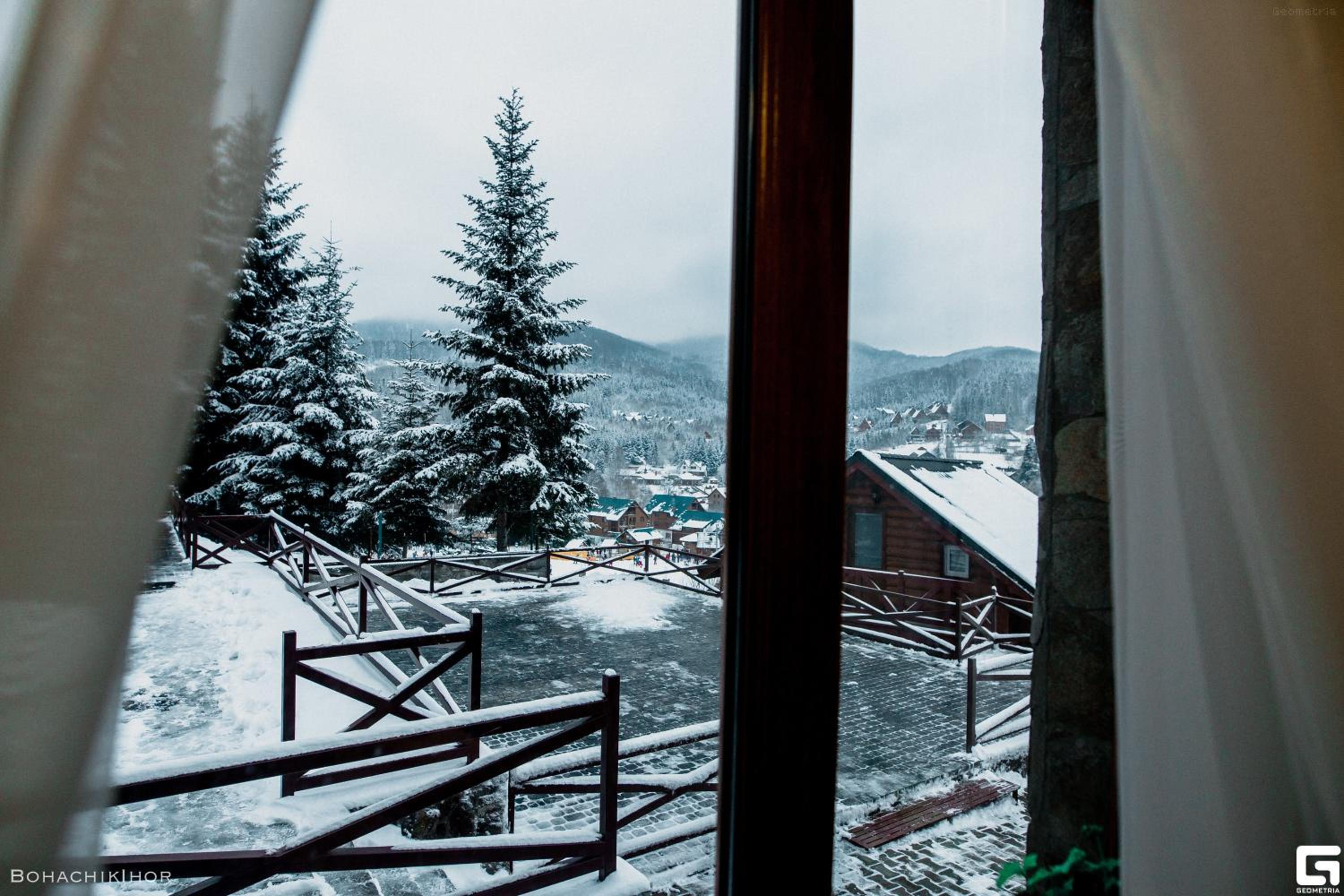 Были с семьей на Новый год. Все было прекрасно. Окна наших номеров выходили на горы. Вид - потрясающий. Владельцы - приятные и вежливые люди. Номера стандартные, очень тёплые. Рядом есть каток, подъёмник, ресторан, базарчик, небольшие магазинчики. Супермаркет, почта заправка нахожятся в соседнем посёлке. Подъезд к самому отелю во время снегопада затруднен, т.к. отель находится на высоте около 740 м над уровнем моря. Но ниже есть стоянка. Нам понравилось. Было классно!