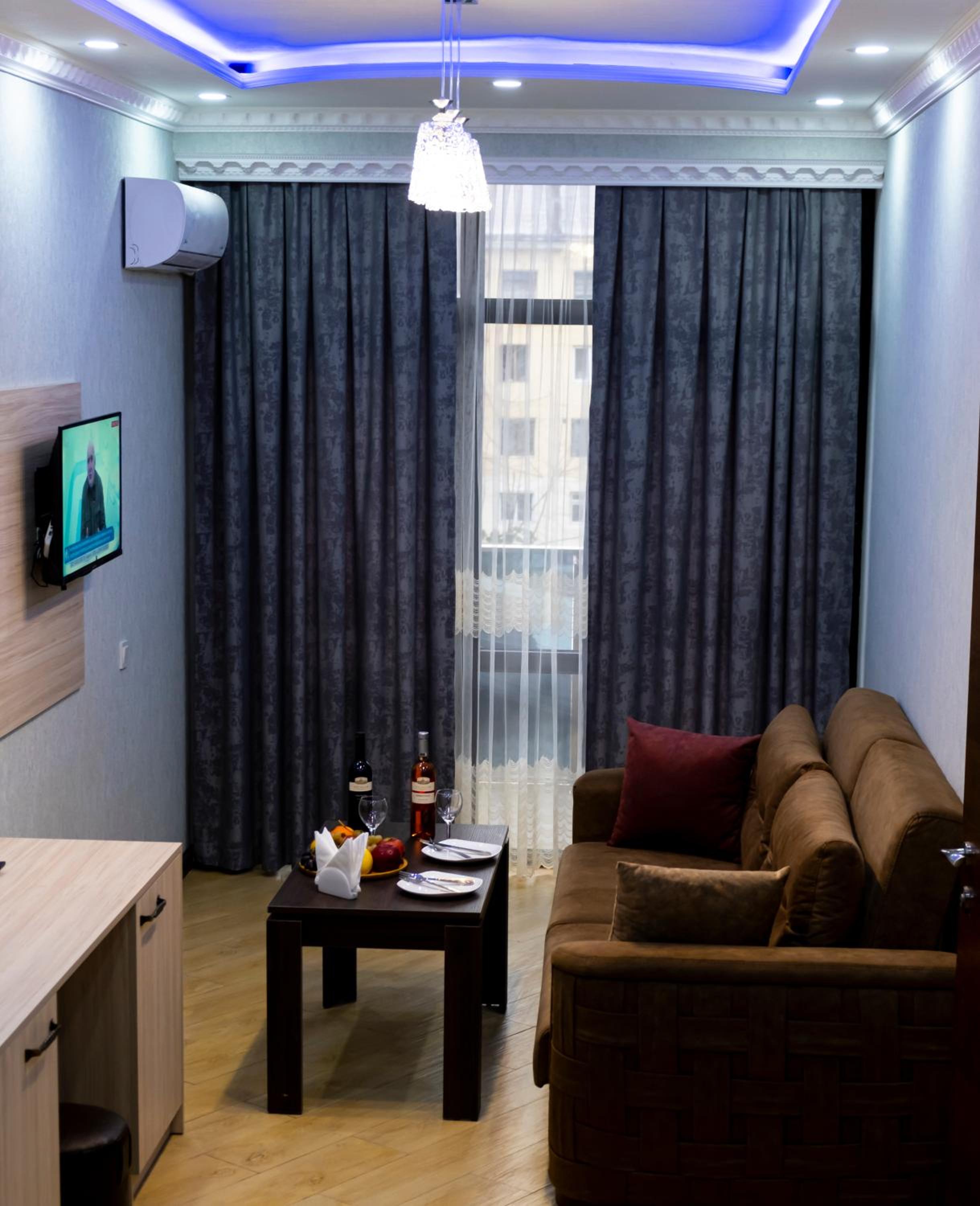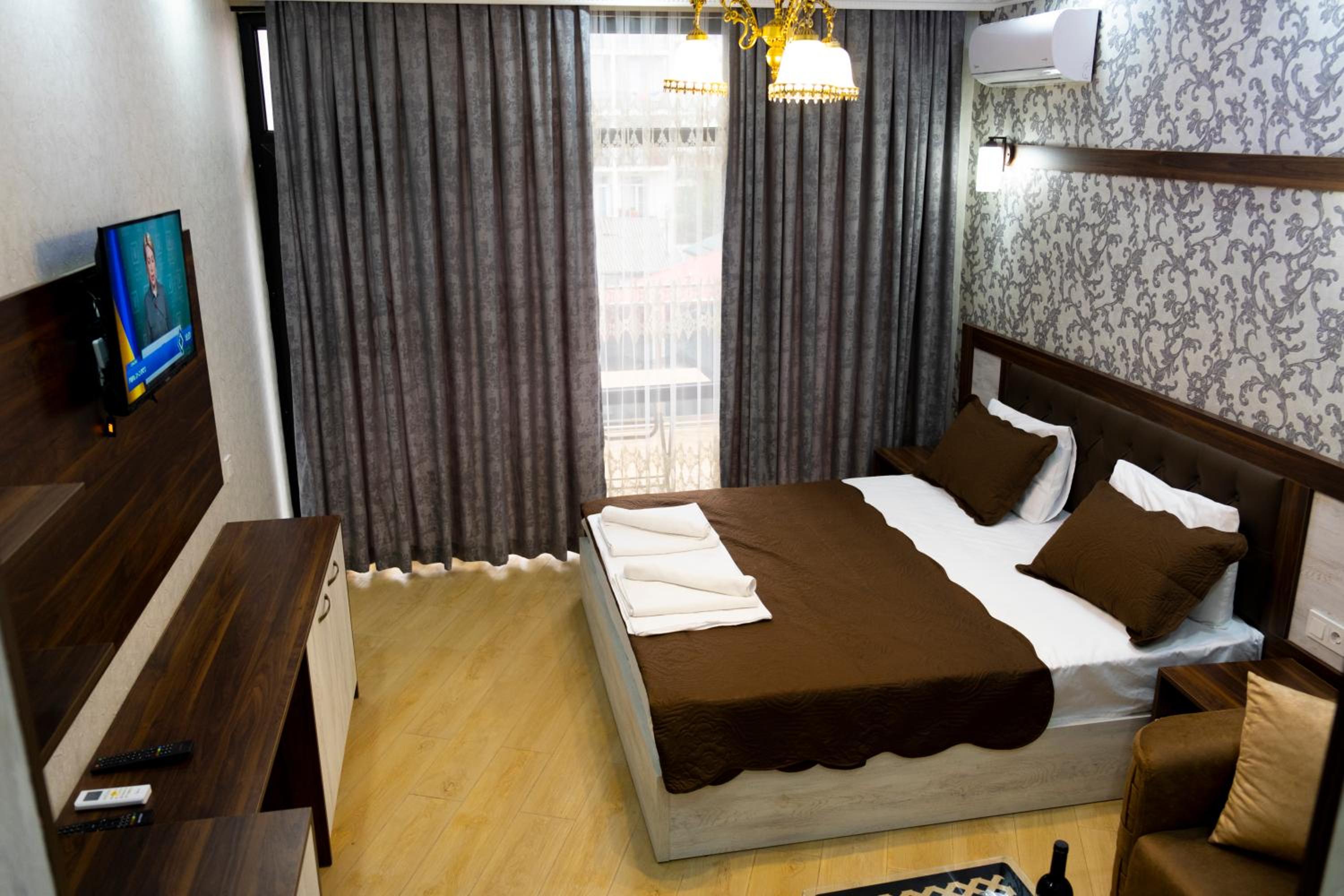 EMEG Hotel in Batumi offers stylish rooms with modern amenities, including air conditioning, flat-screen TVs, and free WiFi. Some rooms even boast stunning city views and private balconies for a truly indulgent stay.