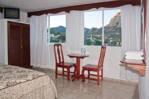 Experience breathtaking views of La Peña de Bernal and immerse yourself in Querétaro's history through in-room art photos at Hotel Don Porfirio.