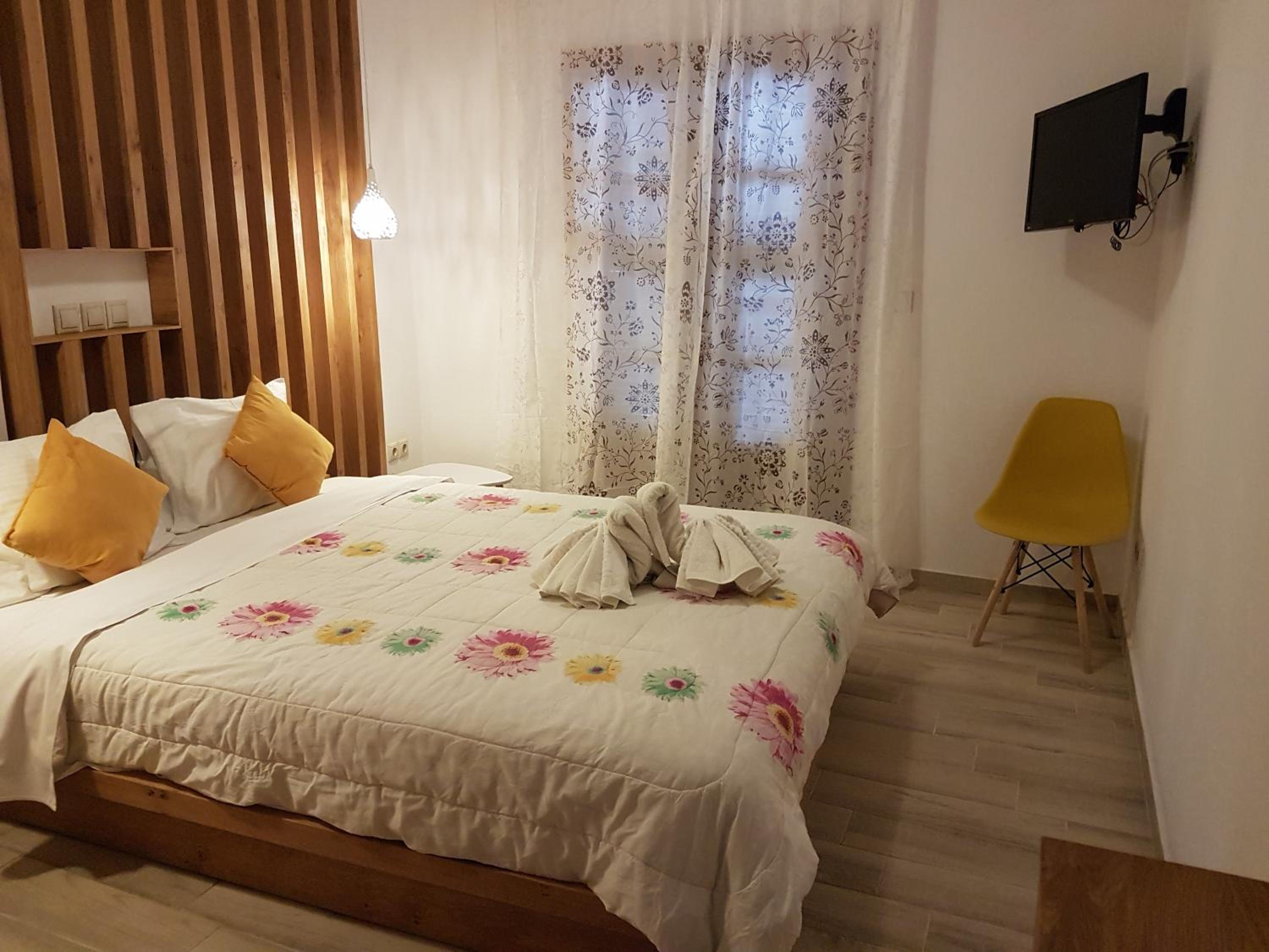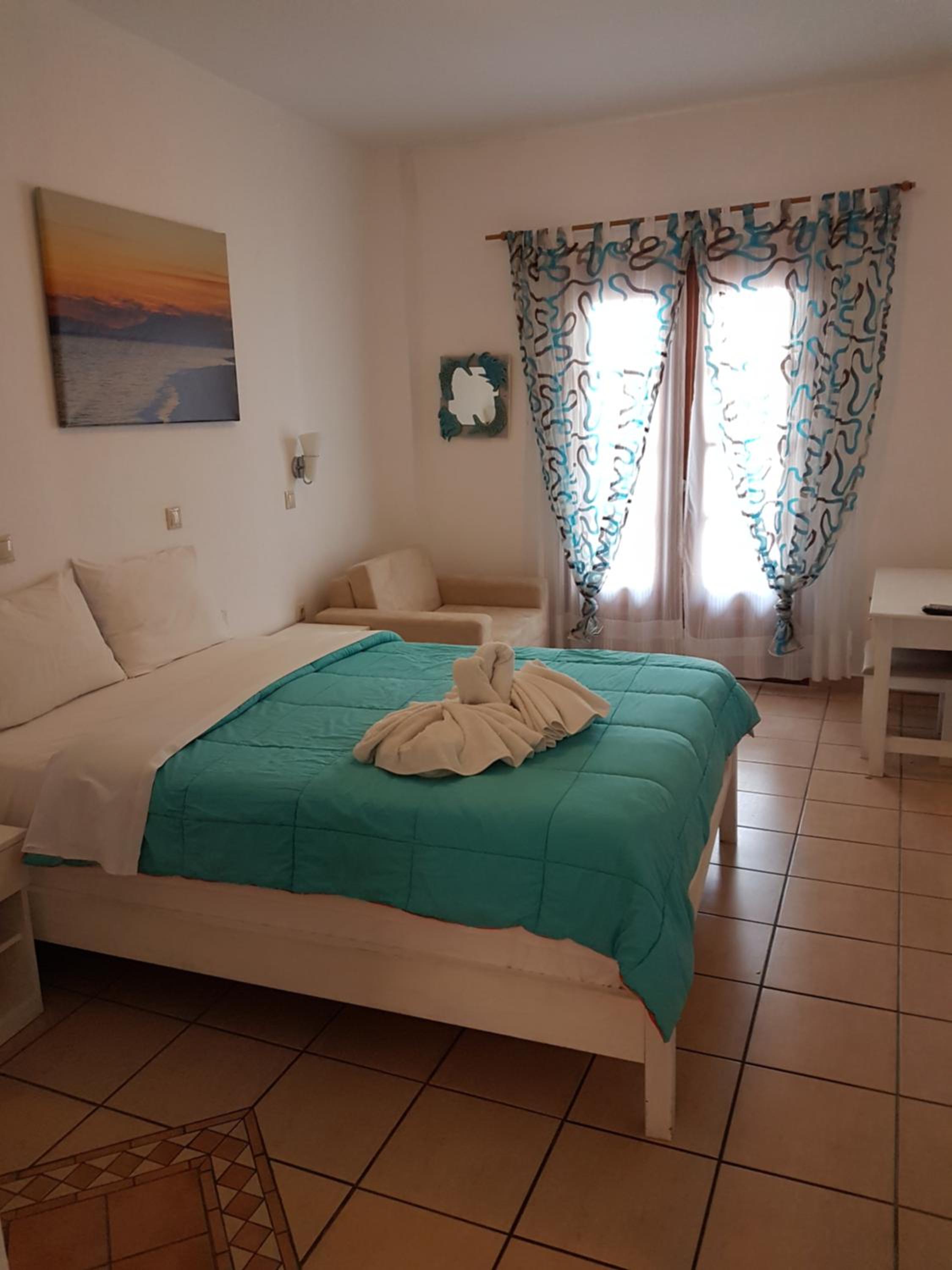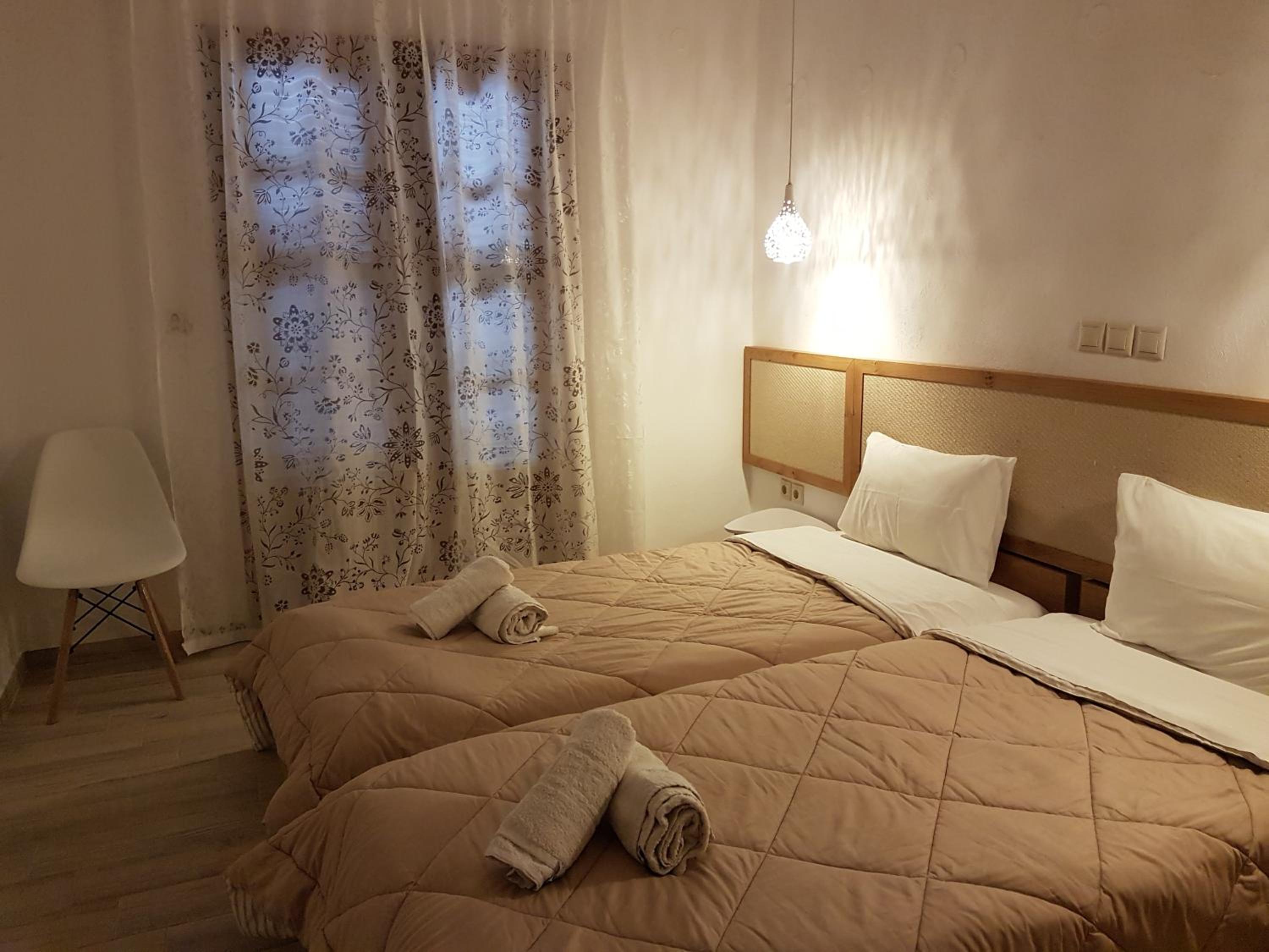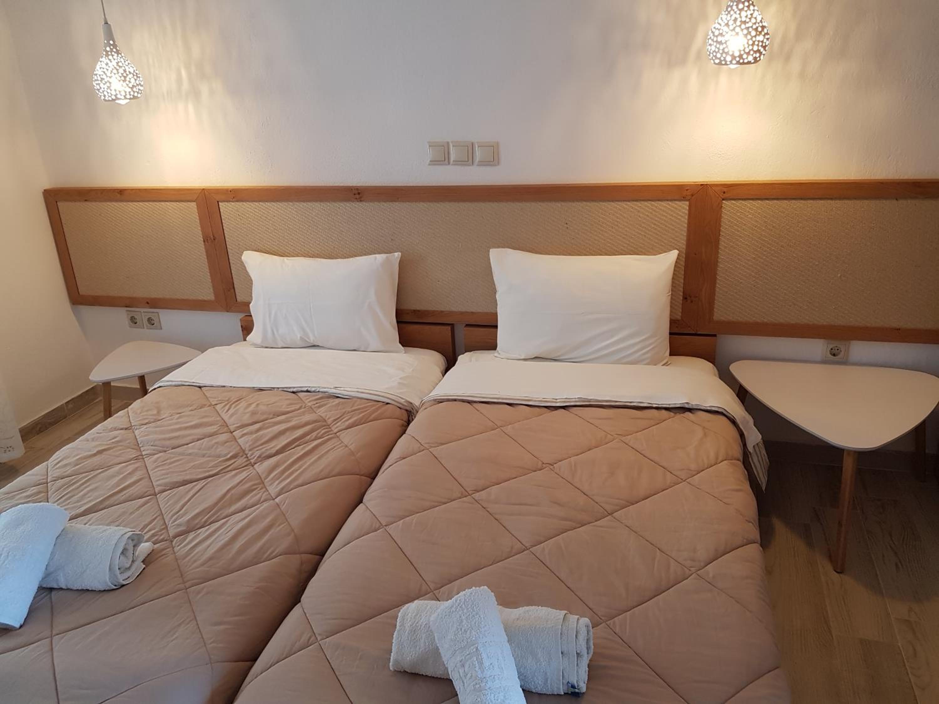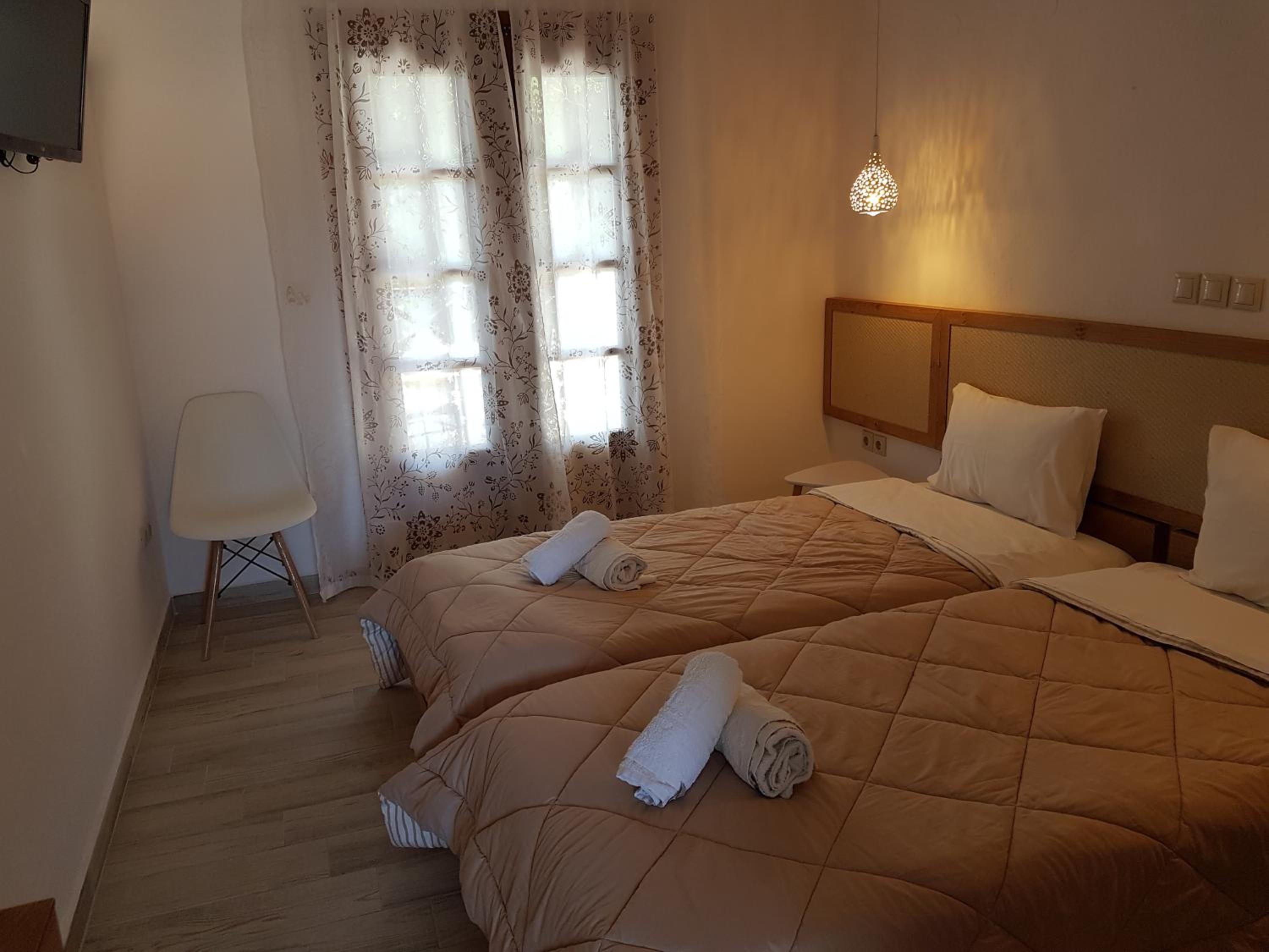 Amenities were seen as satisfactory overall, but there were a few comments about rooms being above a taverna and noise during the night.