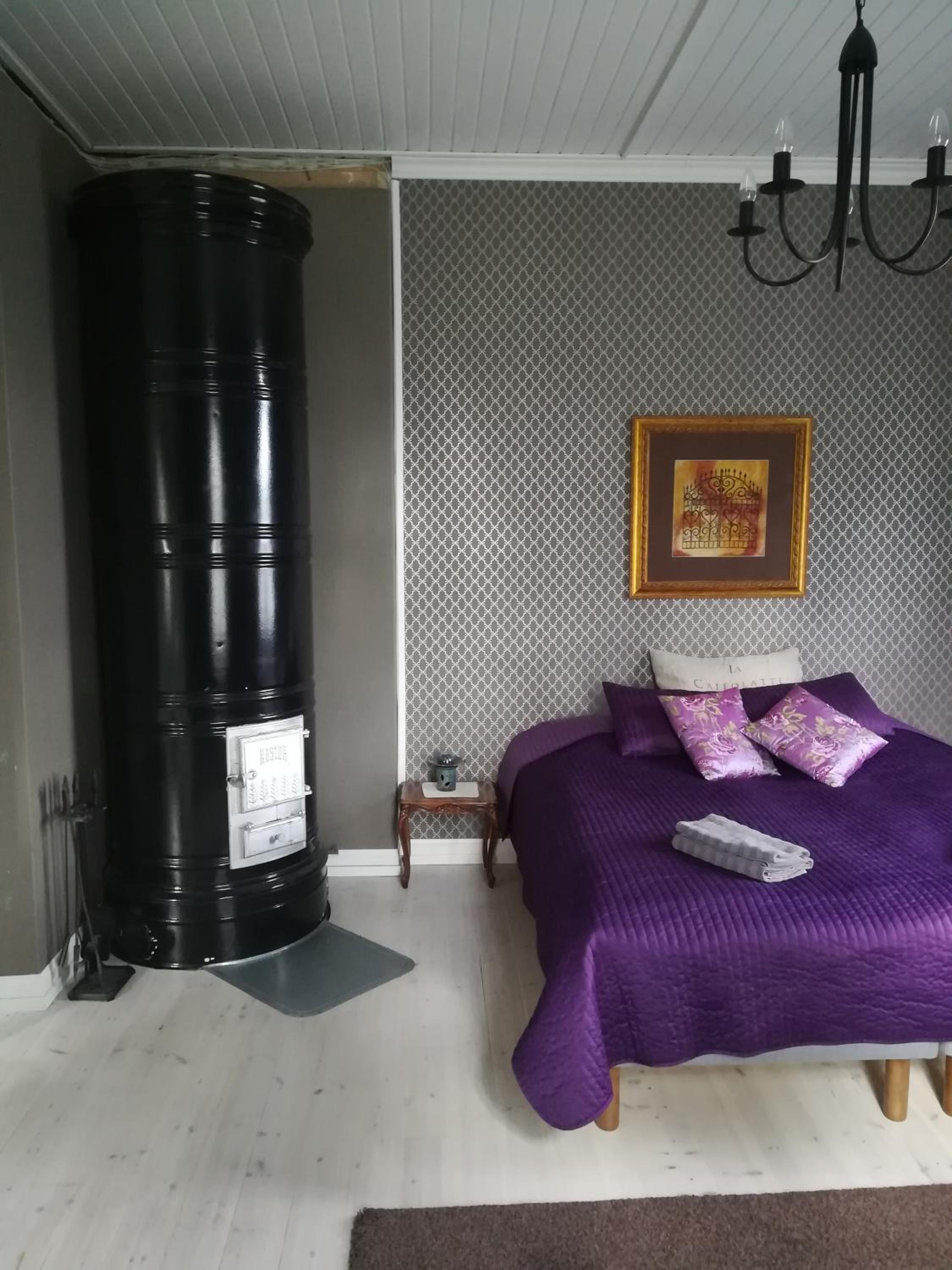 Ilmastoitu ja iso huone kesähelteellä oli tosi hyvä. Aamiainen oli tosi monipuolinen. Saunominen kruunasi loman. Talon Isäntä ystävällinen.