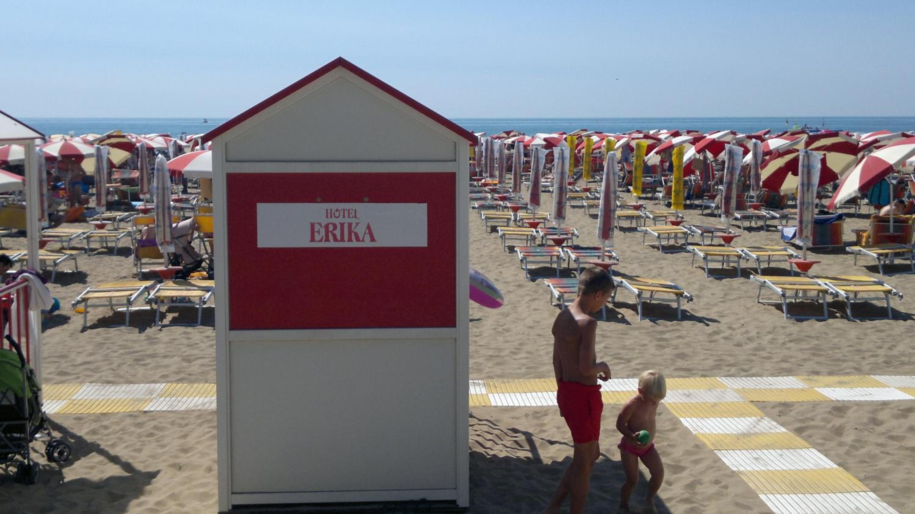 Hotel Erika offers the luxury of a private beach just 50 meters away, where guests can enjoy complimentary use of sun loungers and parasols.