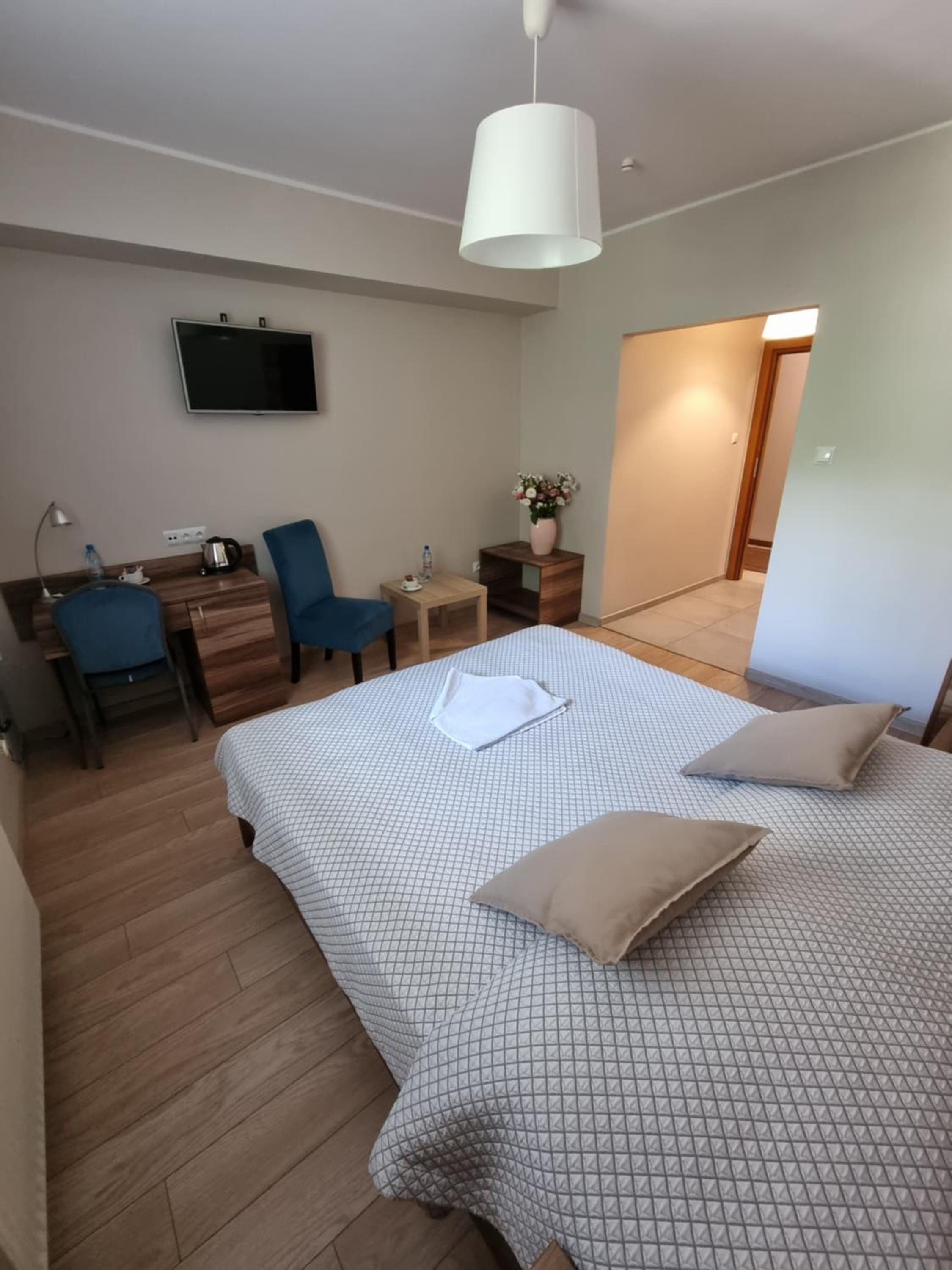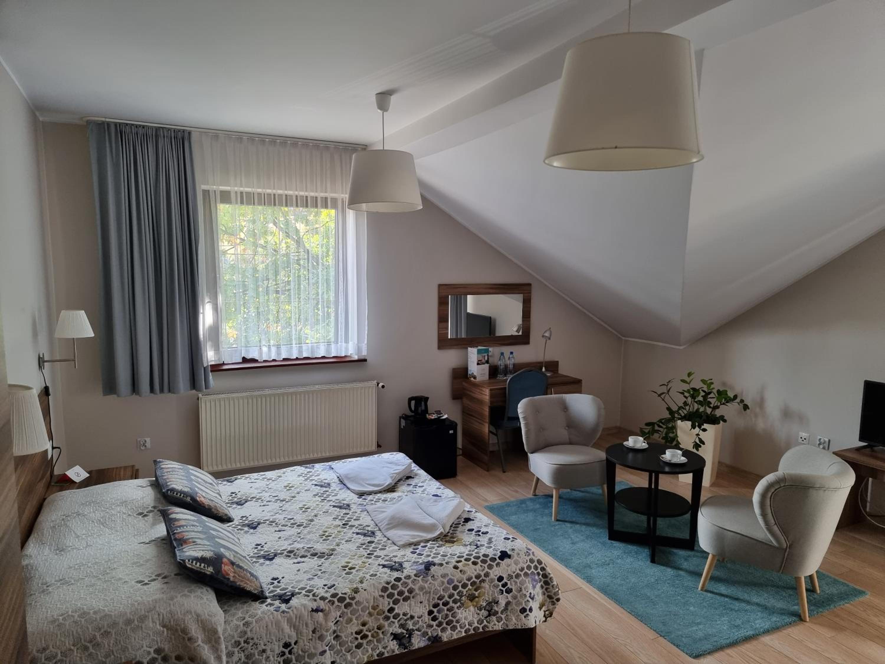Znałem ten hotel jeszcze sprzed czasów pandemii. Zawsze się w nim zatrzymywałem i tak zamierzam dalej robić. Cicha okolica, darmowy parking, niezłe śniadanie, miły personel. Wygodne łóżka, przyjemny pokój. Woda mineralna w pokoju, czajnik, lodówka. Blisko centrum Olkusza, wszędzie można dojść spacerem.
