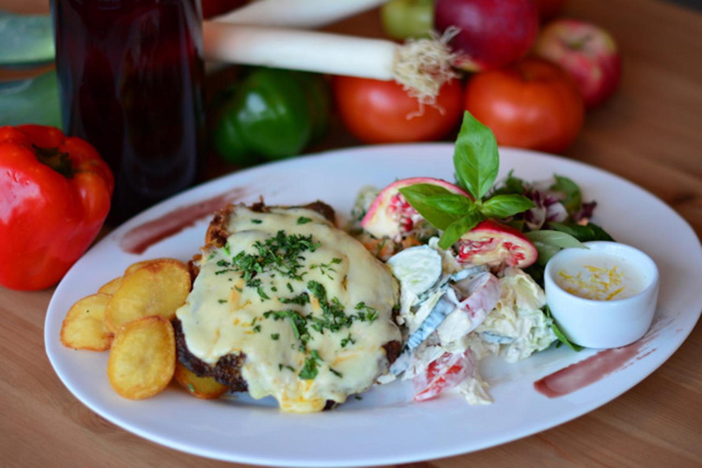 The restaurant has good food and beer on tap, friendly girls serve both.