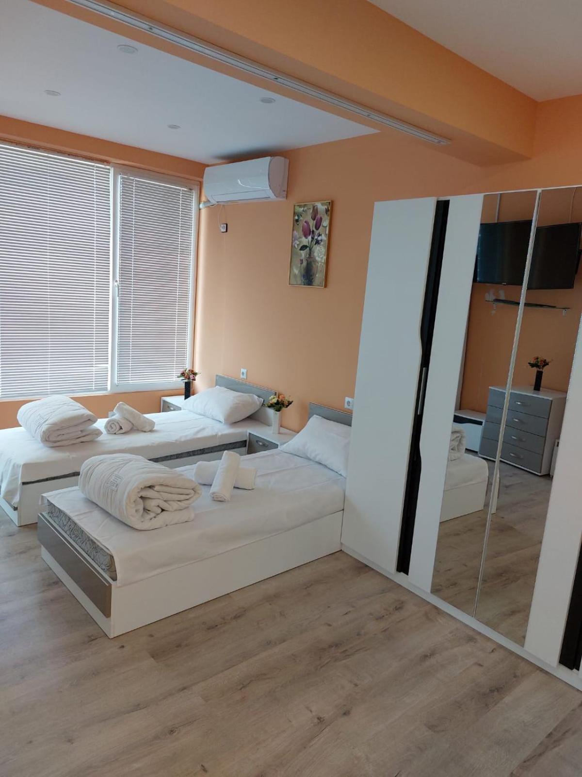Hosts went out of their way to make us welcome. They even cooked us dinner even after it was clear the kitchen was closed. We booked last minute late and they were so incredibly hospitable offering us coffee as soon as we arrived chatting with us despite our being unable to speak Bulgarian, they were very patient with the Google translate Charming house charming location. There are balconies in most of the rooms it seems and we regret that could only stay one night!