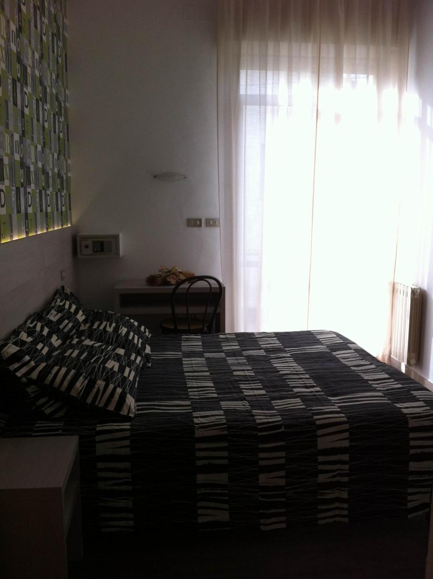 La stanza ha un terrazzino funzionale per stendere costumi e salviettoni, una boccata d'ossigeno per i fumatori, il bagno è piccolo ma funzionale. La stanza ben pulita tutti i giorni, il titolare simpatico e disponibile. Ottimo il servizio check-in 0/24, l'albergo si trova a pochi passi dalla spiaggia e dalla via centrale. Mi ha lasciato un'ottima impressione.