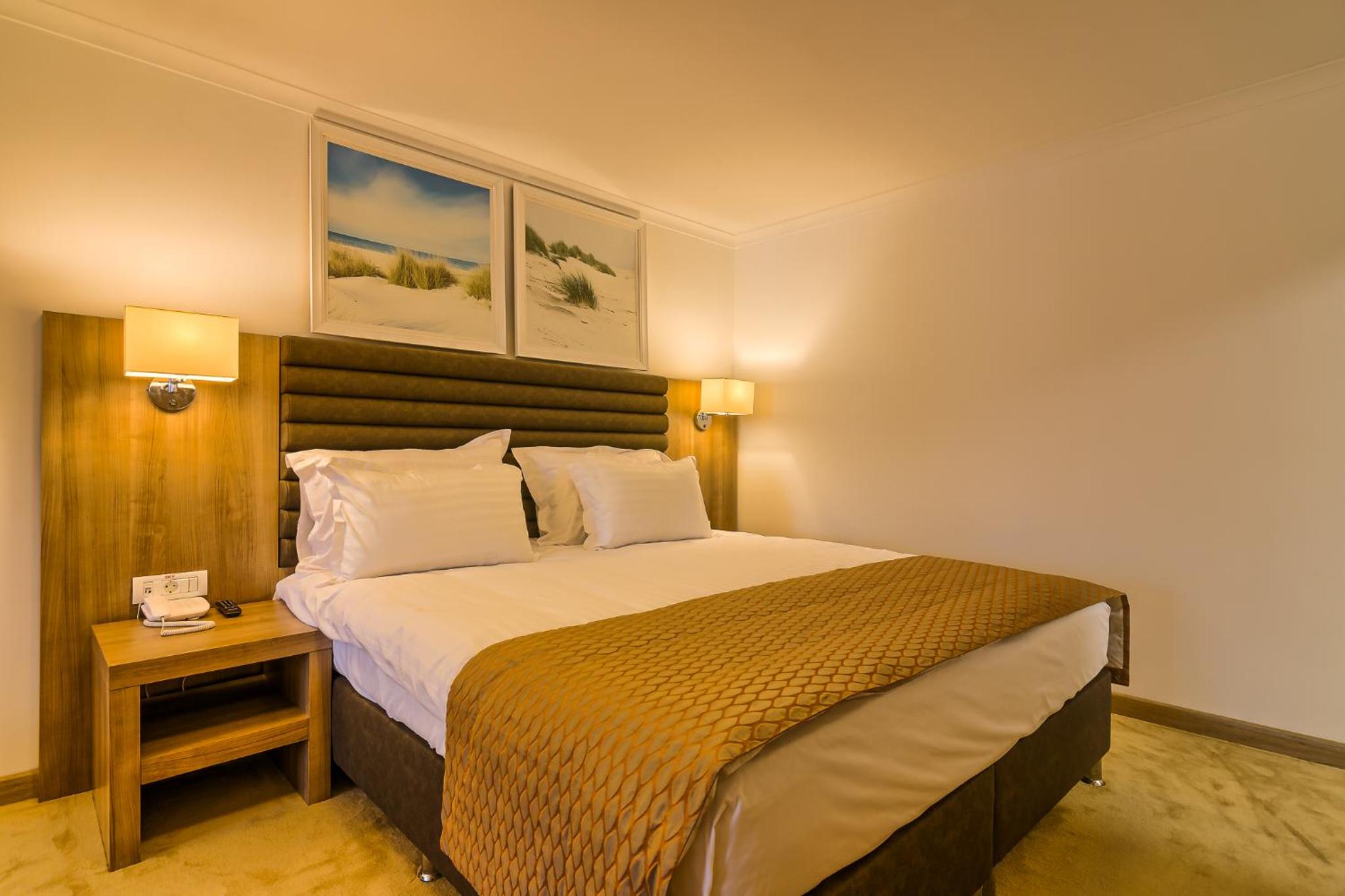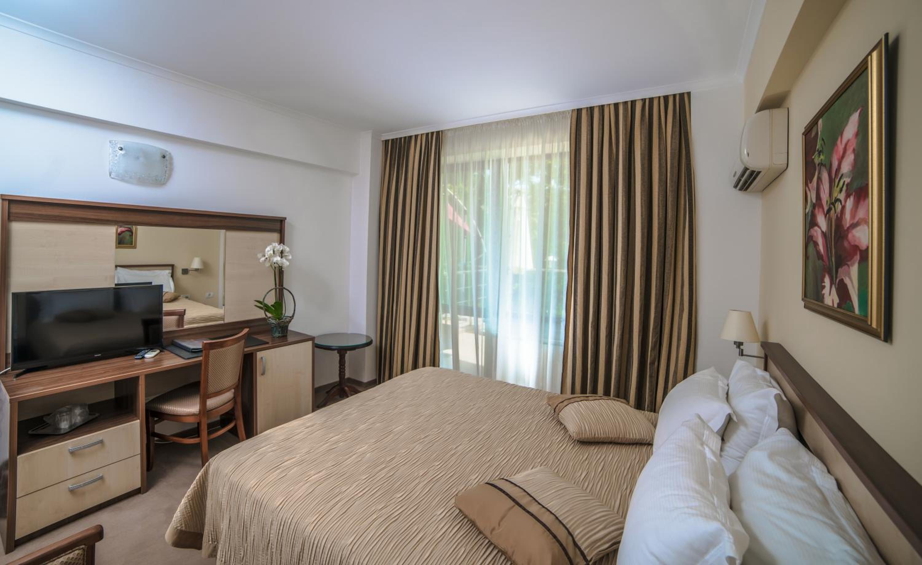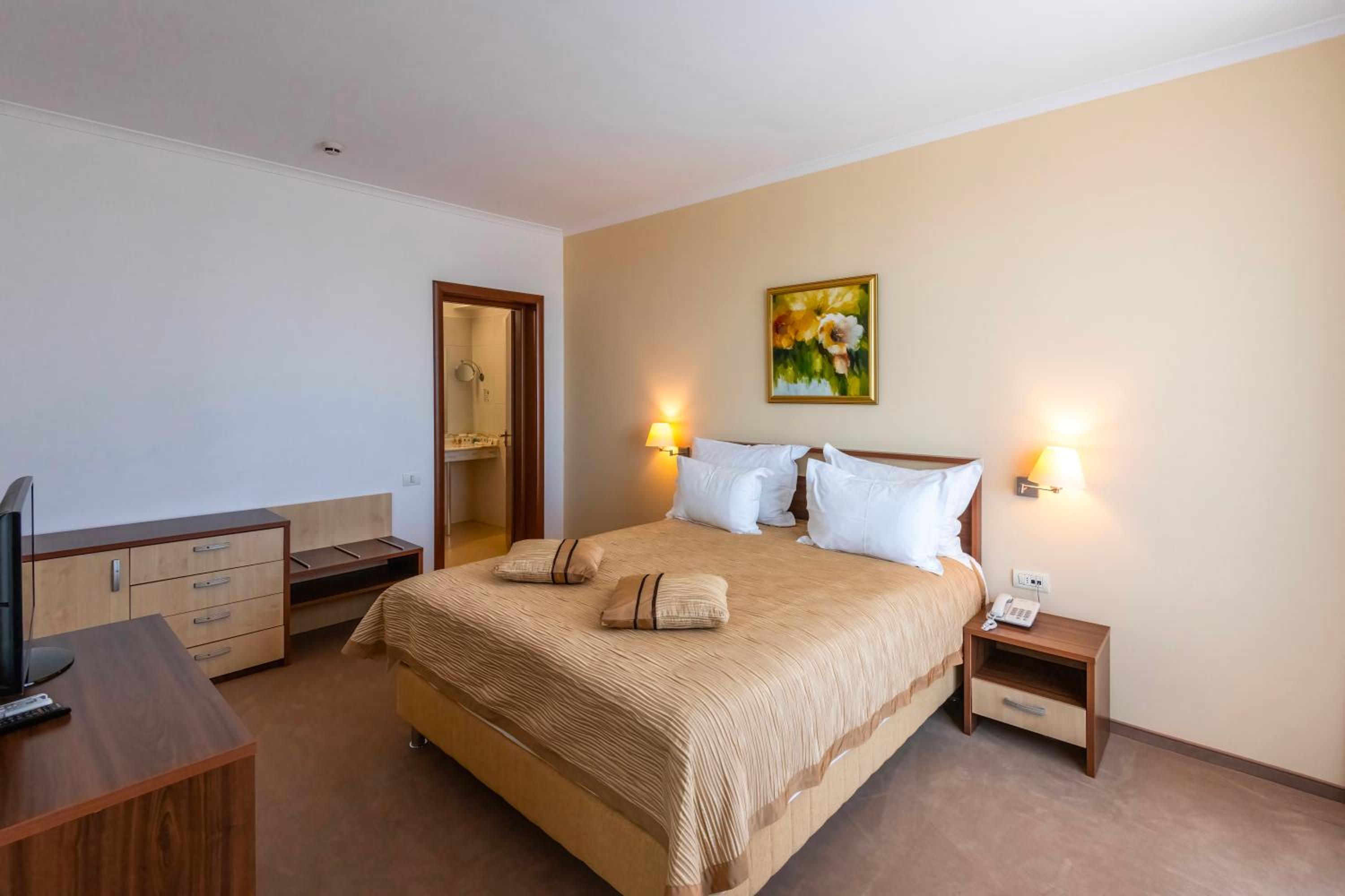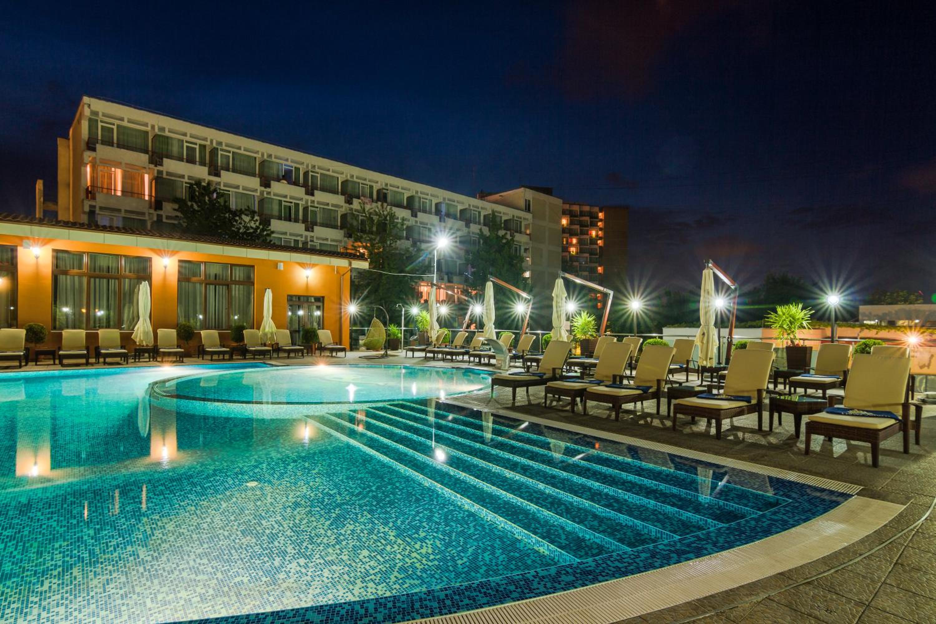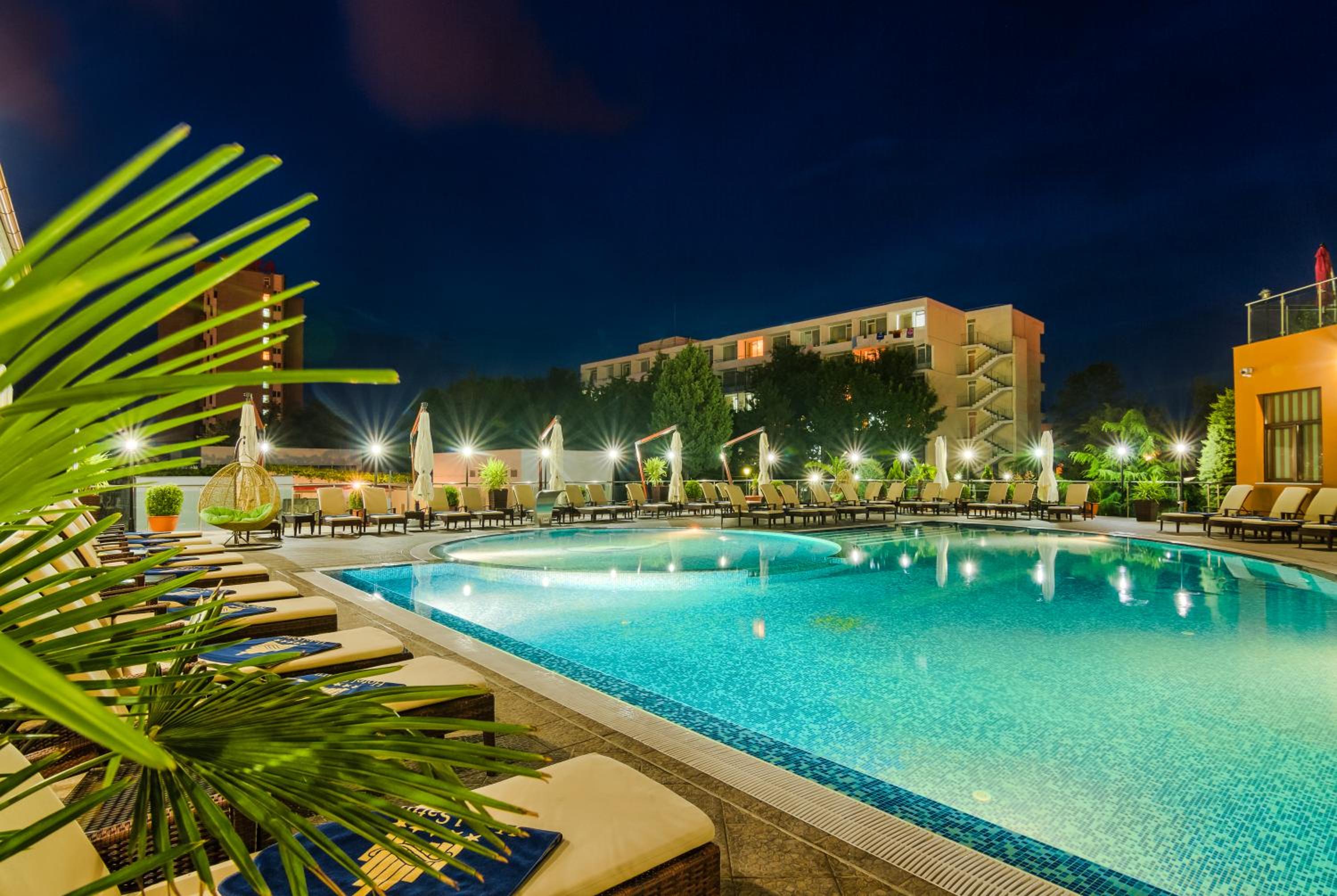 Cât de cât, aproape de mare. Plaja privata, unde mai mult de jumătate din clienți nu sunt din hotel, am auzit preț de 30 lei per șezlong/ zi. Pt clienții hotelului șezlong gratuit. Patul confortabil, 1 set de prosoape de plaja ( la 5 * se schimba dupa fiecare ieșire la mare, aici rămân aceleași tot sejurul). Minifrigider cu băuturi.