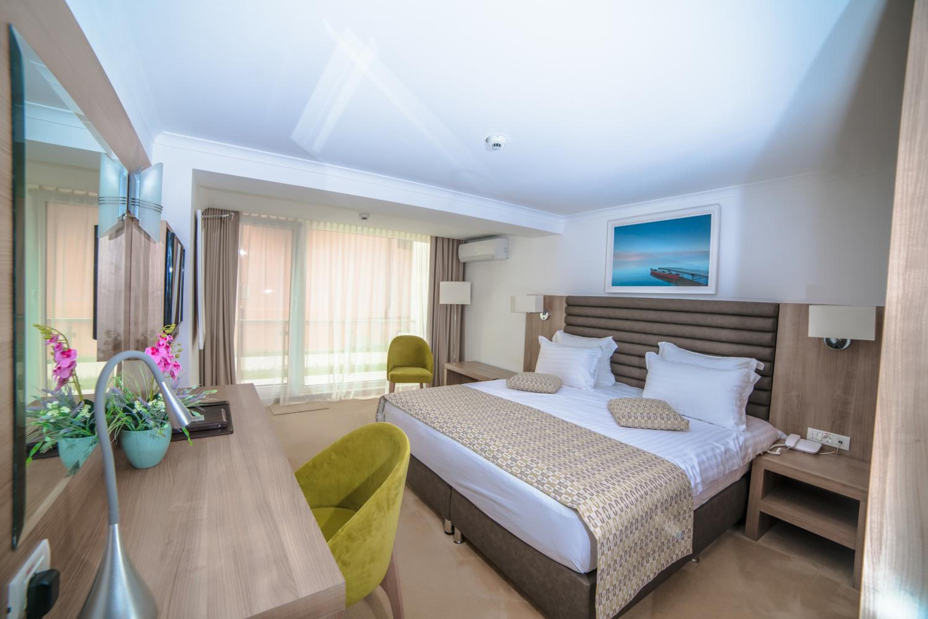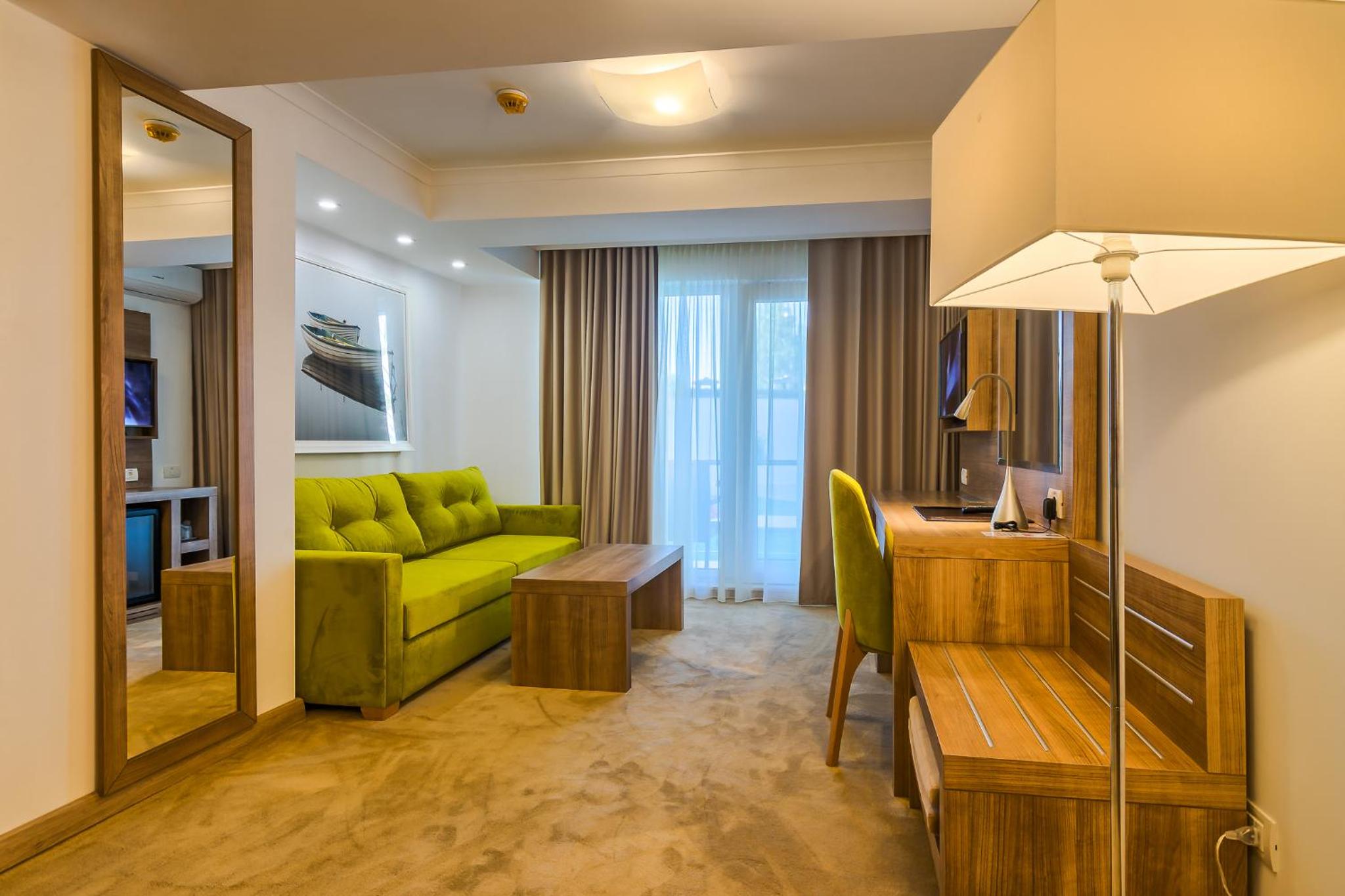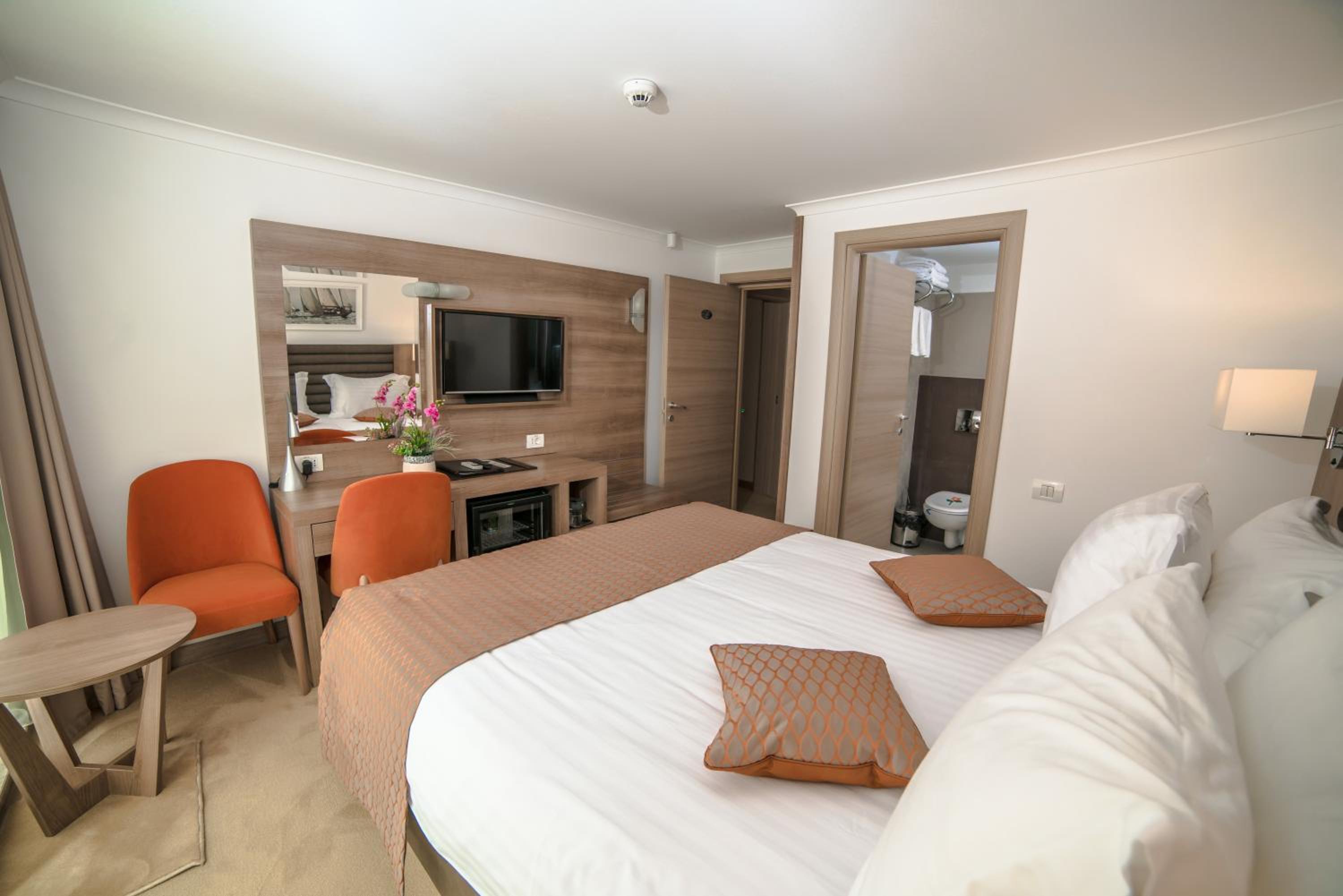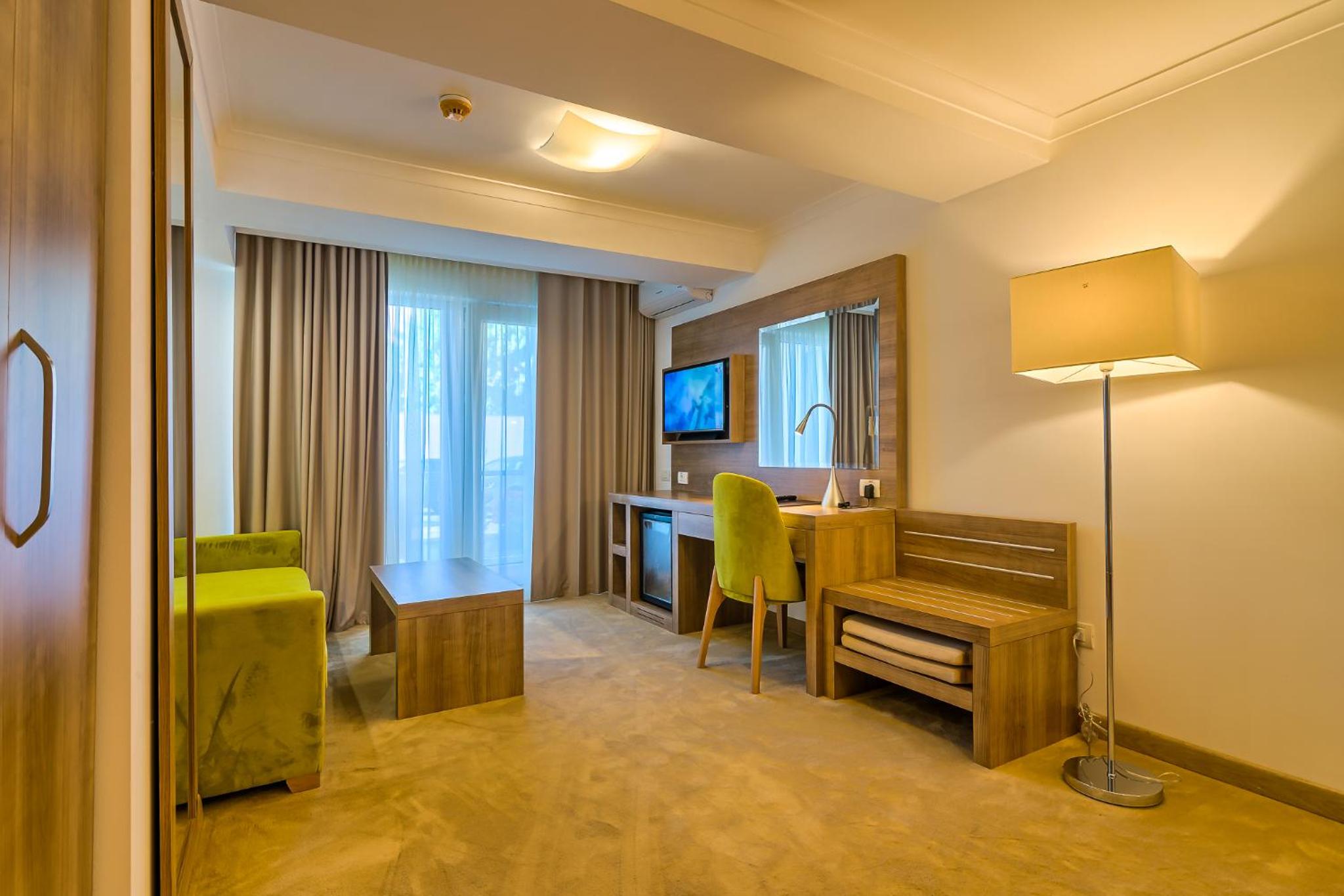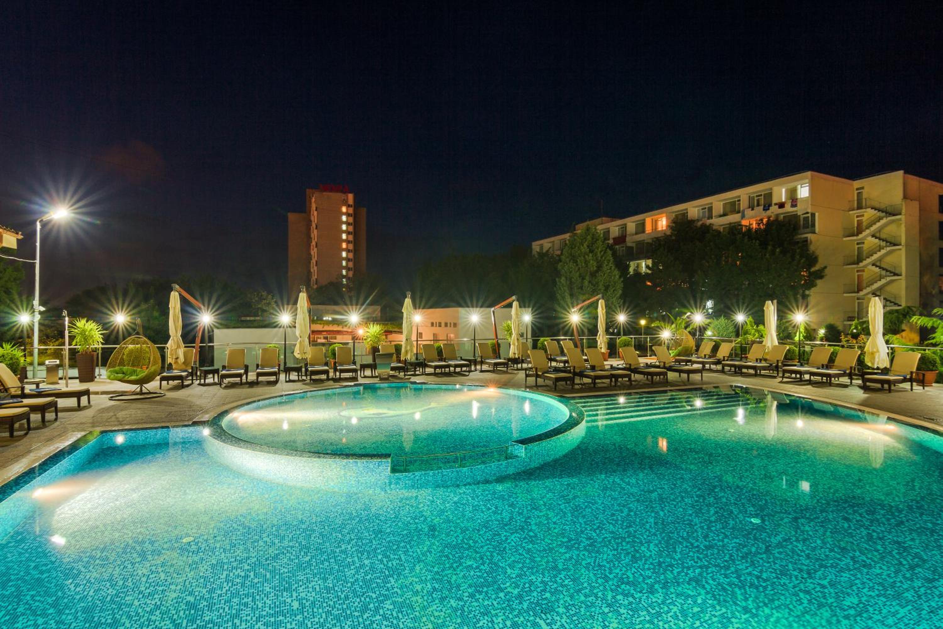 Cât de cât, aproape de mare. Plaja privata, unde mai mult de jumătate din clienți nu sunt din hotel, am auzit preț de 30 lei per șezlong/ zi. Pt clienții hotelului șezlong gratuit. Patul confortabil, 1 set de prosoape de plaja ( la 5 * se schimba dupa fiecare ieșire la mare, aici rămân aceleași tot sejurul). Minifrigider cu băuturi.