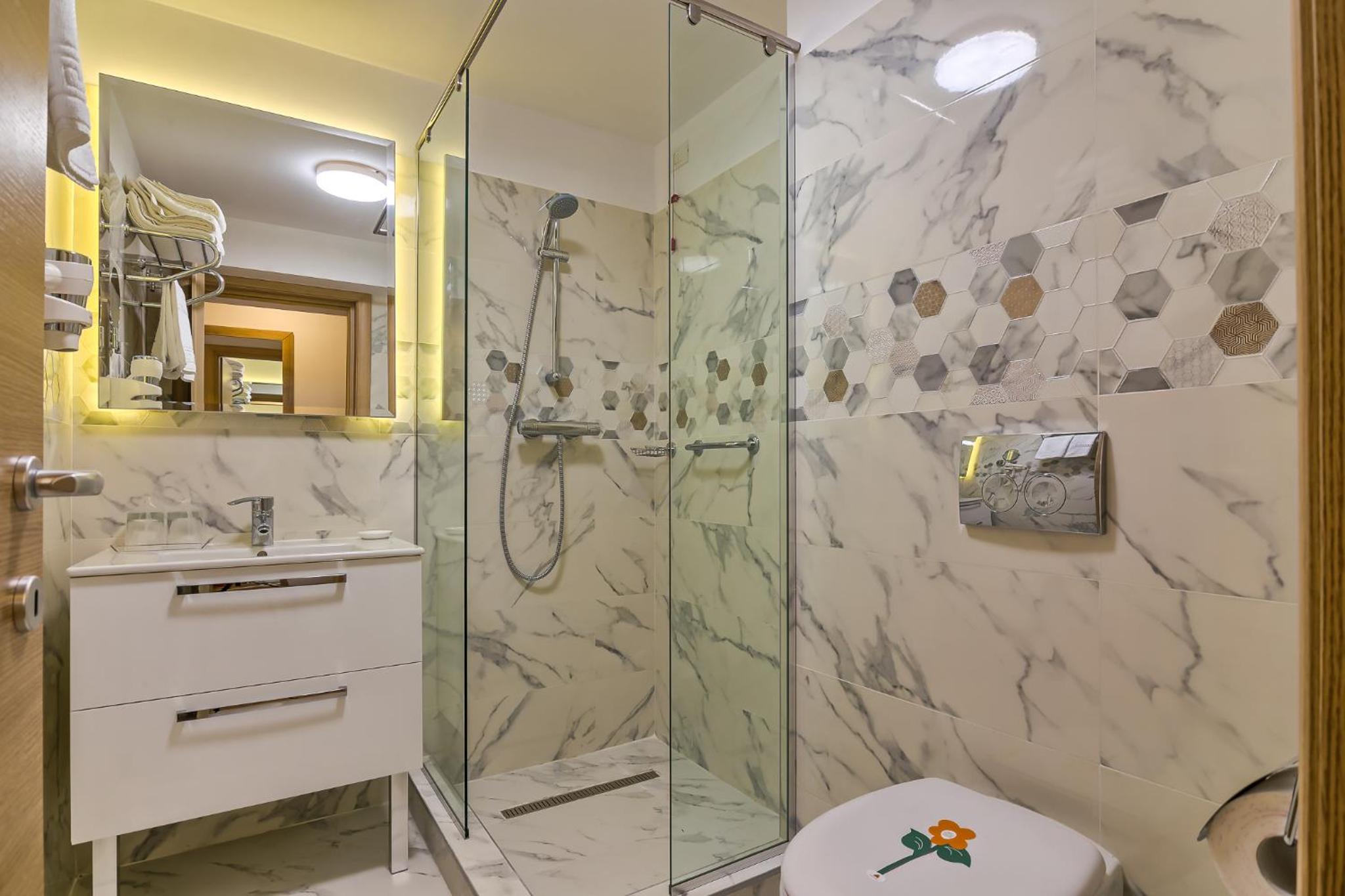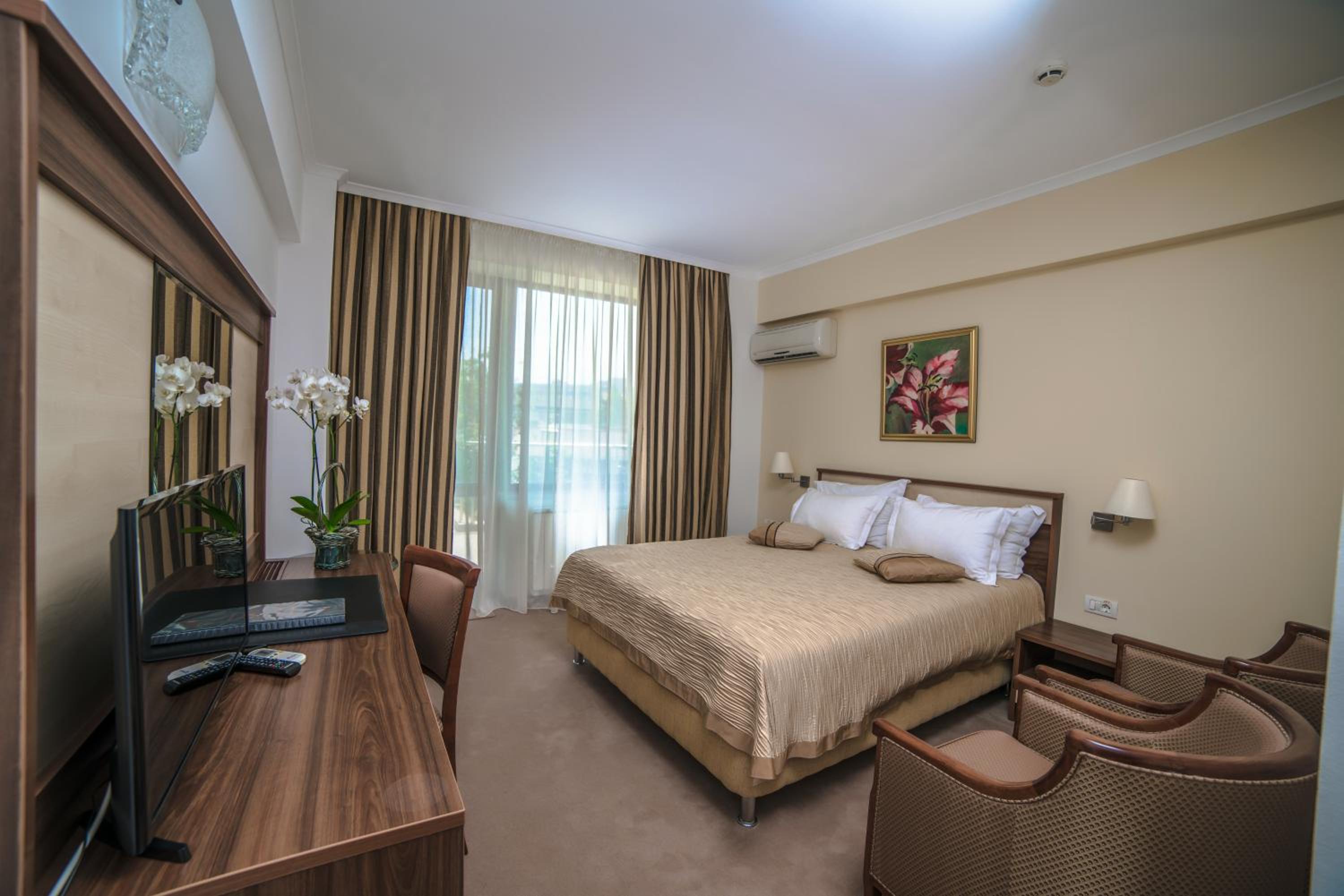 Mobilier învechit, scrie 5 * dar nu e mai mult de 4*, mocheta murdară in camera, echipamentele din baie super vechi si cu probleme de functionare. Parcarea e 25 de lei pe zi, desi pe Booking nu scrie ca este contra cost, mașinile unele peste altele, imposibil de ieșit din parcare, nr de tel afișate la care nu răspund clienții. Sala de mic dejun super înghesuită, cu mâncare de gen 3 stele. Personalul pare plictisit, fǎrǎ instruire de 5*. Șampon îndoielnic la baie. Daca ar fi putina atenție la mici detalii ( fără costuri mari) ar obtine un efect autentic de 5*.