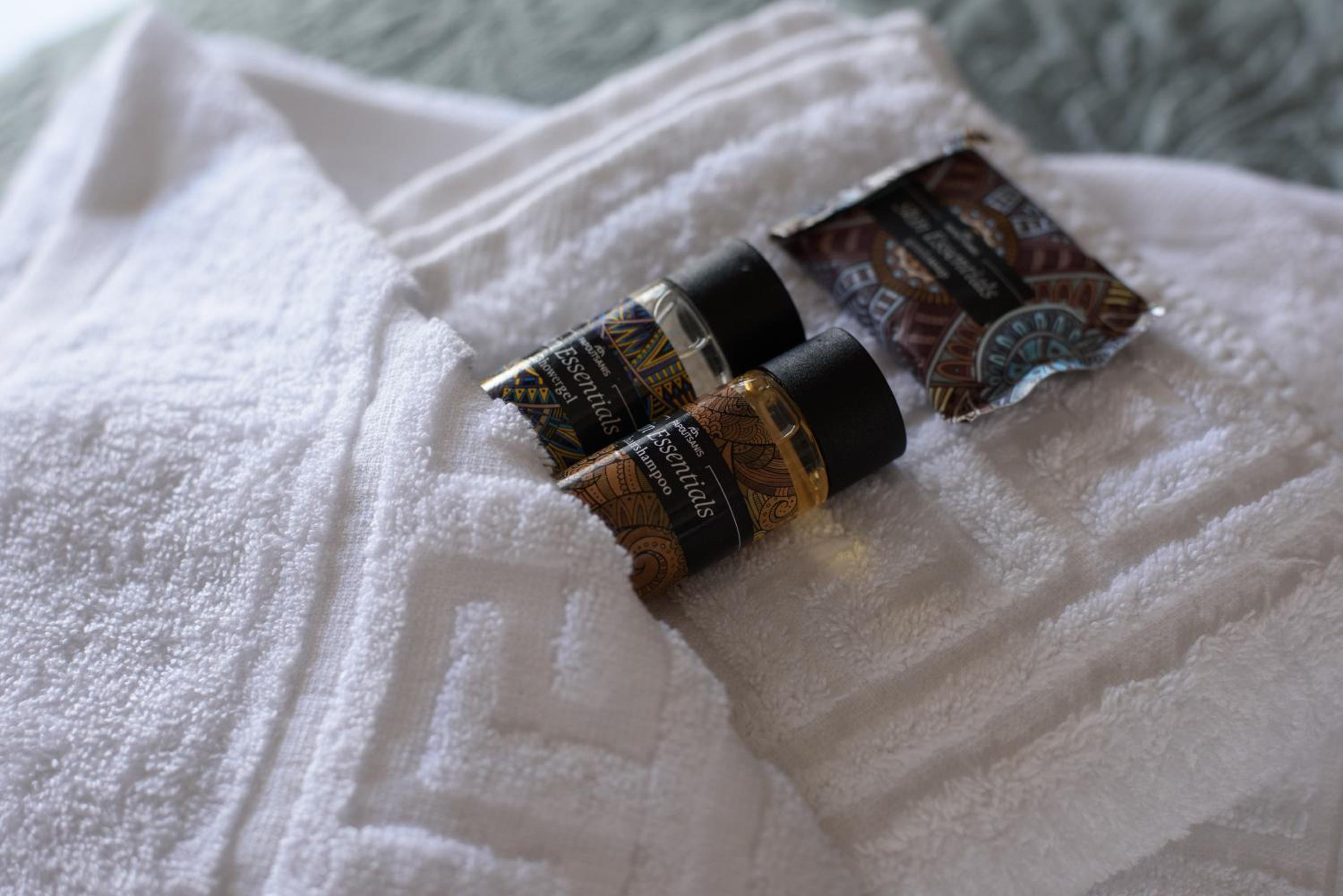Lack of toiletries in bathroom and no cups/glasses in room