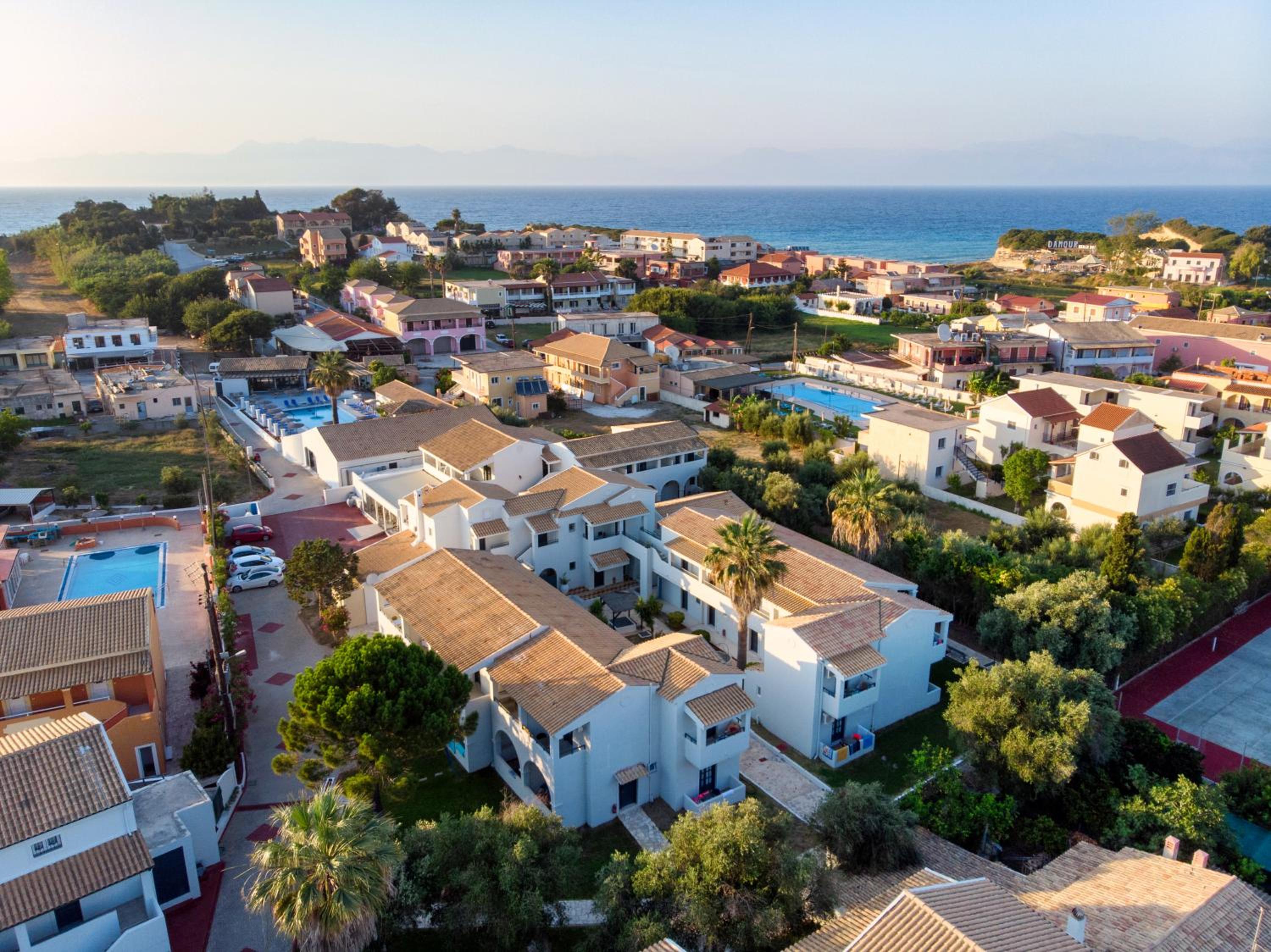 Na Corfu sme priletili náhodne - zmena plánov. Hadali sme ubytovanie, ktore nebude velmi drahe, nie luxusne, ale také domácke. Ide o zrejme o starší hotel. Personál v poriadku. Jedlo chutném vždy sa dalo niečo vybrať, ale samozrejme, každému chutí niečo iné. Od centra je to ďalej, ale mali sme prenajatý skúter, dostali sme sa kde sme si našli na mape, že chceme vidieť. Večer sme mali aj hudobný program. Hlavne ,,starší pán" pri bare veľmi priateľský.