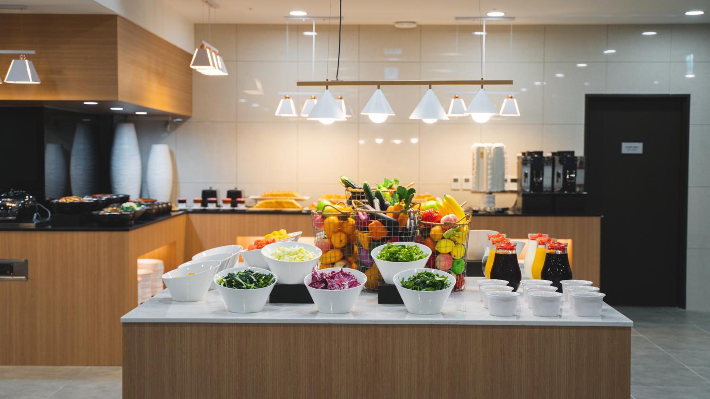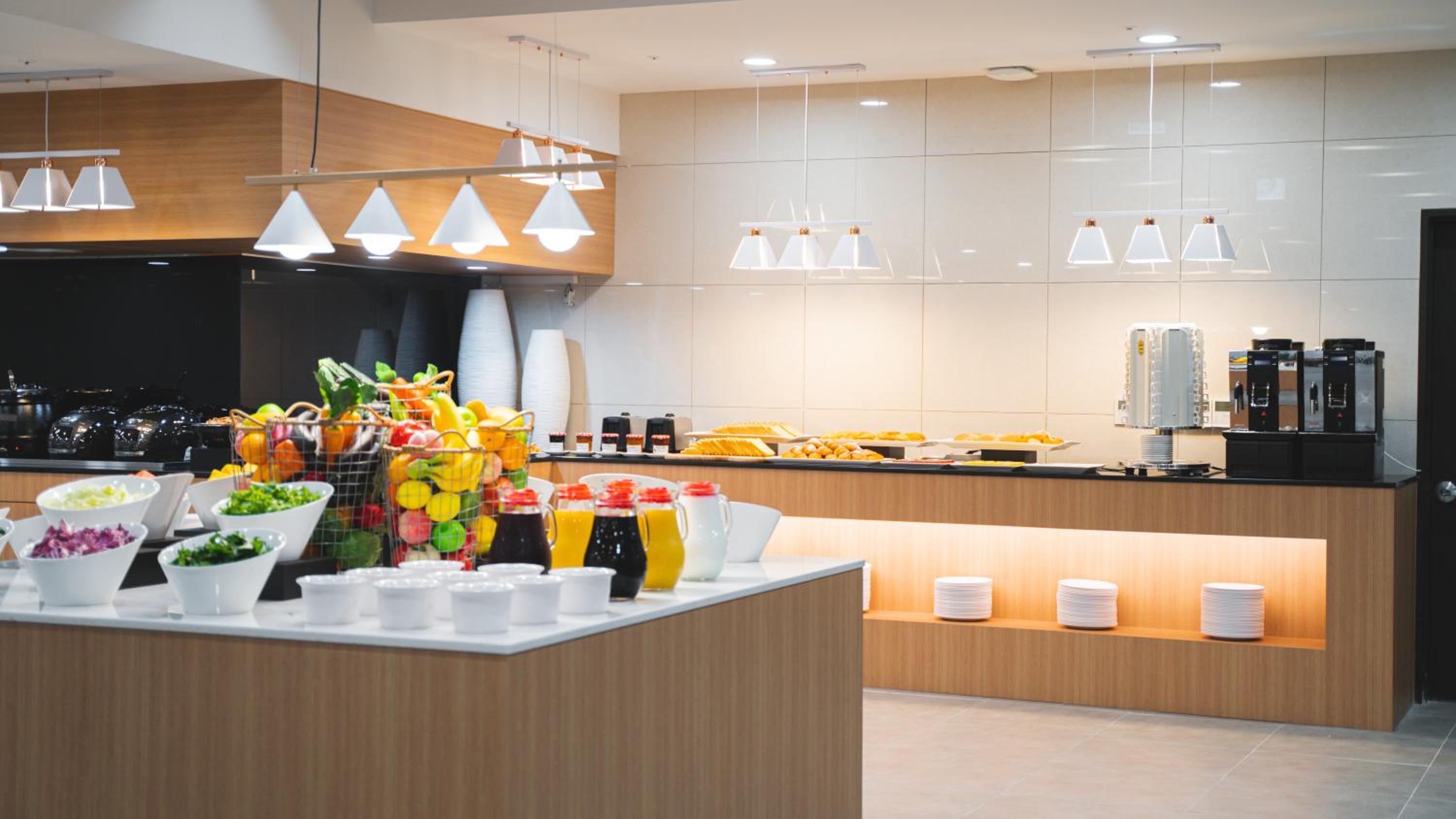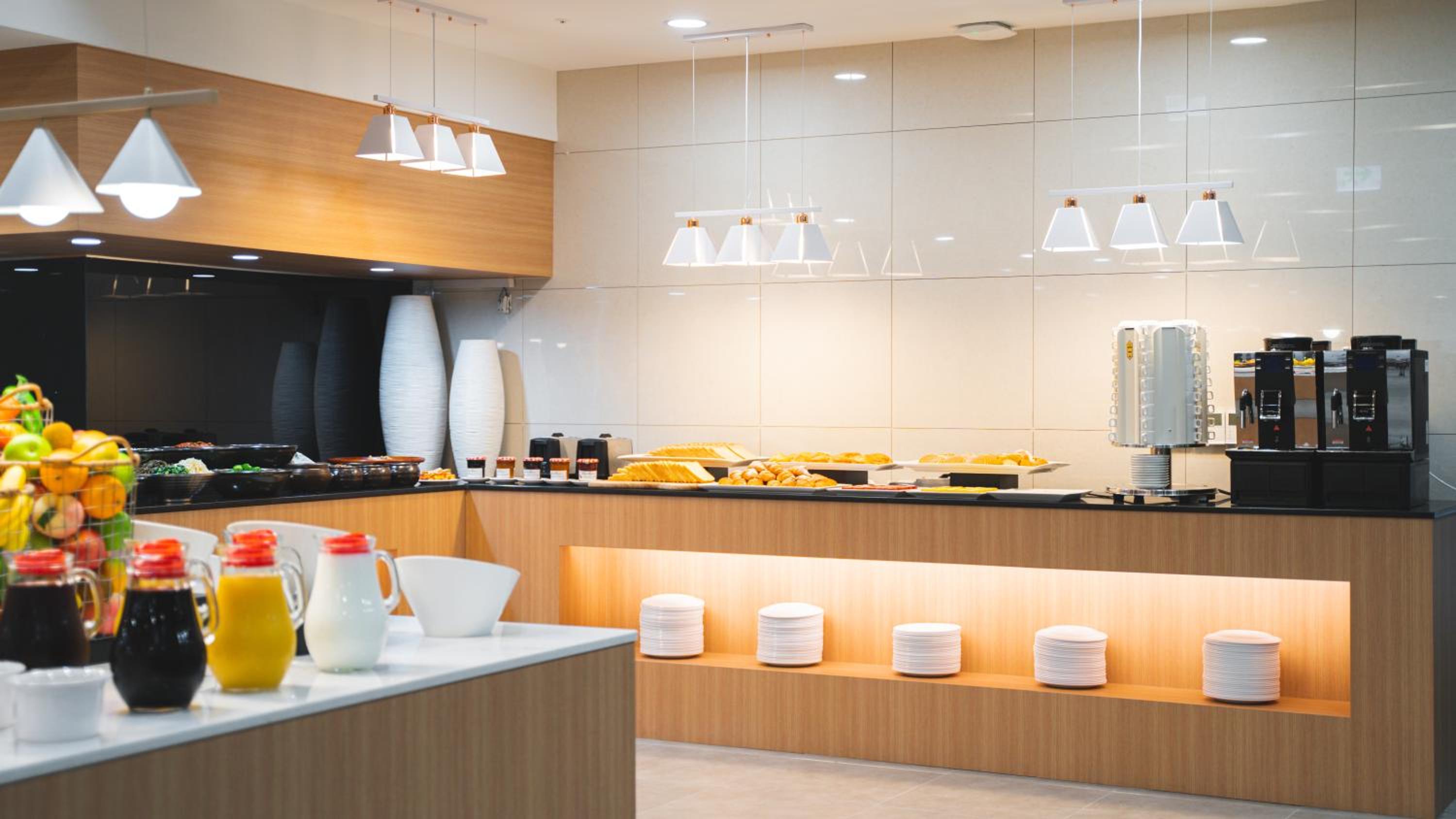 I pointed out to a management personnel and staff members the serious design flaw of a step up on entering the room. I understand this may be to incorporate floor heating. But! The step up is also halfway between the coffee pot and the rest of the kitchen hallway area. I suggested a series of yellow slashed lines across the step to signal the step was there. As it is the step is black so on entering it is an unknown factor on stepping into the room. This is grounds for serious injury of clients/ guests and possible law suits. A ramp up marked as well with yellow and black stripes might be another alternative to the serious design flaw. Staff was positive in responses.