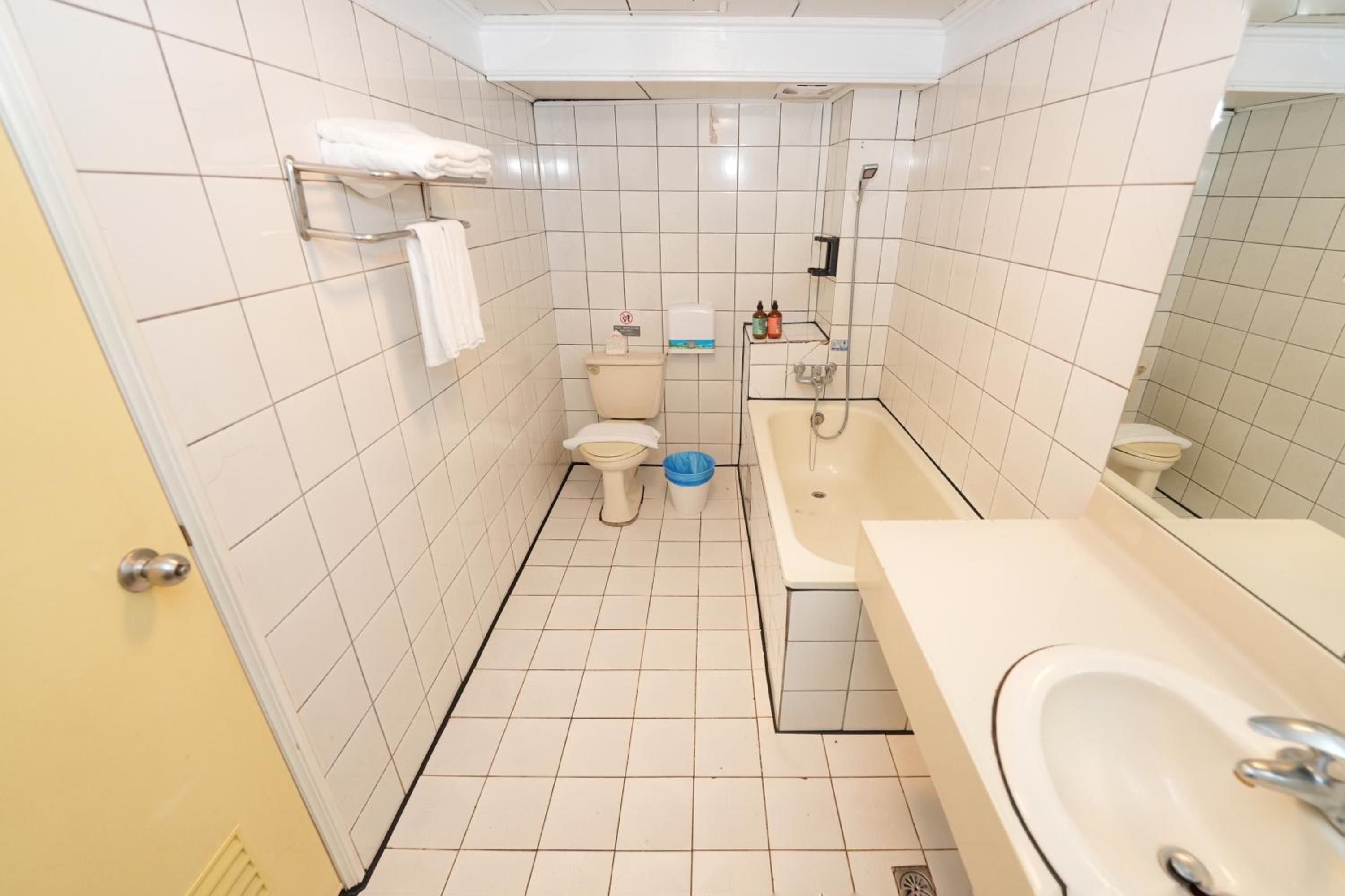 房間燈光有點不足,進門玄關處沒有燈,因此在玄關處的衣櫥陰暗。衣櫥雖夠大,但只有4個衣架,牆壁也沒有掛勾可以吊掛衣帽。因為沒有浴簾,浴缸旁邊與馬桶附近地板容易潮濕。